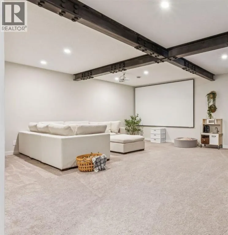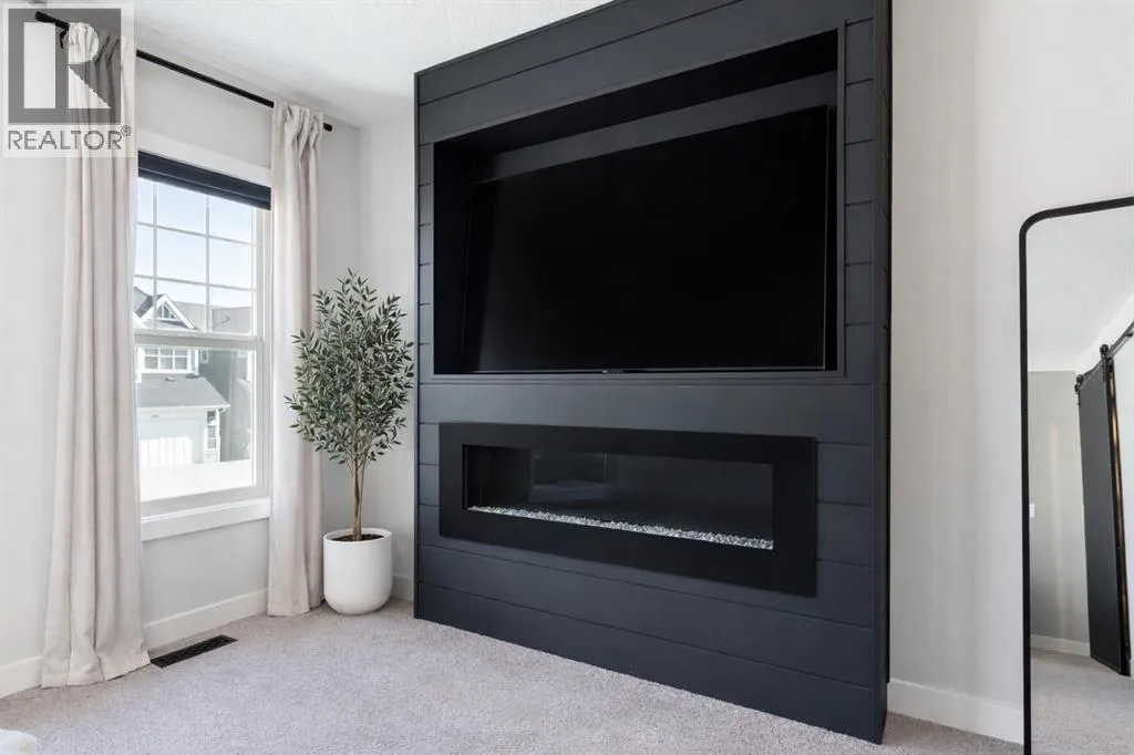 Welcome to this stunning smart-enabled home in the prestigious community of Riviera, where timeless style blends seamlessly with modern convenience.A bright OPEN-TO-BELOW foyer welcomes you with expansive windows and beautiful EXPOSED CEILING BEAMS that highlight the homeâs architectural charm. The main floor offers a dedicated OFFICE, a stylish powder room, and added ease with the NEST SMART SYSTEM. The gourmet kitchen serves as the centrepiece, showcasing UPGRADED APPLIANCES, a gas cooktop with chimney hood fan, an oversized island, and STRIKING FEATURE WALLS. The adjoining living room is warm and inviting with its GAS FIREPLACE and airy, light-toned finishes.Upstairs, a bright bonus room with CUSTOM FEATURE WALLS provides flexible living space. The west-facing kidsâ bedrooms offer cozy SHIPLAP DETAILS, while the primary bedroom is a luxurious havenâcomplete with its own FIREPLACE, TINTED WINDOWS, AUTOMATIC BLINDS, and a spa-like 5-PIECE ENSUITE with soaker tub, tiled shower, and a WALK-THROUGH CLOSET with BARN DOOR and CUSTOM ORGANIZERS.The FULLY DEVELOPED BASEMENT is designed for hosting and relaxation, featuring 9-ft CEILINGS, a WET BAR with BAR FRIDGE, a spacious THEATRE ROOM enhanced by UNIQUE BEAMS, and ABUNDANT STORAGE.Step into your west-facing backyard, PROFESSIONALLY LANDSCAPED with an ELEVATED COMPOSITE DECK and GLASS RAILINGS, PERGOLA, STONE GAS FIRE PIT, and mature trees lining the PIE-SHAPED LOT for enhanced privacyâperfect for relaxing or entertaining.NOTABLE FEATURES: ⢠Multiple custom feature walls⢠Brand-new air conditioning⢠Automatic blinds & smart-home integration⢠Engineered hardwood flooring⢠West-facing, fully landscaped yardExperience the best of Riviera livingâsurrounded by natural beauty, river pathways, and a true family-friendly environment. (id:27476)