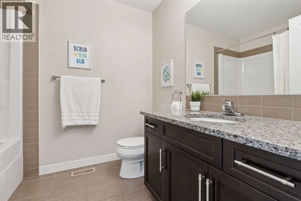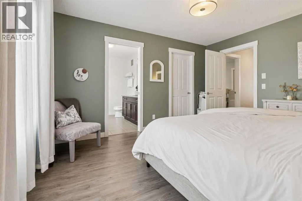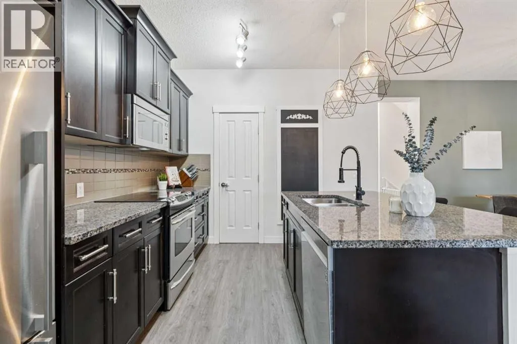 Beautifully finished 2 storey home with 4 bedrooms and 3.5 bathrooms in the desirable community of Fireside. This well-maintained, MOVE-IN READY home features tasteful upgrades, a functional floor plan, laminate flooring, and large windows that fill the space with natural light.The main floor welcomes you with a SPACIOUS FOYER and a versatile OFFICE/FLEX ROOM, perfect for working from home. The OPEN-CONCEPT kitchen is ideal for everyday living and entertaining, featuring GRANITE COUNTERTOPS, designer lighting, a LARGE ISLAND, shaker-style cabinetry, and a generous pantry. The bright dining area flows seamlessly into the cozy living room with a GAS FIREPLACE, creating a warm and inviting atmosphere.Upstairs, youâll find three spacious bedrooms, including the primary retreat with a WALK-IN-CLOSET and private 4-piece ensuite, along with a full main bathroom.The FULLY FINISHED BASEMENT adds valuable living space with a recreation room, fourth bedroom, and an additional 4-piece bathroom perfect for guests or a growing family.Enjoy outdoor living with a charming gazebo with lighting, ideal for relaxing or entertaining in the beautifully landscaped backyard. The property also offers RV PARKING with back lane access and a HEATED DOUBLE DETACHED GARAGE.Fantastic location just steps from parks and within walking distance to the Kâ8 school, sports fields, and nearby shopping. A wonderful family home in a vibrant community. (id:27476)