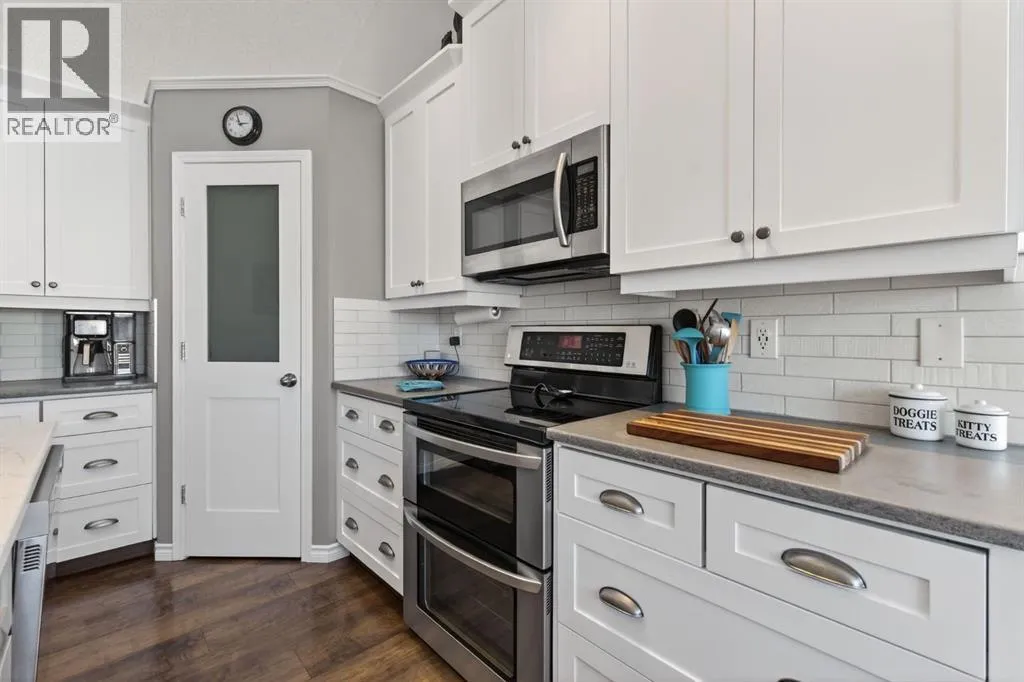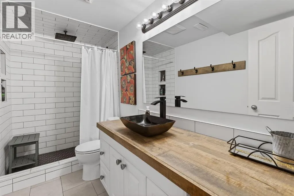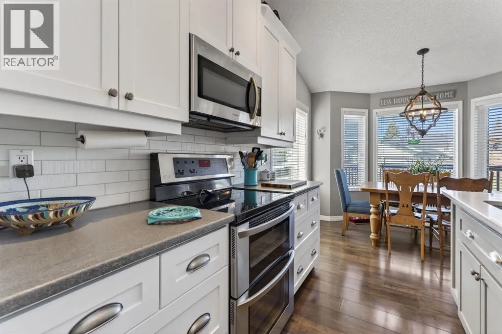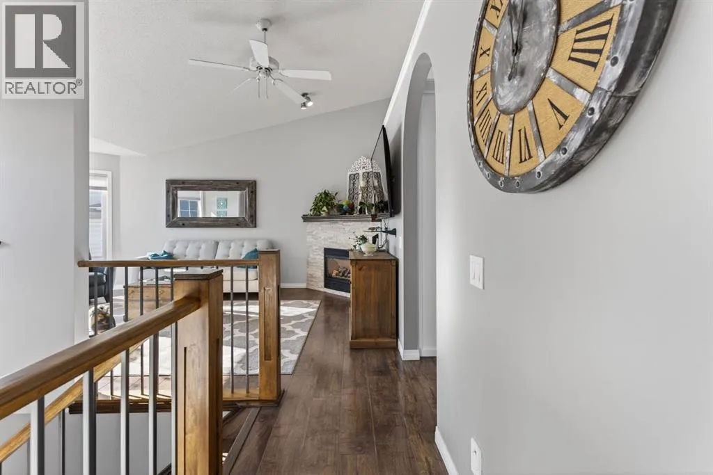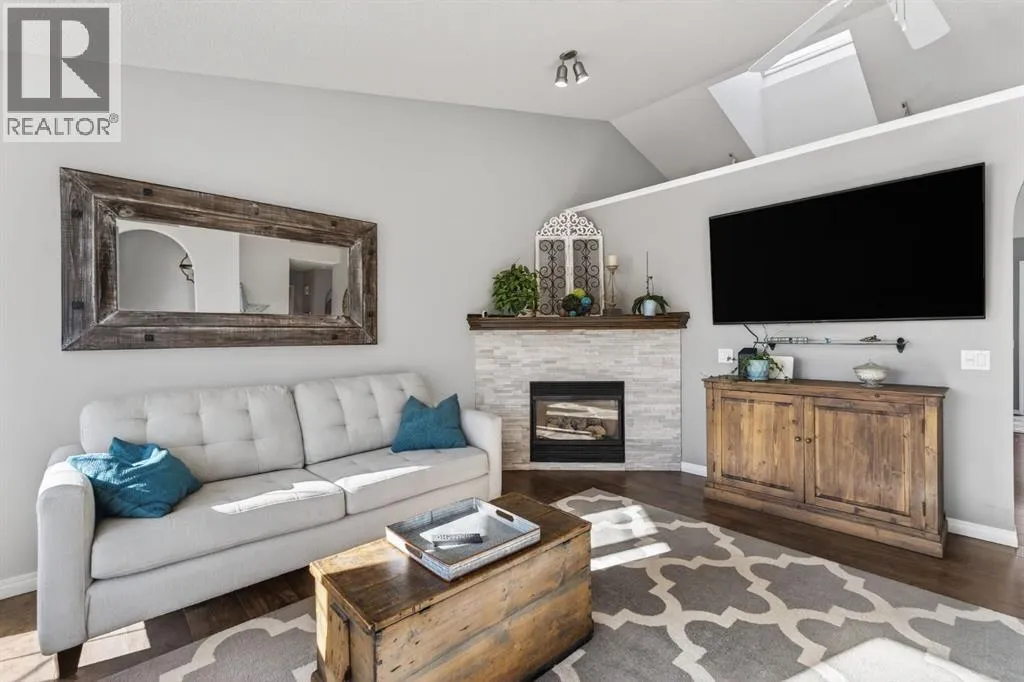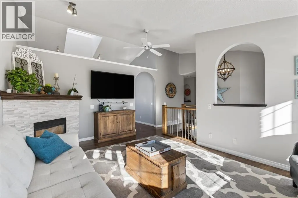 Welcome to this beautifully renovated bilevel perfectly situated in the highly sought after community of West Terrace. Tucked away on a quiet cul-de-sac just steps from the Bow River pathway system, this beautifully renovated and meticulously maintained 5-bedroom bi-level offers the perfect blend of family living, thoughtful updates, and an unbeatable location.The bright and welcoming main level features vaulted ceilings, skylights, and plenty windows that fill the home with natural light. The renovated kitchen is both stylish and functional with white cabinetry, quartz countertops, stainless steel appliances, a corner pantry, and a large island,âperfect for everyday living and entertaining. The adjoining dining area opens onto the back deck, complete with a gas line for your BBQ, making outdoor gatherings effortless.The spacious primary retreat includes a walk-in closet and private ensuite, while two additional great-sized bedrooms and a full bathroom complete the main floor. Contemporary lighting, updated flooring, and two cozy gas fireplaces add warmth and character throughout the home.Downstairs, the finished lower level offers incredible additional living space, highlighted by a stylish shiplap feature wall that carries down the staircase and adds warmth and character. You'll appreciate the two oversized bedrooms with built-in closer organizers sharing an updated full bathroom with rustic countertops and tiled walk-in shower. A large living room with cozy 2nd gas fireplace and recreation room with wet bar and refrigerator make this the perfect space for entertaining or watching the game. Your laundry room with sink is also found on the lower level. There is an abundant amount of storage space under the stairs and throughout the home. Outside, enjoy a large maturely landscaped yard, 2 sheds perfect for storage, gated dog run, and a heated double attached garage. With all the recent updates including a newer hot water tank (2024), this home offers peace of m ind along with exceptional value, a rare find in this very desirable neighbourhood. Located in one of Cochraneâs most sought-after neighbourhoods, this home is just moments from schools, parks, and scenic river pathwaysâan ideal setting for families looking for space, comfort, and community. (id:27476)
