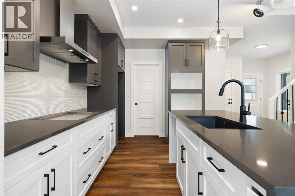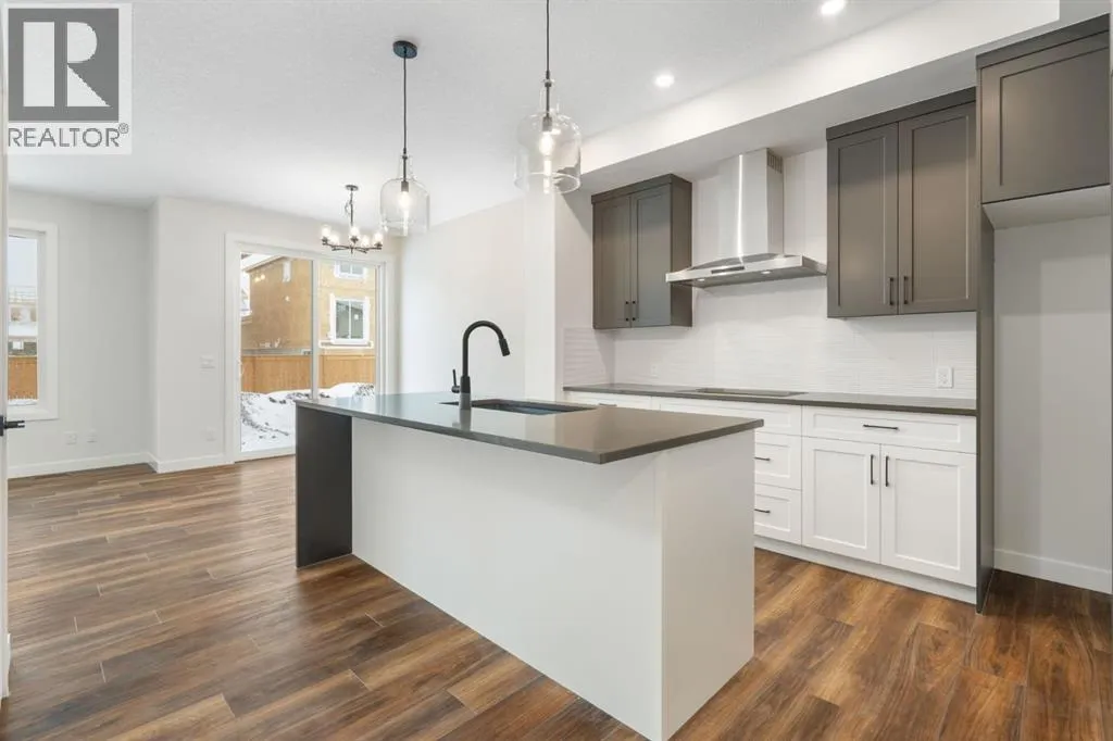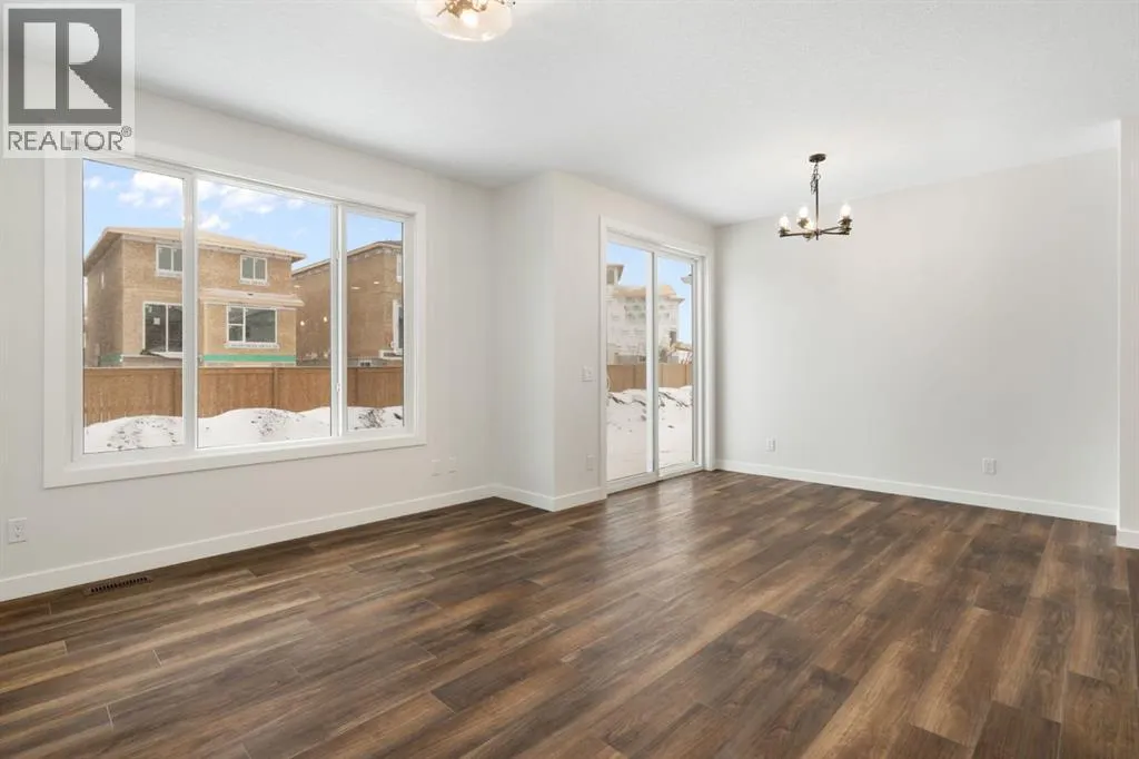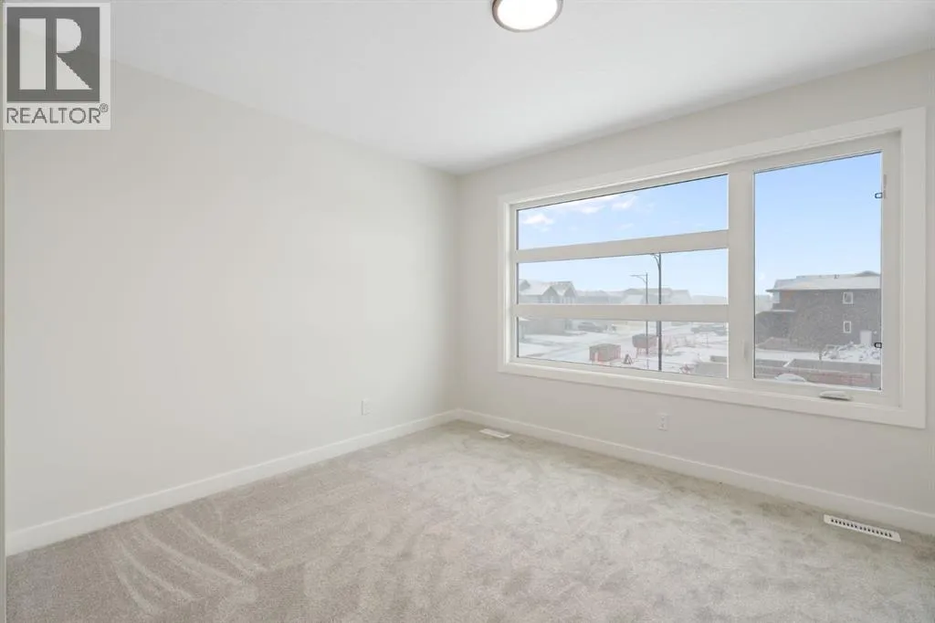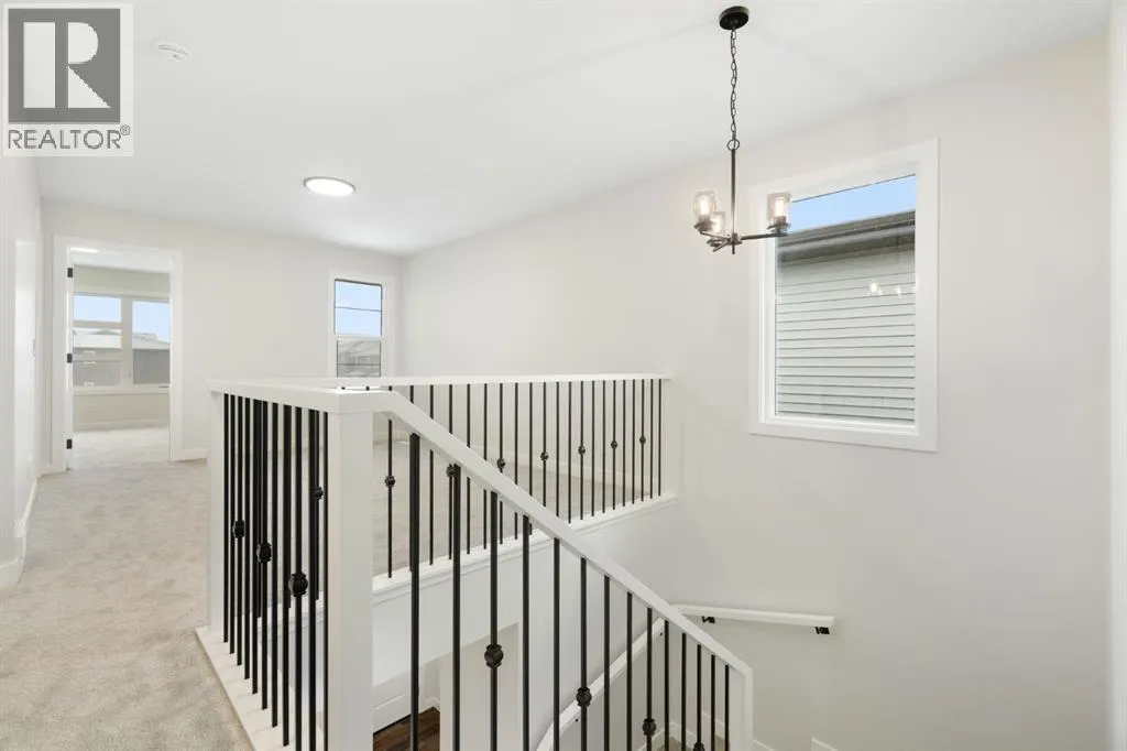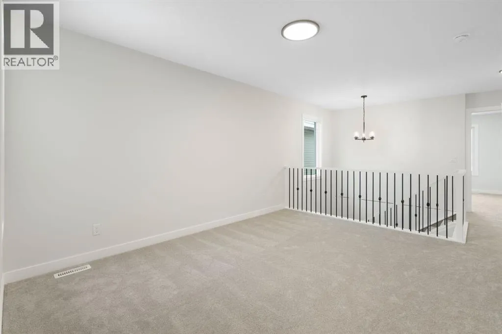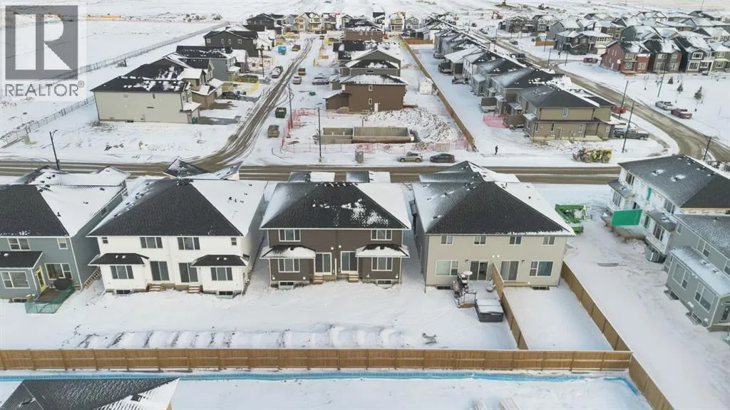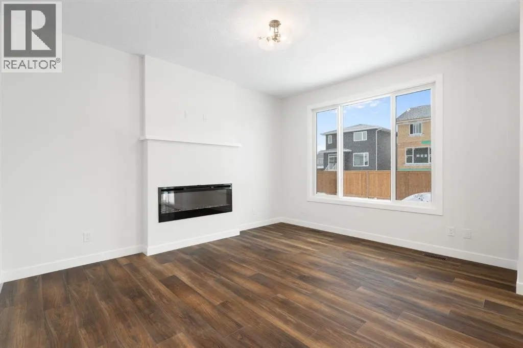 Welcome to the Valmore 4 by Sterling Homes, a long-standing Alberta builder with over 70 years of experience known for quality craftsmanship and thoughtful design. Located in the growing community of Southbow Landing, this move-in ready home sits just steps from parks and green space, with convenient access to schools, shopping, restaurants, the Bow River pathways, and Highway 1 for Calgary commuters.Inside, the main floor is bright and welcoming with large windows and a great room anchored by an electric fireplace. The executive kitchen is designed for both everyday living and entertaining, featuring a waterfall island, walk-in pantry, pendant lighting, and a full stainless steel appliance package including a gas cooktop. The double attached garage is also easily accessible off the entry way.Upstairs, the layout is both practical and spacious. A central bonus room provides that extra living area often missing in duplex homes. The primary suite features a 5-piece ensuite with a soaker tub, walk-in shower, and tile flooring. Two additional well-sized bedrooms, 4-piece bathroom, and convenient upper-floor laundry complete the level.The backyard offers plenty of space for a future deck, trampoline, garden, or room to simply enjoy the outdoors.Built Green certified, the home includes triple-pane windows, a high-efficiency furnace, solar chase for future solar installation, and an electric vehicle charger rough-in. Smart home features include a programmable thermostat, Ring doorbell camera, smart front door lock, motion-activated switches, and an Amazon Alexa touchscreen hub.A well-designed, energy-efficient home in one of Cochraneâs newest communities, now ready for its first owners. (id:27476)