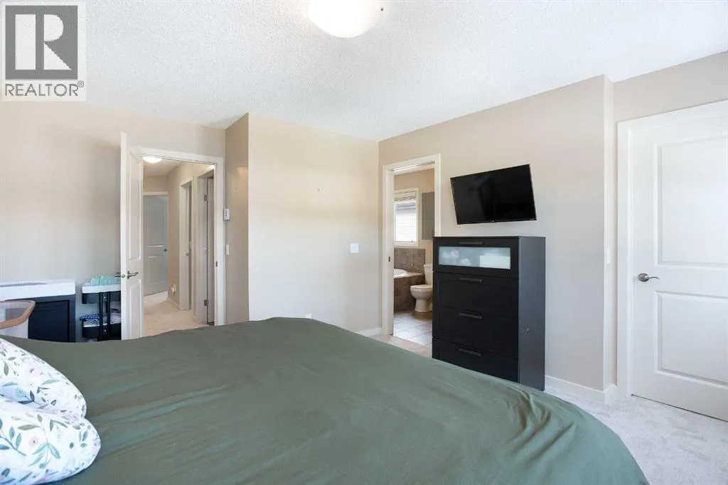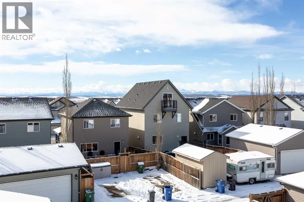 With over 2000 sq ft of developed space, set on a quiet street, located mid-block, in a welcoming, family oriented community of Sunset Ridge, this well maintained home offers a functional layout and comfortable living spaces designed for everyday life. With central air conditioning and thoughtful updates throughout, it provides both convenience and comfort for a busy household.As you enter, the main level greets you with beautiful hardwood flooring and an open, bright living space that flows from room to room. Large windows allow natural light to fill the home, creating a warm and inviting atmosphere ideal for relaxing or entertaining. The kitchen is designed with practicality in mind, featuring generous counter space, ample cabinetry, a newly replaced stove and a large island that makes dinner preparation or weekend get- togethers enjoyable. The adjoining dining area offers a comfortable spot for family dinners.Upstairs, the home has been refreshed with brand new carpet on the staircase and throughout the upper level, adding a soft and modern touch. The primary bedroom is completed with a walk-in closet and a spacious ensuite bathroom. Two additional bedrooms and a full bathroom provide plenty of room for children, guests, or a home office, with a mountain view.The fully finished basement expands the living space even further, offering a versatile recreation area along with an additional bedroom and a spacious 3-piece bathroom with heated floors, perfect for guests or visiting family.Upgrades include a new washer and dryer, making everyday chores a little easier.Outside, the heated oversized garage with a 10-foot door is a standout feature along with 220 volt power, providing exceptional space for vehicles, storage, outdoor gear or even an RV parking. Additional secure storage is provided by a built-in shed, located under the deck.Combining a smart layout, modern updates, and excellent storage, this home delivers the space and functionality todayâs fam ilies need, all in a location one's family will enjoy. (id:27476)