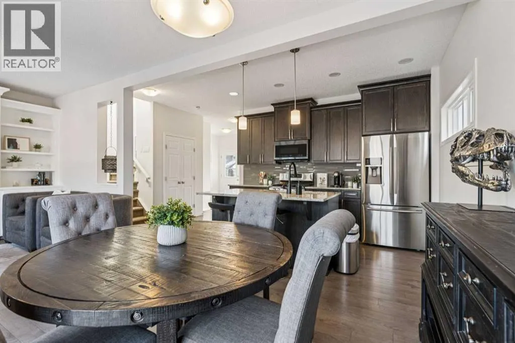 Welcome to 58 Buckskin Way, where modern comfort meets everyday living.Built in 2017, this beautifully appointed two-storey home in Cochraneâs sought-after Heartland community offers warmth, functionality, and timeless style.Step inside to a thoughtfully designed main floor where comfort and style blend seamlessly. The kitchen is both elegant and practical, featuring GRANITE COUNTERTOPS, a GAS RANGE, and clean contemporary finishes.The dining area flows effortlessly into a bright and inviting living room highlighted by a striking CUSTOM BUILT-IN TV MEDIA UNIT that frames the electric fireplace and custom TV niche.Upstairs, youâll find an OVERSIZED BONUS ROOM perfect for movie nights, a play area, or a quiet retreat. The convenient UPPER-LEVEL LAUNDRY ROOM adds everyday ease.The spacious PRIMARY SUITE offers a private escape with a five-piece ensuite complete with DOUBLE VANITY and a large WALK-IN CLOSET.Two additional bedrooms and a full bathroom provide flexibility for growing families, guests, or a home office.Outside, the FULLY FENCED and beautifully LANDSCAPED BACKYARD is ready for summer evenings and weekend gatherings. The stunning TWO-TIERED DECK WITH GAZEBO creates the perfect setting for entertaining, relaxing, and enjoying Cochraneâs fresh mountain air.Nestled near scenic walking paths, playgrounds, and breathtaking mountain views, this home offers the perfect balance of peaceful living and city convenience in one of Cochraneâs most desirable communities. (id:27476)