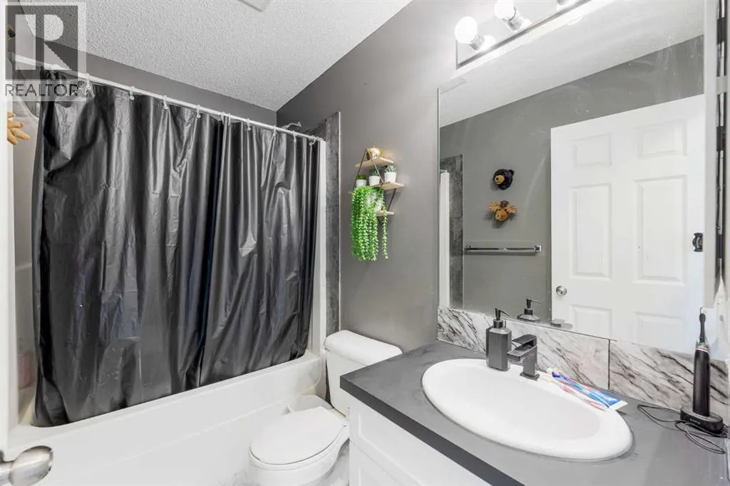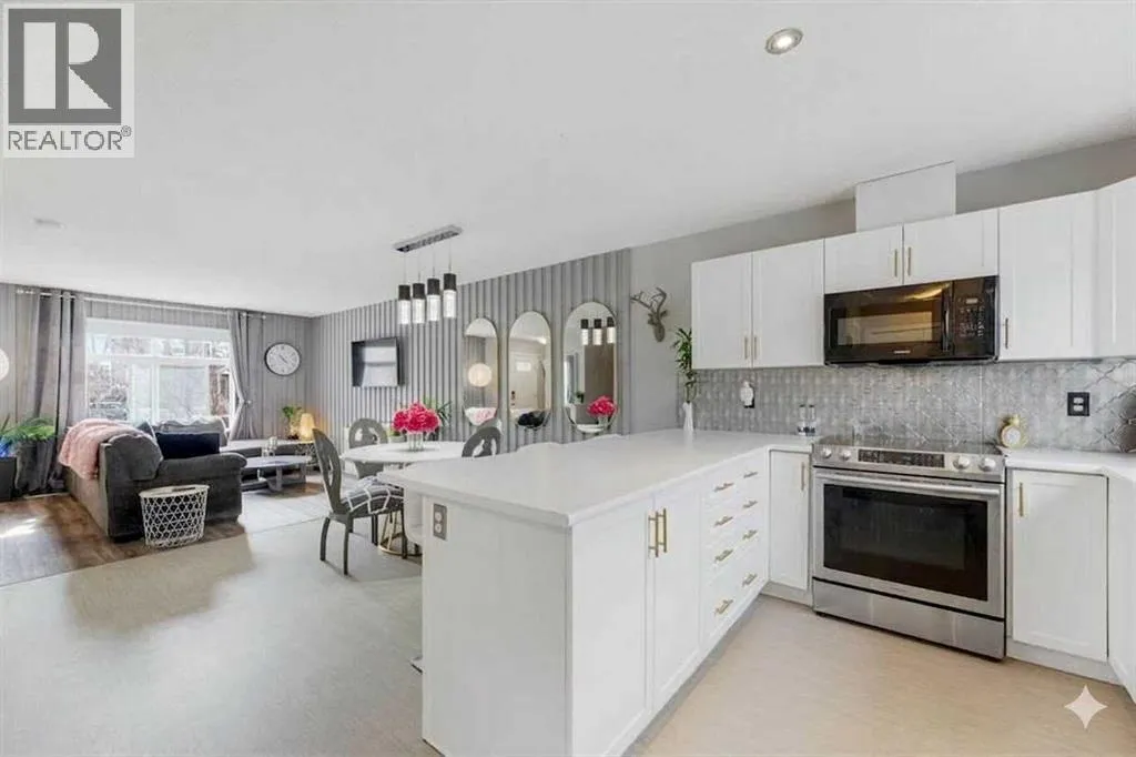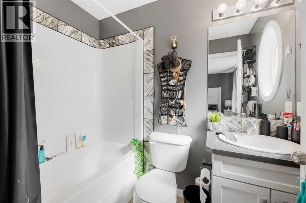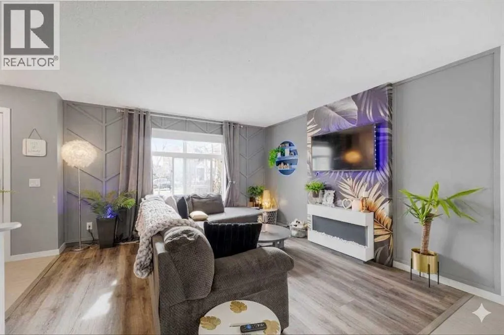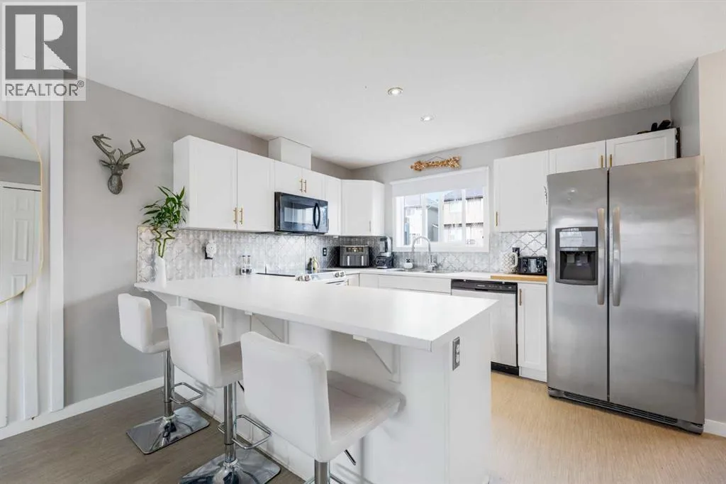 NO CONDO FEES | FULLY FINISHED | FOUR BEDROOMS | OVER 1700 sq.ft LIVING SPACE | Welcome to this fully finished home in the desired Cochrane community of Sunset. Step inside and discover an open-concept main floor that immediately feels inviting. You'll be greeted by a thoughtful entry space, perfect for coats and shoes, leading into the living room featuring decorative wall details, neutral paint colors, modern flooring, newer light fixtures, and updated doors. The spacious kitchen boasts ample counter space, a convenient breakfast bar, and sleek stainless steel appliances, including a large double-door refrigerator and a large pantry. You'll be delighted by the abundance of storage, a rare find in townhousesâthereâs a place for everything! Upstairs, comfort meets sophistication with newer flooring, neutral paint colours, updated lighting, and updated baths. The generously sized bedrooms offer peaceful retreats, including a primary suite featuring a relaxing 4-piece ensuite with a soaker tub. An additional renovated 4-piece bathroom serves the other bedroom. The finished basement adds significant living space, featuring a bright and modern family room, a fourth bedroom, and a stylish 3-piece bathroomâall enhanced with durable vinyl plank flooring. Outside, your private, fenced yard is an extension of your living space. Enjoy summer days on the deck, host gatherings on the concrete patio, or relax on the well-maintained lawn. You'll also appreciate the convenient rear parking for two vehicles. The motivated seller has made this townhouse truly feel like home from every angle. Don't miss the opportunity to experience the perfect blend of style, space, and convenience! (id:27476)