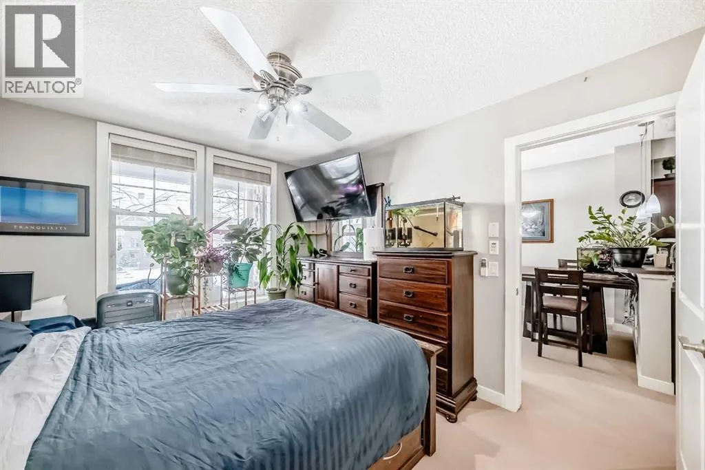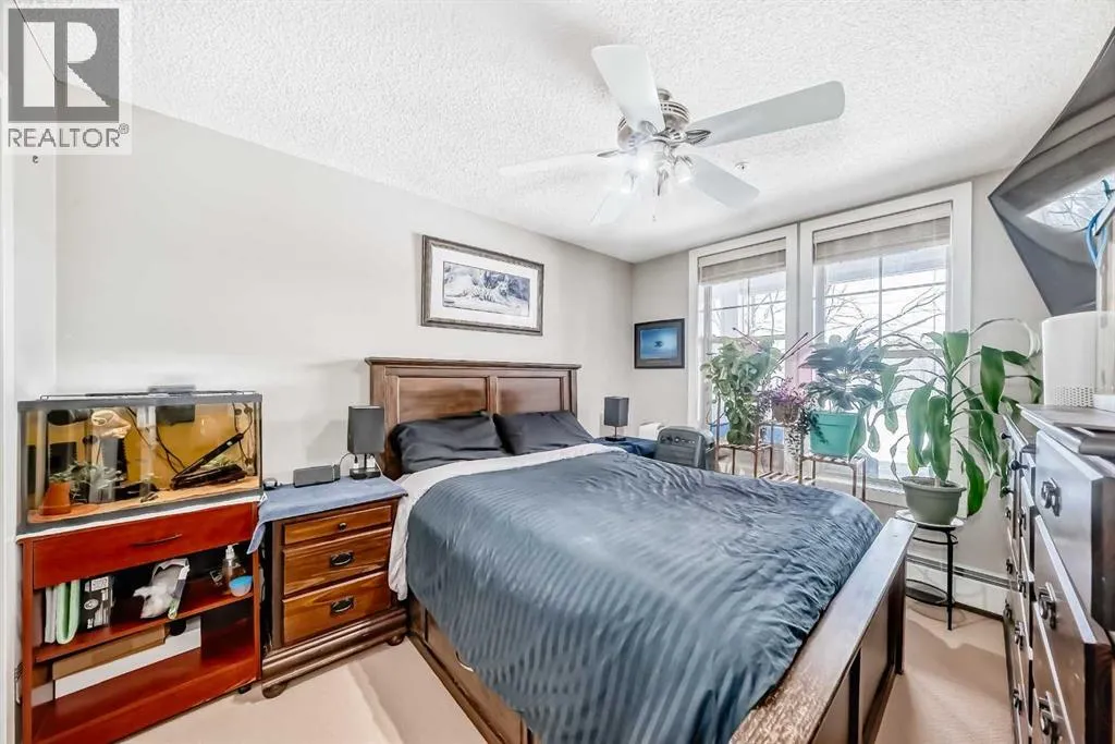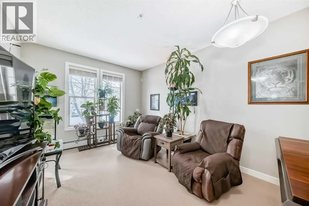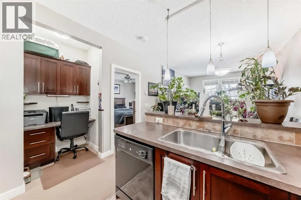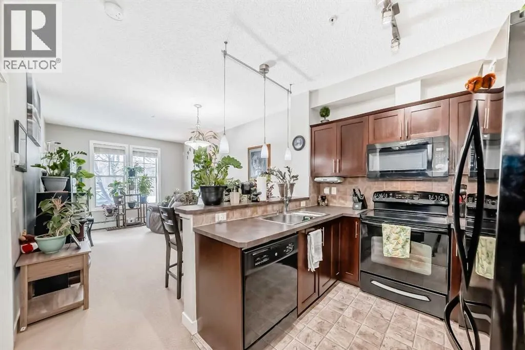 ** Open House: Saturday, April 4th 12 to 2pm ** Welcome to this inviting southwest facing ground floor apartment in the sought-after community of Sunset Ridge. Offering a functional and comfortable layout, this home features updated appliances, a spacious primary bedroom with a walk-in closet, an office area, and the convenience of an in-suite laundry room. Step outside to your private southwest-facing patio, the perfect place to relax and enjoy beautiful mountain views, complete with a BBQ gas line for easy outdoor grilling and entertaining. There is a titled parking stall and a dedicated storage unit in the underground heated parking garage. Residents have access to excellent building amenities including a fitness centre, secure bike storage, and a guest suite available to rent for visiting friends and family. Ideally located just steps from a convenient commercial plaza featuring a gas station, convenience store, restaurants, bakery, pharmacy, liquor store, and hair salon, making everyday errands effortless. Surrounded by pathways, parks, and stunning Rocky Mountain views, this home offers comfortable, low-maintenance living. (id:27476)