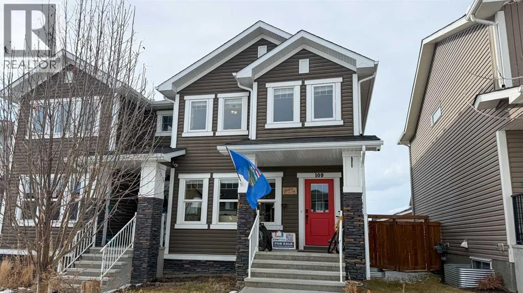 Welcome to Heartland in Cochrane. This beautifully designed 1,421 sq. ft. duplex combines modern style with practical function in the family-friendly community of Heartland. The home features a bright, open-concept. The spacious rear kitchen is equipped with stainless steel appliances, granite countertops in the kitchen, and plenty of cabinetry for storage. The main floor flows seamlessly from kitchen to dining to living space, creating the perfect environment for everyday living. Upstairs offers three generously sizedbedrooms and two bathrooms, including a primary suite with a walk-in closet and private ensuite. A laundry closet with shelving completes the upper floor for added convenience. All windows are finished with shades. The unfinished basement provides endless possibilities, ready for your personaltouch. The property is fully landscaped and includes an oversized and insulated 20â x 28â detached double-car garage at the rear, as well as a 10â x 12â deck. Heartland is a young vibrant community known for its open green spaces, parks, playgrounds, and walking paths. Only 22 kms to Calgary. The home is protected 24/7 by five high def Reolink security cameras and exterior doors are secured by Eufy Security Smart Locks. (id:27476)