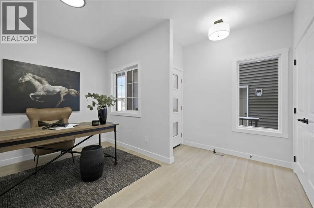 Welcome to the âCapriâ by Genesis Builders Group in the desirable community of Fireside. This beautifully crafted home offers over 2,100 sq ft of thoughtfully designed space, including 3 spacious bedrooms, 2.5 bathrooms, and a main-floor office. Step inside to airy 9â ceilings and an inviting colour palette. A front flex room creates the perfect space for a home office or study, while a conveniently placed powder room adds everyday ease. The dining area flows effortlessly into the centrally located kitchen, which showcases quartz countertops, sleek stainless steel appliances, and ample cabinetry, with an island perfect for entertaining. The living room has a striking focal-point fireplace. A functional mudroom off the double-attached garage completes this level and enhances everyday convenience. Upstairs, youâll find a thoughtfully designed layout highlighted by a centrally located bonus room offering excellent separation between sleeping areas. The spacious primary retreat features ample room for a king bedroom suite, a dedicated ensuite bathroom with dual sinks and oversized shower and a large walk-in closet. The second bedroom is well-sized, while the third bedroom impresses with its own walk-in closet. A full bathroom and convenient upper-floor laundry complete this level. The unfinished basement offers 9â ceilings and is ready for your design ideas. *PHOTOS ARE REPRESENTATIVE OF A PREVIOUSLY BUILT MODEL. Colours and selections are included in the photos. RMS has been applied to construction drawings. Taxes have not been assessed. (id:27476)