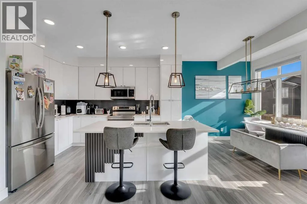 Introducing Your Beautiful Home in Heartland, CochraneWelcome to this stunning family home in the heart of Heartland, located in the charming town of Cochrane. Offering approximately 2,000 sq. ft. of thoughtfully designed living space, this property perfectly blends comfort, style, and functionality.The main floor features a dedicated office, ideal for working from home or creating a quiet study area. The open-concept layout leads to a modern kitchen showcasing full ceiling-height cabinetry, stainless steel appliances, and a stylish feature wall. Upgraded lighting fixtures throughout the home add a contemporary and elegant touch.Upstairs youâll find a spacious bonus room, perfect for family gatherings or entertainment. The primary bedroom features a luxurious 5-piece ensuite bathroom, creating a relaxing private retreat. The upper level also includes two additional well-sized bedrooms and a full 4-piece bathroom, along with a convenient upper-floor laundry room with built-in cabinetry.Additional Highlights:⢠Extended garage with extra space⢠Fully fenced backyard â perfect for kids and pets⢠Bright and functional open layout⢠Modern finishes throughout the homePrime Location:⢠Close to schools, parks, and playgrounds⢠Near Bow River pathways and playground areas⢠Minutes from commercial plaza and everyday amenities⢠Easy access to Alberta Highway 1A for convenient commutingA perfect home offering space, comfort, and a fantastic location in Heartland. (id:27476)