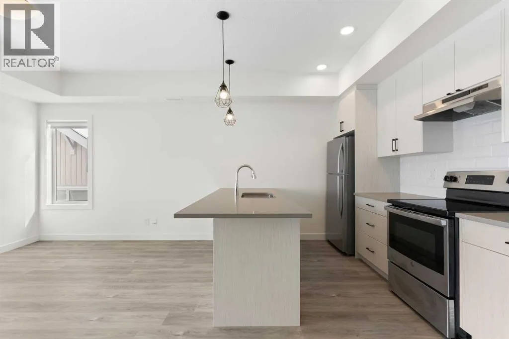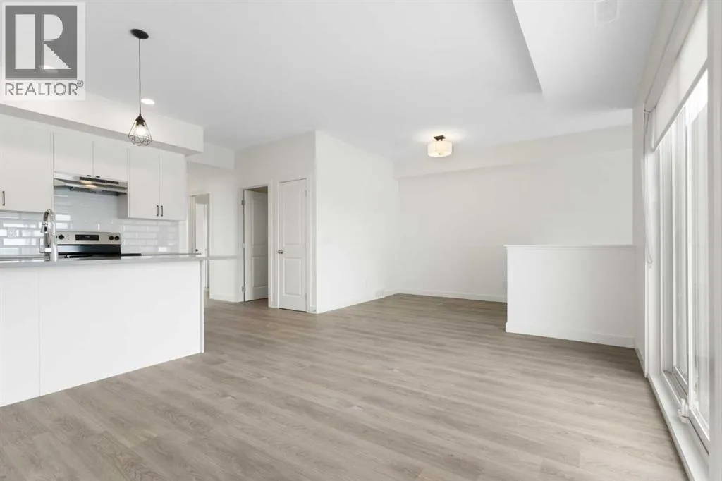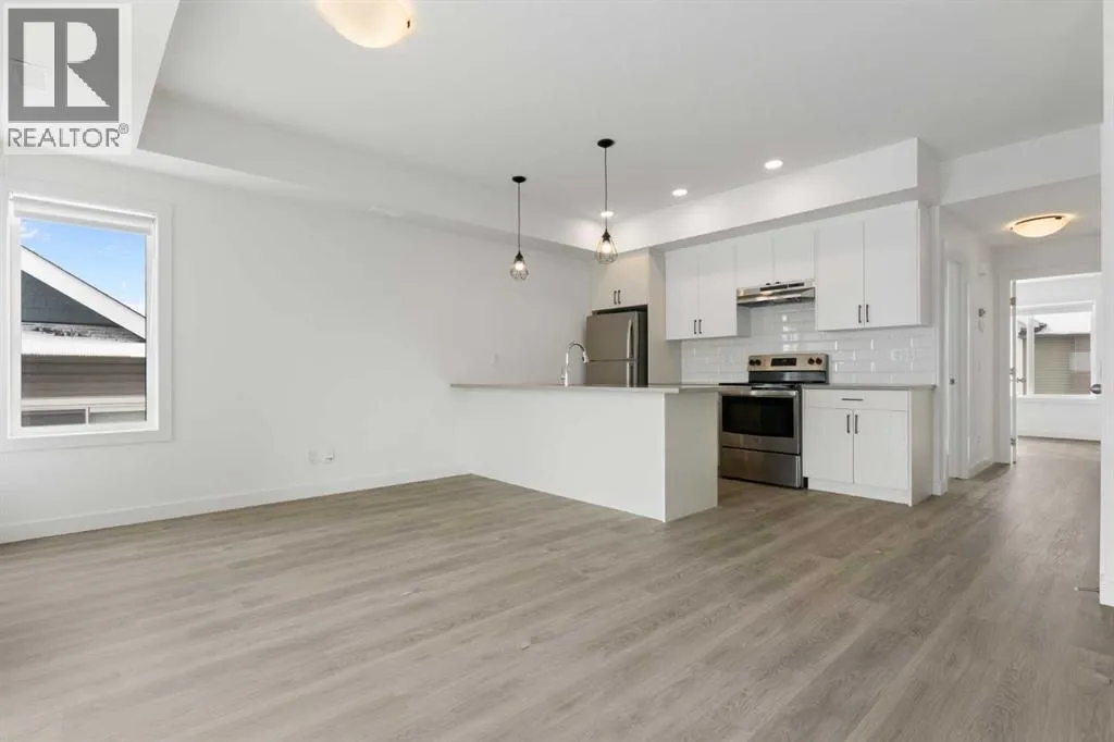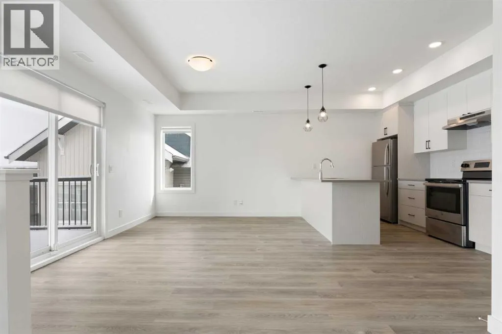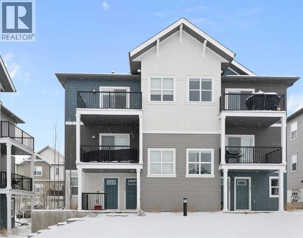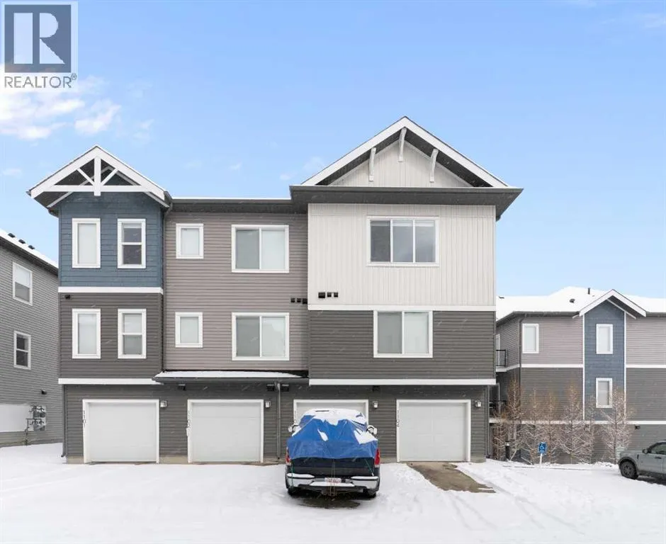 Welcome to The Jasper, a stunning top-floor stacked townhouse that offers the perfect blend of style and function. This unit at 1103 24 Rivercrest Drive features over 1200 sq ft of thoughtfully designed living space, with most of the layout conveniently situated on a single level. Step inside and up to the main floor and you will discover an open-concept living area with a full kitchen that's a home chef's dream. The kitchen boasts elegant quartz countertops, soft-close drawers, and stylish two-tone cabinets highlighted by pendant lighting. An adjacent, flexible space is perfect for a spacious dining area or a home office. This home has two large bedrooms and a full 4-piece bathroom with dual access. The primary bedroom is a true retreat, featuring a massive walk-in closet and a luxurious 4-piece ensuite. A spacious laundry room adds to the convenience.This unique floorplan is designed to feel like a modern apartment but with the added benefits of a main floor storage/flex area and direct access to an oversized, extended single-car garage.This home is perfectly situated to offer the best of both convenience and community. It's located right next to a future school site, with transit options directly at your doorstep for effortless commuting. Enjoy a short two-minute walk to Bow Valley High School, and a quick five-minute trip to the Spray Lakes Sports Centre for all your recreational needs. For bigger city amenities, you're only 20 minutes from South Calgary, and the mountains are within easy reach, with Canmore just a 40-minute drive away. (id:27476)