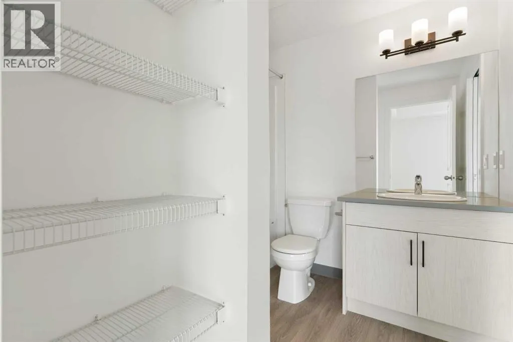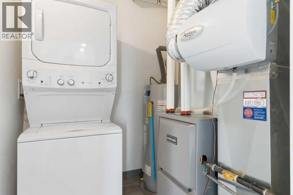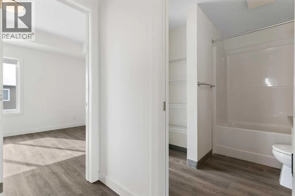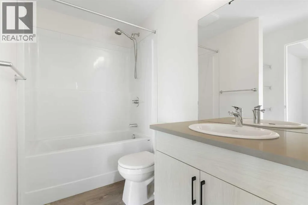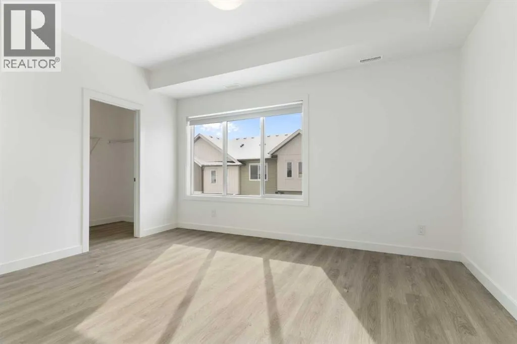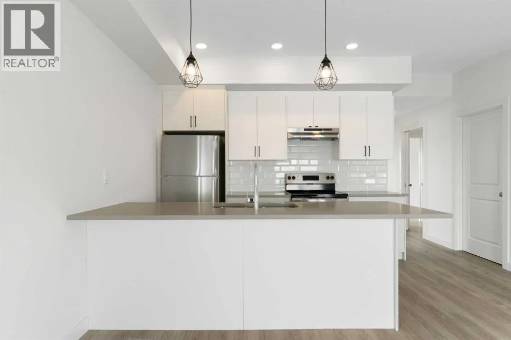 Welcome to The Jasper, a stunning top-floor stacked townhouse that offers the perfect blend of style and function. This unit at 1103 24 Rivercrest Drive features over 1200 sq ft of thoughtfully designed living space, with most of the layout conveniently situated on a single level. Step inside and up to the main floor and you will discover an open-concept living area with a full kitchen that's a home chef's dream. The kitchen boasts elegant quartz countertops, soft-close drawers, and stylish two-tone cabinets highlighted by pendant lighting. An adjacent, flexible space is perfect for a spacious dining area or a home office. This home has two large bedrooms and a full 4-piece bathroom with dual access. The primary bedroom is a true retreat, featuring a massive walk-in closet and a luxurious 4-piece ensuite. A spacious laundry room adds to the convenience.This unique floorplan is designed to feel like a modern apartment but with the added benefits of a main floor storage/flex area and direct access to an oversized, extended single-car garage.This home is perfectly situated to offer the best of both convenience and community. It's located right next to a future school site, with transit options directly at your doorstep for effortless commuting. Enjoy a short two-minute walk to Bow Valley High School, and a quick five-minute trip to the Spray Lakes Sports Centre for all your recreational needs. For bigger city amenities, you're only 20 minutes from South Calgary, and the mountains are within easy reach, with Canmore just a 40-minute drive away. (id:27476)