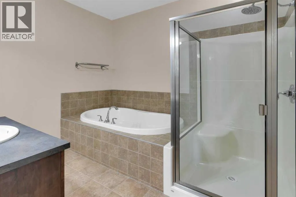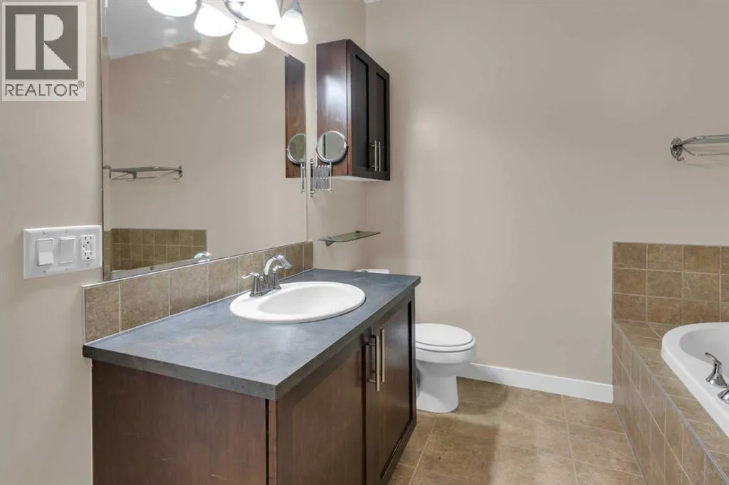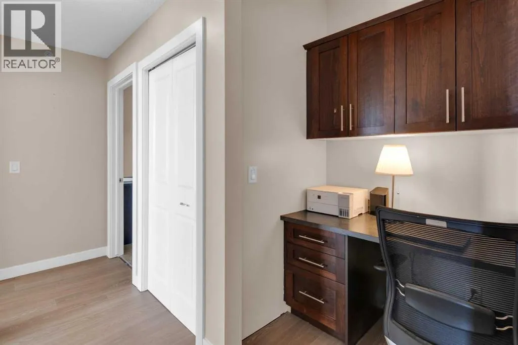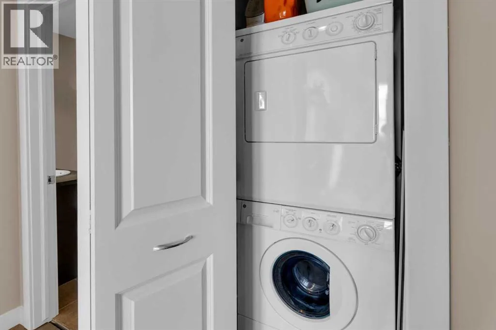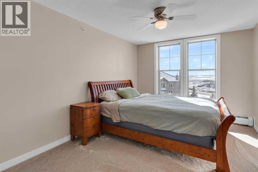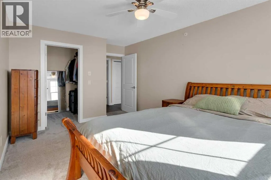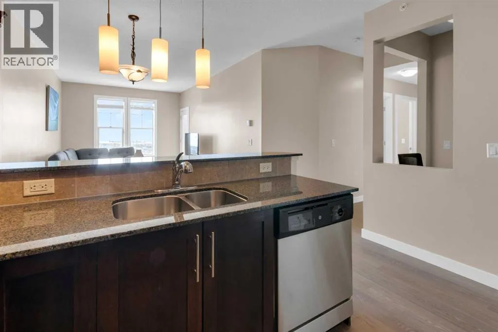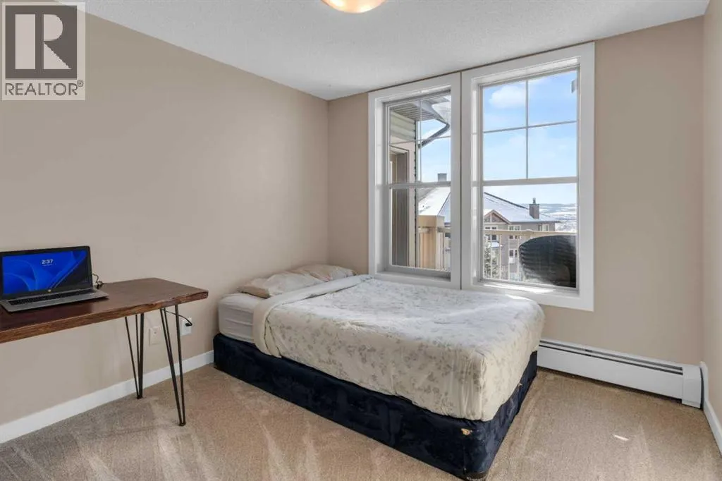 HOME SWEET HOME! Calling all first-time home buyers and investor's, welcome to this stunning, FRESHLY UPDATED TOP FLOOR CONDO with 2 PARKING STALLS in the sought-after community of Sunset Ridge in Cochrane! This chic unit offers 2 bedrooms, 1 bathroom, 858 exquisite SQFT that has been freshly updated with FRESH PAINT, NEW CARPET and LUXURY VINYL PLANK FLOORING (2026). Walking in to the unit you are greeted by the contemporary kitchen complete with stainless steel appliances, granite countertops, granite island with an eating bar, tiled backsplash, warm maple cabinetry and stylish light fixtures. Next to the kitchen you will find the bright formal dining room, spacious sun-drenched living room with access to the massive deck to enjoy your breathtaking views of the mountains. Completing the unit are an office nook, a two great-sized bedrooms including the magnificent primary bedroom with a spacious walk-in closet, lavish 4 piece bathroom with a relaxing soaker tub perfect to enjoy after a long day, separate, private shower and in-suite laundy. This unit includes a titled indoor parking stall, outdoor parking stall, assigned storage locker and exclusive access to the amenities featured in the popular, pet friendly 'Alora at Sunset Ridge' building include a fitness facility, guest suites, visitor parking and more. Close to all major amenities including shopping, restaurants, beautiful dog walking trails, schools (St. Timothy Catholic School and Rancheview School), quick drive to Calgary and easy access to escape to the mountains. This unit is a MUST VIEW, book your private viewing today! Please note that the pet rules allow for one pet under 18 pounds. Guest suite is $50/night + $35 janitorial fee if owner wishes to book for visiting guests. (id:27476)