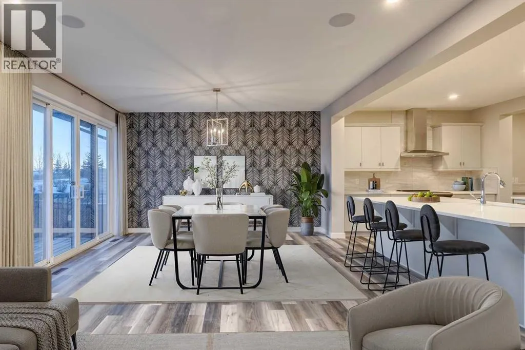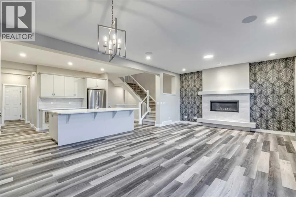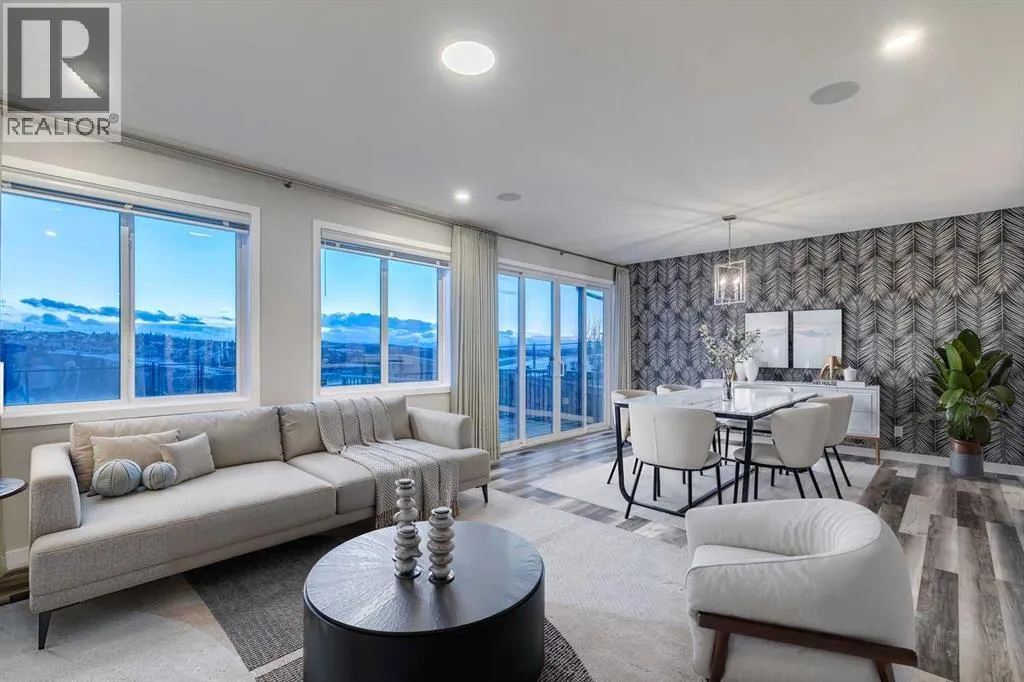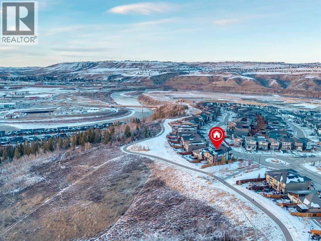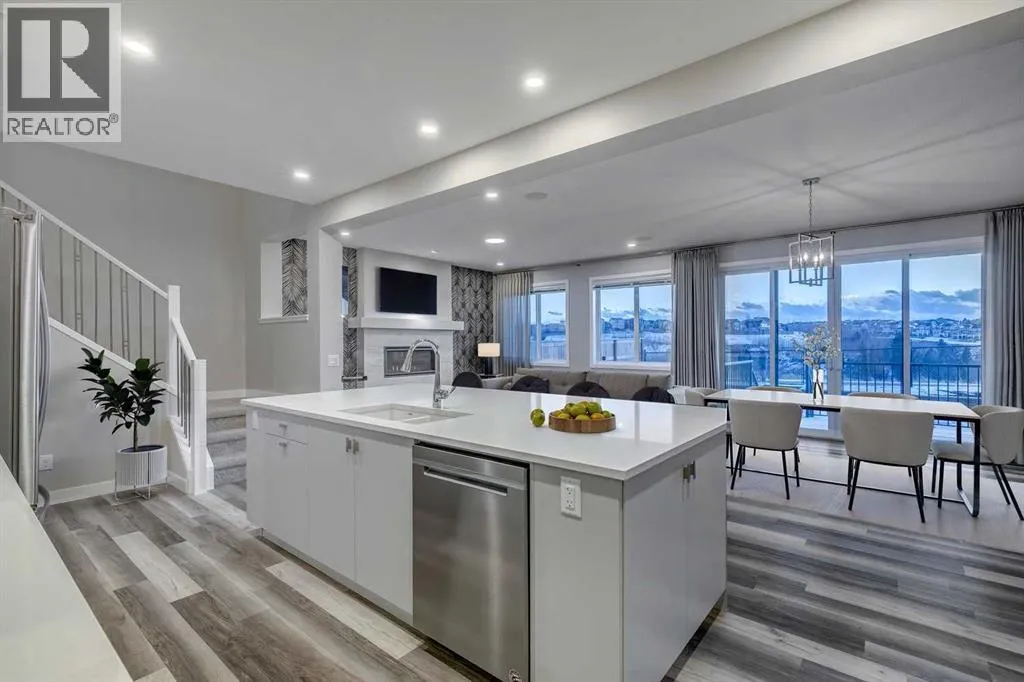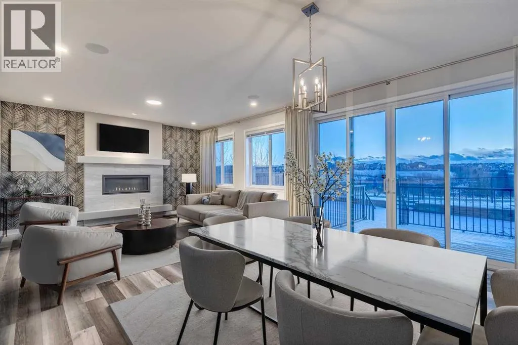 Set against a stunning natural backdrop in the desirable community of Precedence, this former show home offers refined design, impressive upgrades, and captivating river and mountain views. Thoughtfully designed for both entertaining and everyday living, the home showcases a seamless blend of modern comfort and elevated style. The main floor welcomes you with luxury vinyl plank flooring and expansive windows that fill the home with natural light. Just off the entrance, a private office with a striking slatted feature wall creates an inspiring workspace for those working from home. The open-concept layout then unfolds into the heart of the home - a beautifully appointed kitchen designed to impress. Featuring quartz countertops, a large island with built-in shelving, a dedicated coffee bar, and stainless steel appliances, including a smooth cooktop, built-in microwave, and French-door refrigerator with ice maker, this space effortlessly balances function and style. The adjoining living area offers a warm and inviting atmosphere, anchored by a gas fireplace set within a statement feature wall and enhanced by built-in speakers, making it ideal for entertaining or relaxing evenings at home. Upstairs, a spacious bonus room provides additional living space perfect for movie nights or family gatherings. The upper level also features three well-appointed bedrooms, including a luxurious primary retreat designed to take full advantage of the spectacular views. This serene space includes a custom built-in headboard feature, along with a spa-inspired ensuite complete with dual vanities, two walk-in closets, a deep soaker tub, and a glass stand-alone shower. A bright upstairs laundry room with counter space and large windows, along with a five-piece main bathroom with dual sinks, adds everyday convenience. Designed with modern living in mind, the home is fully equipped as a smart home integrated with Alexa and includes an impressive list of upgrades such as dual furnaces, two air conditioning units, solar panels, hot water on demand, smart Wi-Fi light switches, and an EV charger. Backing onto a beautiful natural landscape with direct access to scenic pathways, this property offers the rare opportunity to enjoy peaceful surroundings while taking in sweeping river and mountain views. Combining thoughtful design, premium upgrades, and an exceptional setting, this remarkable home delivers the best of luxury living in one of the area's most exciting growing communities. (id:27476)