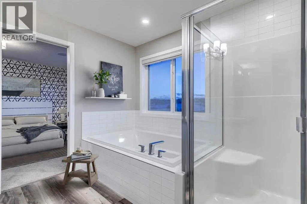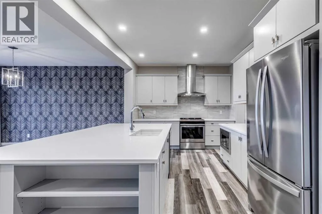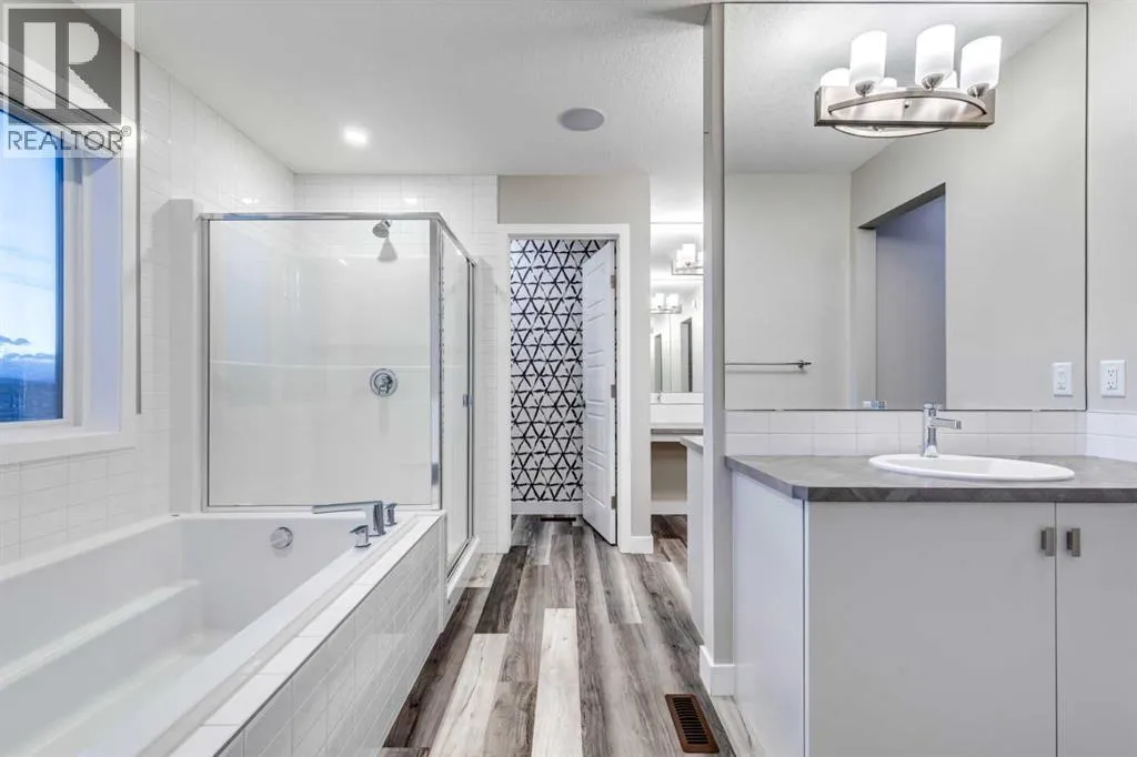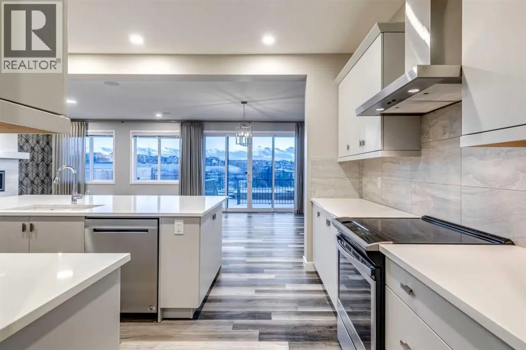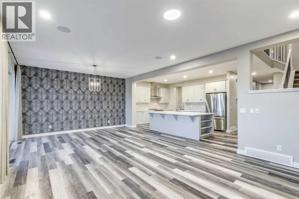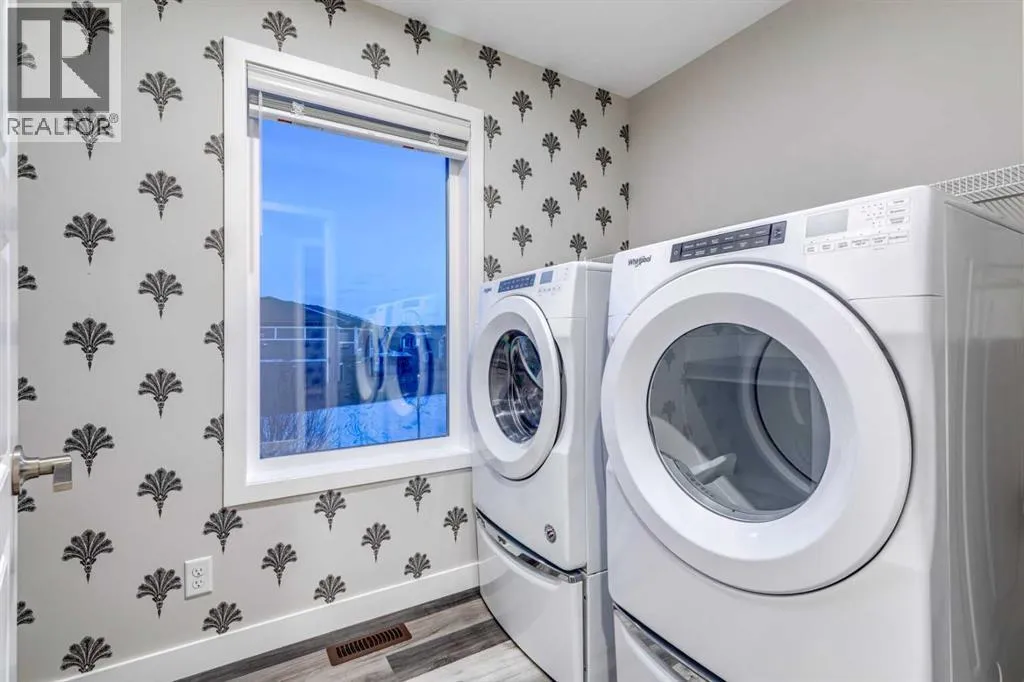 Set against a stunning natural backdrop in the desirable community of Precedence, this former show home offers refined design, impressive upgrades, and captivating river and mountain views. Thoughtfully designed for both entertaining and everyday living, the home showcases a seamless blend of modern comfort and elevated style. The main floor welcomes you with luxury vinyl plank flooring and expansive windows that fill the home with natural light. Just off the entrance, a private office with a striking slatted feature wall creates an inspiring workspace for those working from home. The open-concept layout then unfolds into the heart of the home - a beautifully appointed kitchen designed to impress. Featuring quartz countertops, a large island with built-in shelving, a dedicated coffee bar, and stainless steel appliances, including a smooth cooktop, built-in microwave, and French-door refrigerator with ice maker, this space effortlessly balances function and style. The adjoining living area offers a warm and inviting atmosphere, anchored by a gas fireplace set within a statement feature wall and enhanced by built-in speakers, making it ideal for entertaining or relaxing evenings at home. Upstairs, a spacious bonus room provides additional living space perfect for movie nights or family gatherings. The upper level also features three well-appointed bedrooms, including a luxurious primary retreat designed to take full advantage of the spectacular views. This serene space includes a custom built-in headboard feature, along with a spa-inspired ensuite complete with dual vanities, two walk-in closets, a deep soaker tub, and a glass stand-alone shower. A bright upstairs laundry room with counter space and large windows, along with a five-piece main bathroom with dual sinks, adds everyday convenience. Designed with modern living in mind, the home is fully equipped as a smart home integrated with Alexa and includes an impressive list of upgrades such as dual furnaces, two air conditioning units, solar panels, hot water on demand, smart Wi-Fi light switches, and an EV charger. Backing onto a beautiful natural landscape with direct access to scenic pathways, this property offers the rare opportunity to enjoy peaceful surroundings while taking in sweeping river and mountain views. Combining thoughtful design, premium upgrades, and an exceptional setting, this remarkable home delivers the best of luxury living in one of the area's most exciting growing communities. (id:27476)