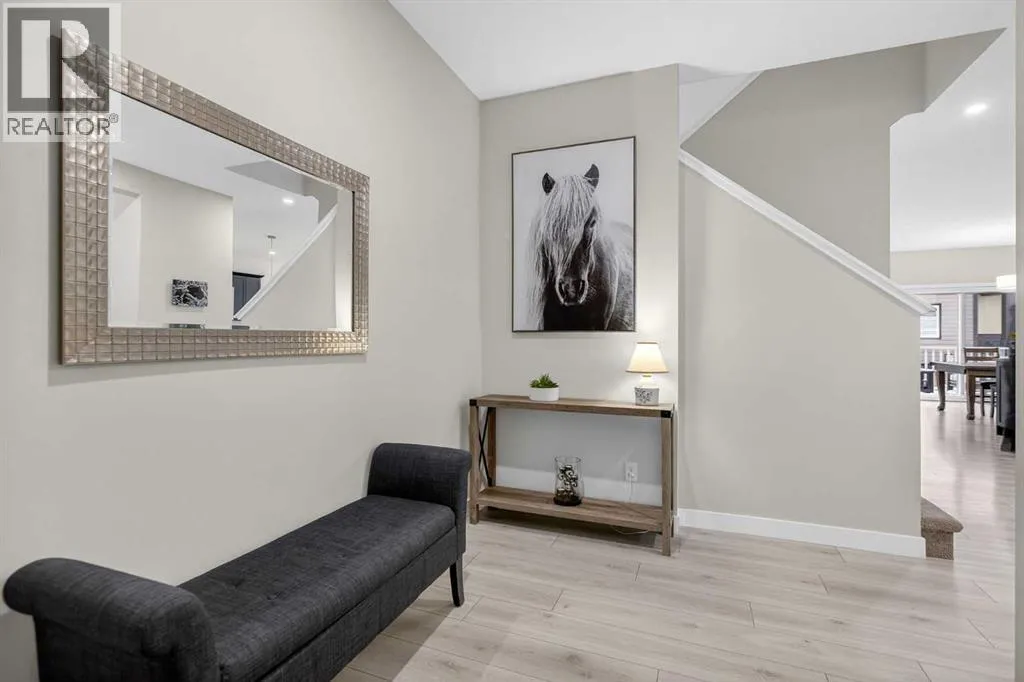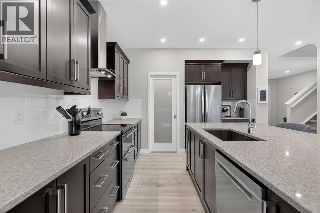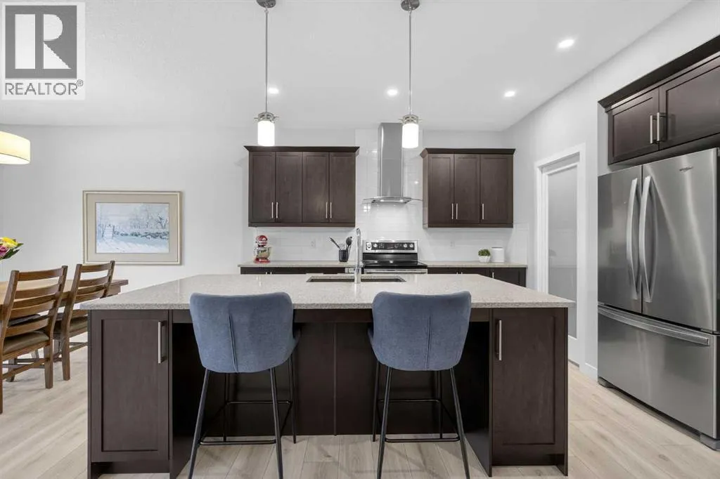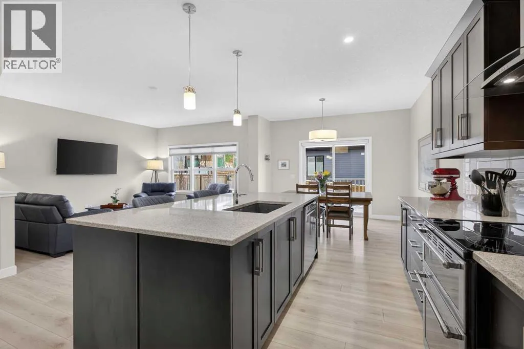 Welcome to 218 Riviera View, a beautifully finished home in the highly desirable riverside community of Riviera. Known for its natural surroundings, scenic pathways, and proximity to the Bow River, this neighbourhood offers a perfect balance of peaceful living and everyday convenience.Inside, the home welcomes you with a bright and modern layout designed for both comfort and entertaining. The main floor features an open living space where the kitchen, dining area, and living room come together seamlessly, creating a warm and inviting atmosphere filled with natural light.The kitchen is designed to impress, showcasing quartz countertops, stainless steel appliances, a glass top convection range, and a large central island that offers plenty of prep space and seating. Whether preparing meals or hosting guests, this space provides both style and practicality.Upstairs, youâll find a spacious bonus room that adds flexibility to the home, ideal for a family lounge, home office, or media space. The upper level also includes a convenient laundry room with cabinetry and counter space, along with three good sized bedrooms. The primary suite serves as a relaxing retreat, complete with a generous walk in closet and a beautifully appointed five piece ensuite featuring dual sinks, a deep soaker tub, and a separate shower.The lower level remains unfinished, offering large windows and rough ins for a future bathroom, making it an excellent opportunity to create additional living space tailored to your needs.Outdoor living can be enjoyed on the west-facing deck overlooking the private backyard, perfect for summer evenings and weekend barbecues. The oversized garage provides impressive functionality with room for two vehicles, including a truck!Living in Riviera means enjoying nature right outside your door, with access to the Bow River pathways just steps away. Youâll also appreciate being a short bike ride from the Cochrane Farmers Market, local parks, Spray Park, and t he Cochrane Recreation Centre and the new Coop shopping area.A wonderful opportunity to enjoy space, comfort, and one of Cochraneâs most picturesque communities. (id:27476)