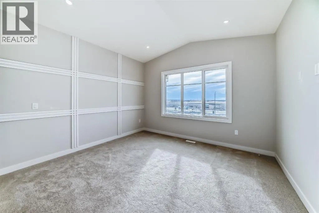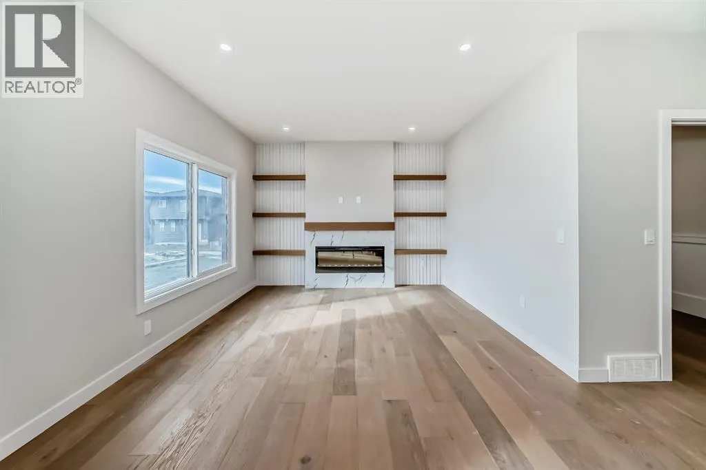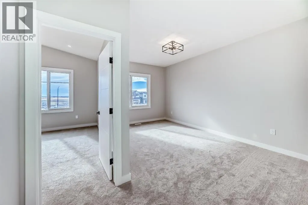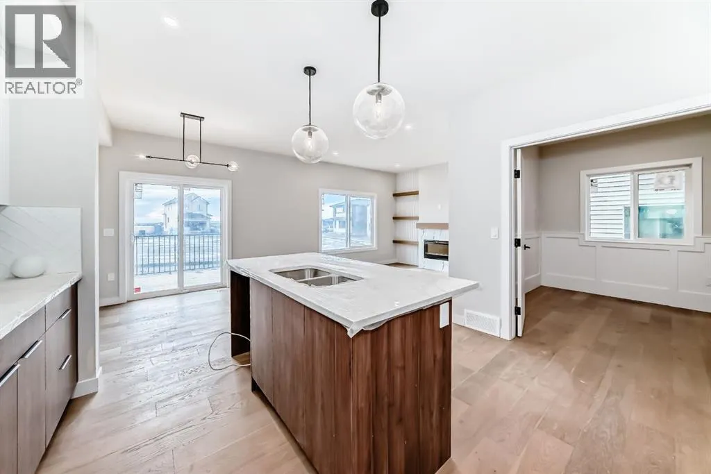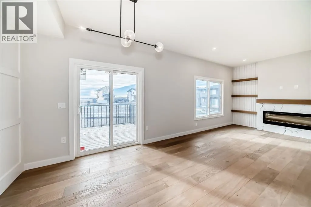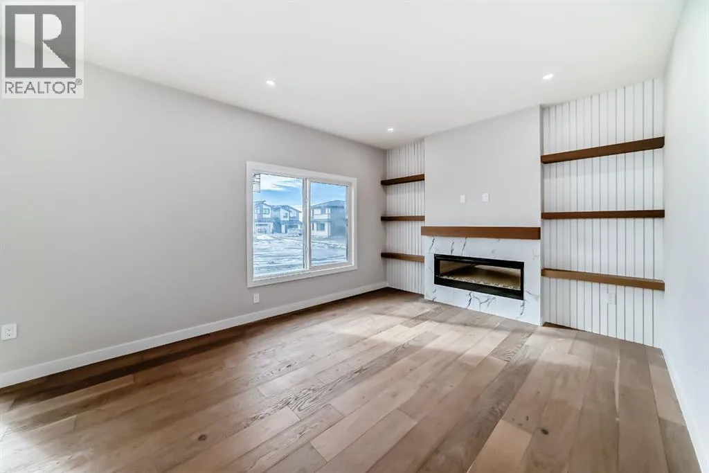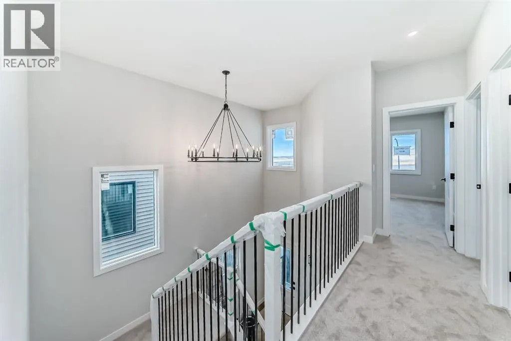 Discover the Yale, by Paragon Homes. This stunning 1922 sq ft home with double attached garage stands on top of the desirable West Hawk community, and has an abundance of natural light that fills every space and 9ft ceilings throughout. Step inside to a bright foyer with engineered hardwood flooring, large windows and an open to above staircase. The walkthrough mudroom with built-in storage connects seamlessly from the garage into the pantry, perfect for staying organized. The large kitchen is a chefâs dream, finished with stainless steel appliances, quartz countertops, a generous island, and custom cabinetry. A large main floor office with feature walls offers the perfect workspace/playroom/den. The cozy living room with electric fireplace, and dining area with leading to the deck and backyard, with ample space for outdoor gatherings and endless backyard possibilities. Upstairs, youâll find two generously sized bedrooms, a family bathroom, laundry room with convenient built in storage, and the primary retreat featuring a vaulted ceiling, a luxurious 5 piece ensuite with a soaker tub, and a fantastic walk-in closet with custom built-ins. The additional side entrance adds extra convenience for future developments or separate living spaces. This home combines modern updates with classic charm in a coveted neighborhood. Donât miss your chance to make this remarkable property your new home! Easily head West to the mountains and East to Calgary, this home is located close to schools and education facilities, and a wide variety of amenities. Just a short drive and you can enjoy the many restaurants, green spaces and river walking paths. This home combines modern updates with classic charm in a coveted neighborhood. Donât miss your chance to make this remarkable property your new home, book your showing today! (id:27476)