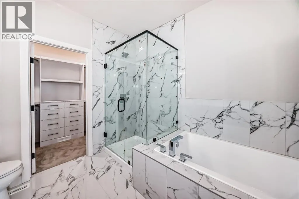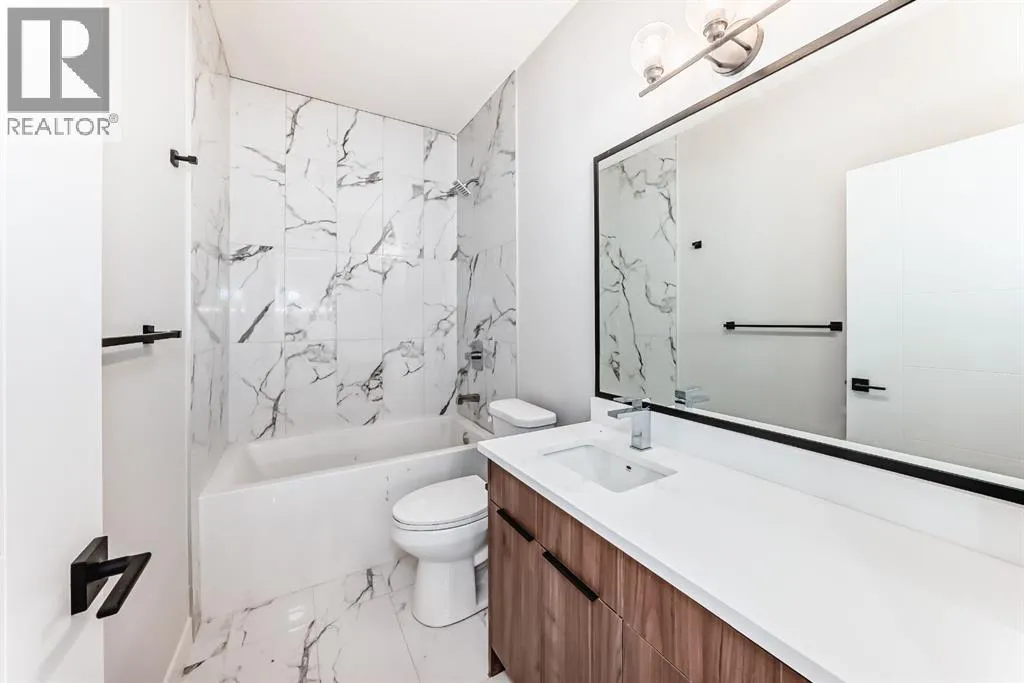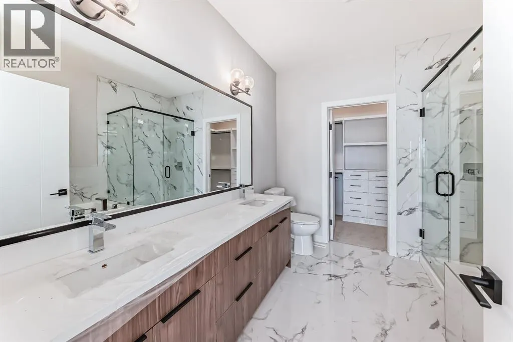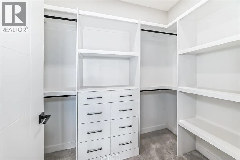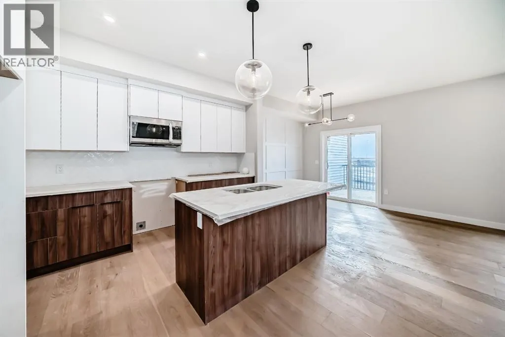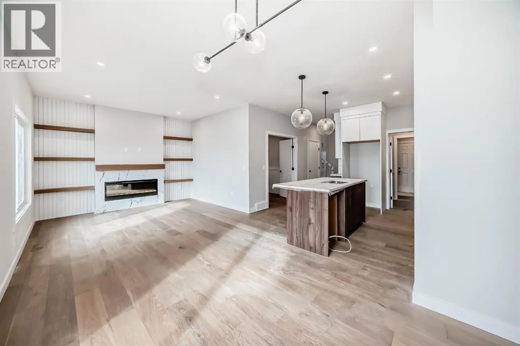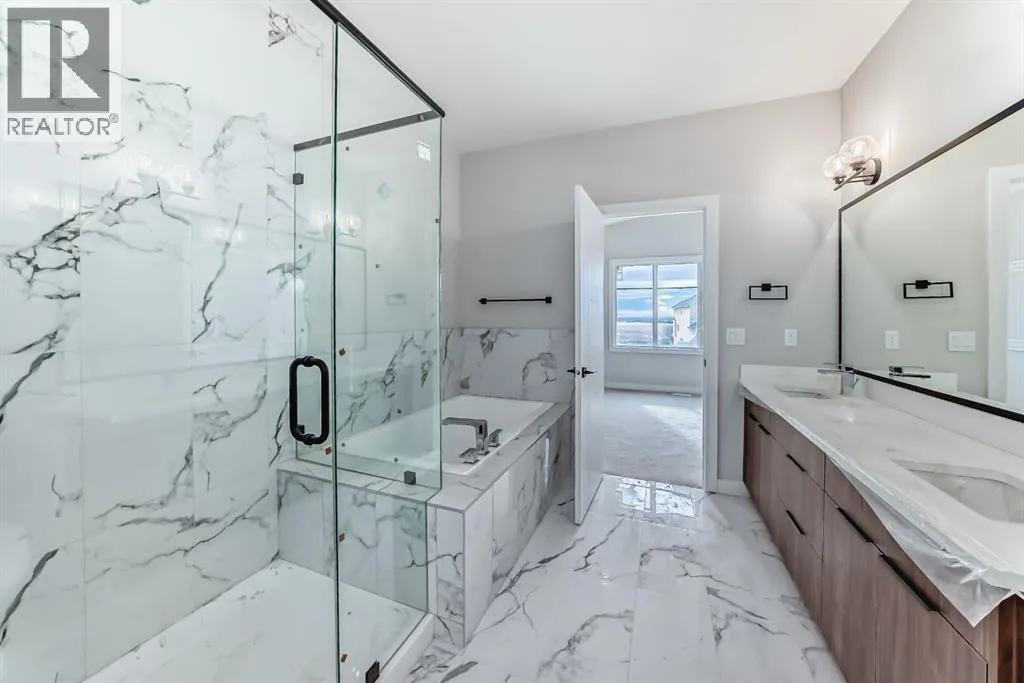 Discover the Yale, by Paragon Homes. This stunning 1922 sq ft home with double attached garage stands on top of the desirable West Hawk community, and has an abundance of natural light that fills every space and 9ft ceilings throughout. Step inside to a bright foyer with engineered hardwood flooring, large windows and an open to above staircase. The walkthrough mudroom with built-in storage connects seamlessly from the garage into the pantry, perfect for staying organized. The large kitchen is a chefâs dream, finished with stainless steel appliances, quartz countertops, a generous island, and custom cabinetry. A large main floor office with feature walls offers the perfect workspace/playroom/den. The cozy living room with electric fireplace, and dining area with leading to the deck and backyard, with ample space for outdoor gatherings and endless backyard possibilities. Upstairs, youâll find two generously sized bedrooms, a family bathroom, laundry room with convenient built in storage, and the primary retreat featuring a vaulted ceiling, a luxurious 5 piece ensuite with a soaker tub, and a fantastic walk-in closet with custom built-ins. The additional side entrance adds extra convenience for future developments or separate living spaces. This home combines modern updates with classic charm in a coveted neighborhood. Donât miss your chance to make this remarkable property your new home! Easily head West to the mountains and East to Calgary, this home is located close to schools and education facilities, and a wide variety of amenities. Just a short drive and you can enjoy the many restaurants, green spaces and river walking paths. This home combines modern updates with classic charm in a coveted neighborhood. Donât miss your chance to make this remarkable property your new home, book your showing today! (id:27476)