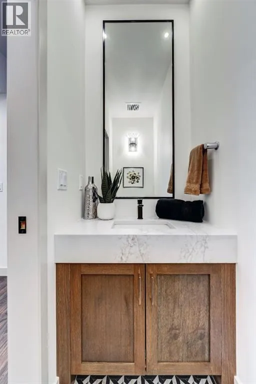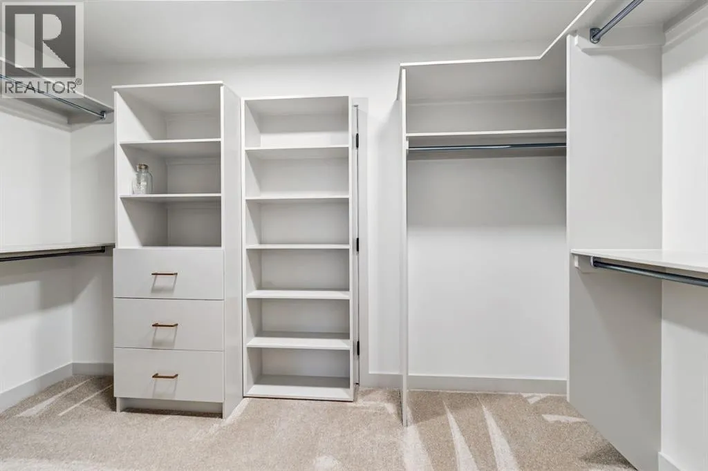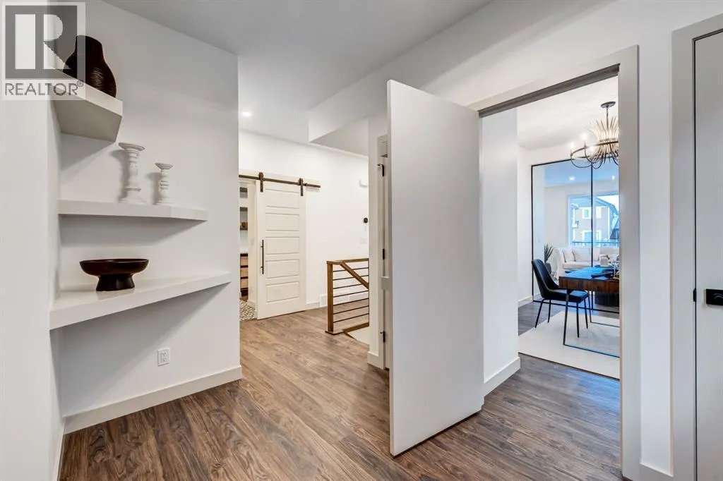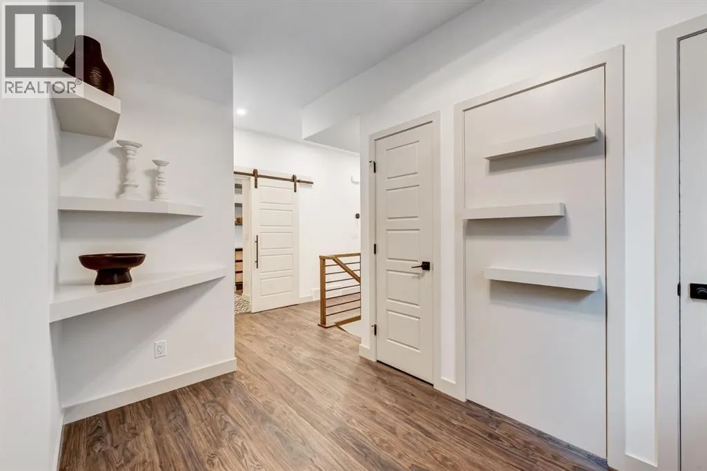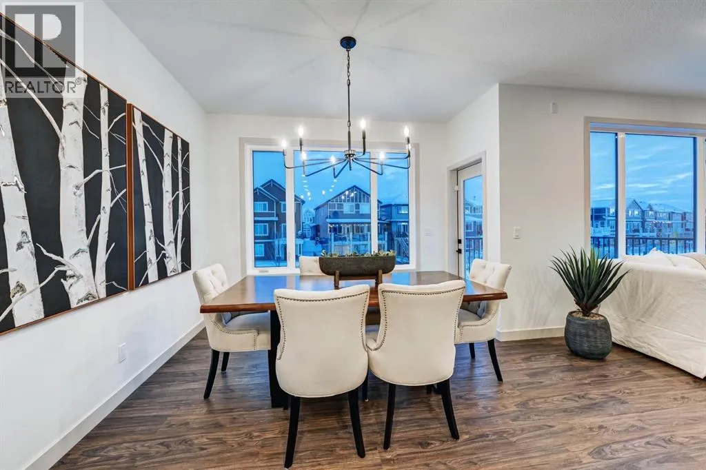 This spectacular walkout showhome by Castellano Custom Homes in the sought after Sunset Ridge community of Cochrane offers the perfect blend of modern luxury and family friendly living. Backing directly onto a peaceful green space with a playground just steps away, this never lived in beauty creates an ideal backyard setting for outdoor relaxation, playtime, and everyday enjoyment. All while providing quick access to walking paths, parks,  schools, shopping, dining, and seamless commutes to Calgary and the Rockies. Step inside this stunning two storey walkout home, and be greeted by an inviting foyer featuring elegant built in shelving, neutral tones, and luxury vinyl plank flooring that flows seamlessly throughout. The open concept main floor is designed for effortless entertaining and family life, highlighted by a gourmet kitchen with a massive island boasting waterfall edge quartz countertops, premium custom cabinetry, high end KitchenAid appliances (including gas range and spacious fridge), a deep farmhouse sink, and stylish arched transitions that frame the adjacent dining and living areas. The living space impresses with soaring ceilings, a custom fireplace with dramatic surround and mantel, chic modern chandelier, and large sliding doors opening to the backyard green space. Perfect for seamless indoor outdoor enjoyment and family gatherings. A versatile den/flex room, and practical mudroom add everyday convenience. Upstairs, retreat to a generous primary suite complete with a luxurious 5-piece ensuite (featuring a freestanding soaker tub, frameless glass shower, dual vanity, and herringbone tile accents), plus an expansive walk-in closet with fully customized white cabinetry, shelving, drawers, and organizers. Which cleverly opens to your own private hidden room tucked behind the shelves looking out onto a beautiful green space. The spacious bonus/family room is a real stunner with vaulted ceilings, tons of light flooding in from the windows and skylights, an d a striking geometric board and batten accent wall ideal for media nights, or relaxation. In addition there are 2 additional large sized bedrooms and laundry room conveniently located upstairs for ultimate family ease. This showhome at 128 Sunrise Heath is more than a display itâs inspiration for your dream home. Visit today to tour this exceptional Castellano Custom build, speak with the team about customizing your own residence in Sunset Ridge (including walkout options), and discover why families choose Castellano for quality, personalization, and lifelong value. (id:27476)