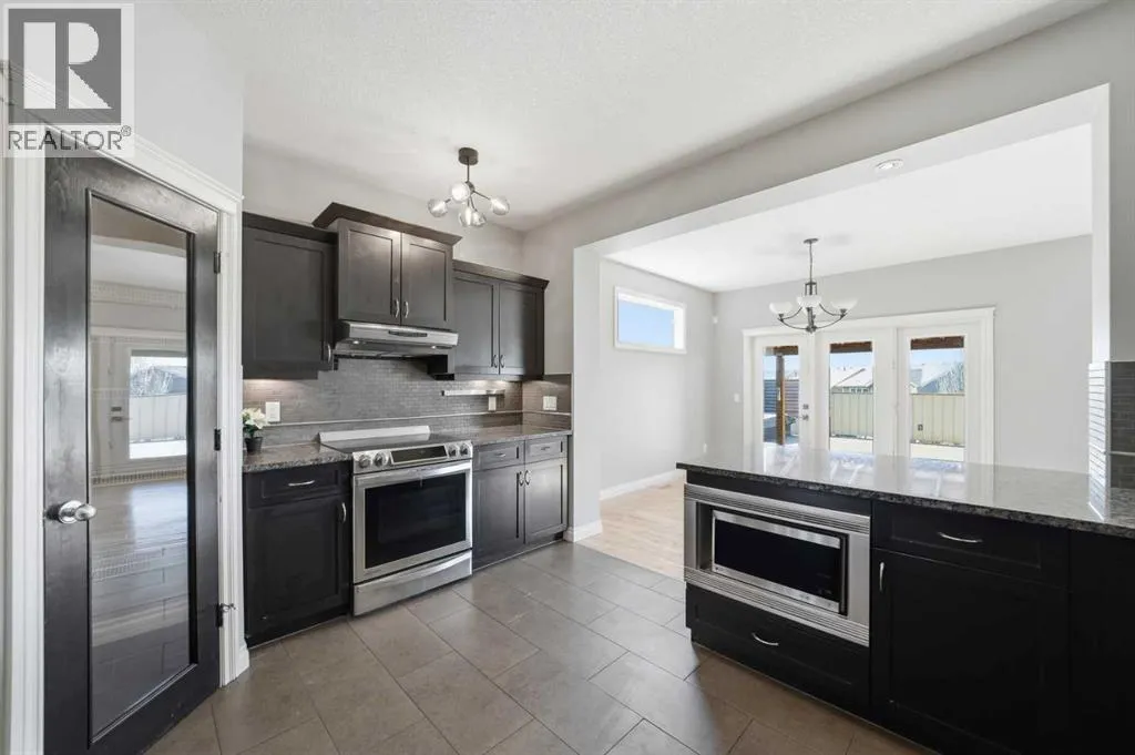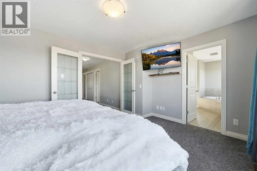 Welcome to 110 Heritage Place â a truly one-of-a-kind, custom-built Assured Home set on an expansive 8,600 sq. ft. lot in a quiet cul-de-sac. Enjoy breathtaking mountain views, a private yard, RV storage, and a massive heated oversized attached double garage.Thoughtfully updated with refreshed flooring and a newly painted basement, this home offers a clean, move-in ready feel while showcasing pride of ownership throughout. Step inside to a spacious ceramic tile foyer with convenient access to a 2-piece powder room and the impressive garage, complete with built-in cabinetry, workbenches, extensive storage, and lift-ready capability â ideal for car enthusiasts.Adding to the homeâs thoughtful design, a premium smart dog door activated by your dogâs collar is located near the garage entrance, leading to a covered ramp and fully fenced dog run â a rare and convenient feature for pet owners.The heart of the home features a chef-inspired kitchen with ample counter and cupboard space, a Whirlpool fridge/freezer combo, and a Samsung induction oven. The open dining area leads to a stunning 700 sq. ft. deck with a built-in hot tub and wiring for sound and heat, perfect for year-round entertaining. The inviting living room is anchored by a cozy gas fireplace.Upstairs, brand-new carpet leads to a bright hallway and a spacious primary retreat with French doors, a custom built-in king-size bed, integrated lighting, and incredible mountain views. The ensuite offers a corner soaker tub, granite countertops, and a double vanity. Two additional bedrooms share a Jack & Jill bathroom, along with a dedicated laundry room and a large bonus room filled with natural light.The walk-out basement provides excellent flexibility with its own living space, appliances, and laundry â ideal for extended family or guests. A secondary suite would be subject to approval and permitting by the City/Municipality.Outside, the expansive backyard offers room for gardening, outdoor living, and rar e on-site RV storage.With its unique design, recent updates, and versatile layout, this home is an exceptional opportunity for large or multigenerational families, or buyers seeking added flexibility and long-term value. (id:27476)