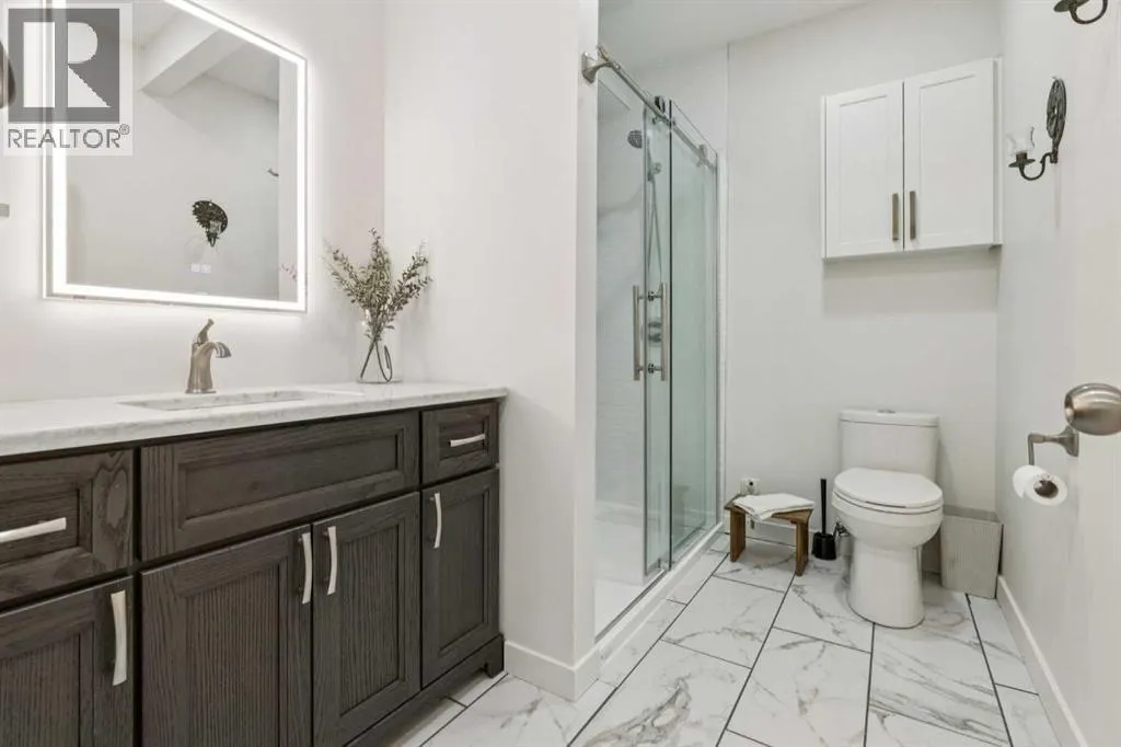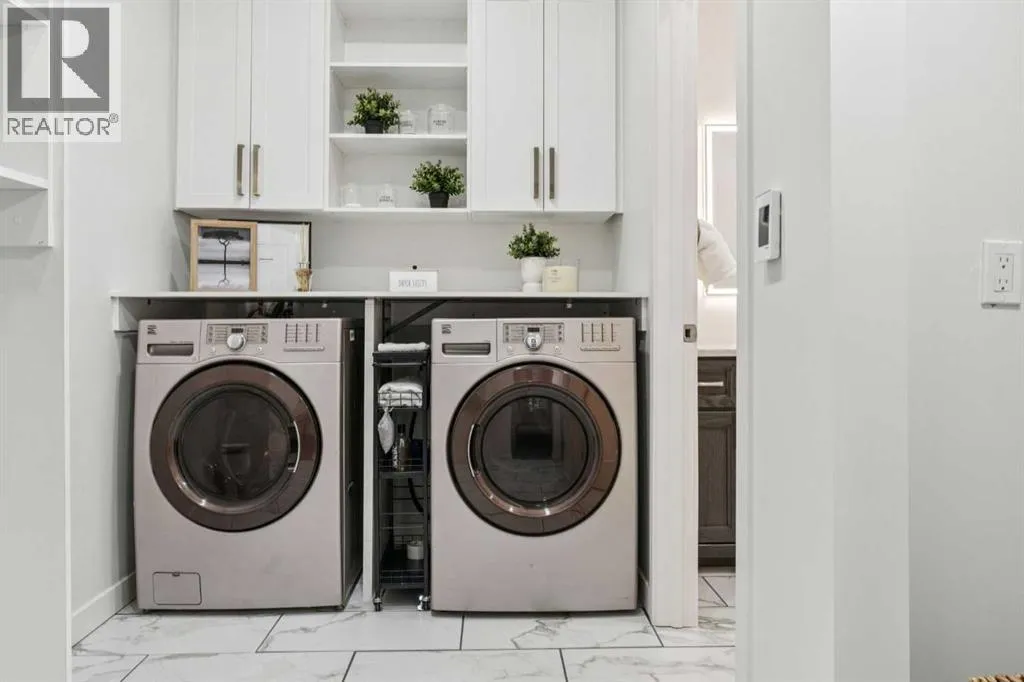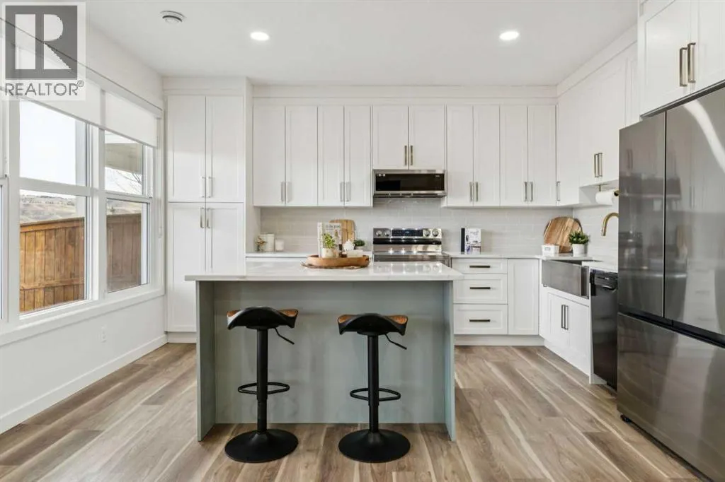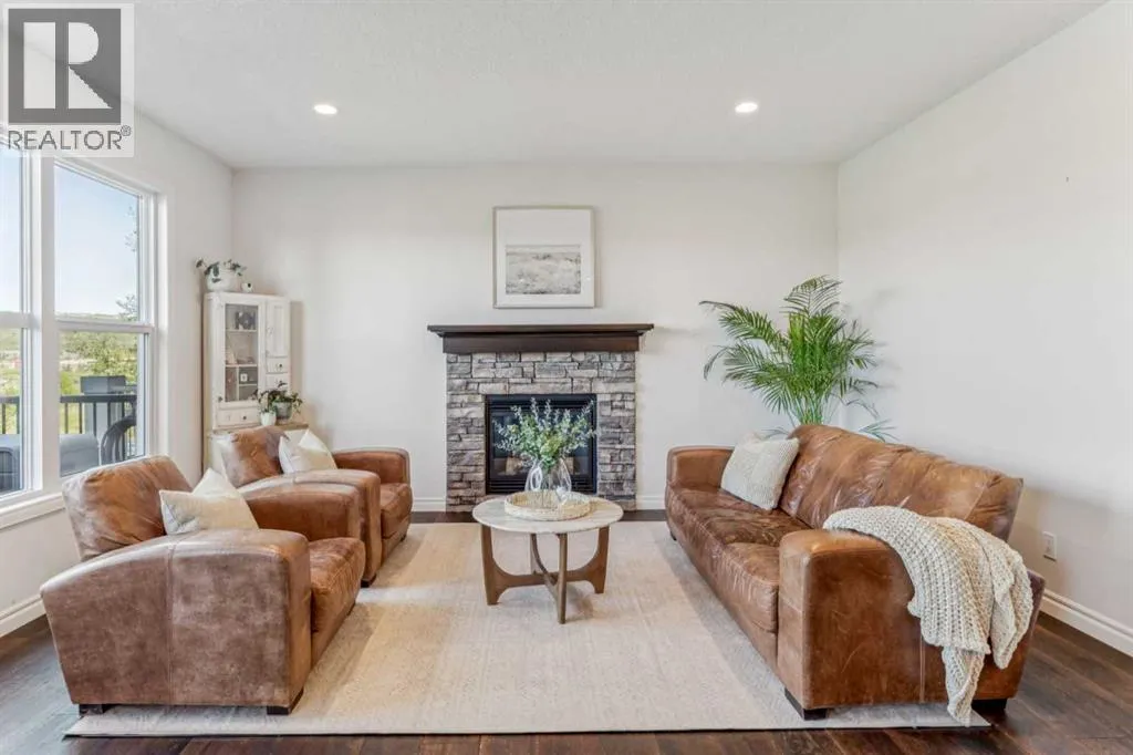 Welcome to your RIVERFRONT RETREAT in the prestigious COMMUNITY of RIVIERA. This former Trico SHOW HOME is perfectly positioned to capture UNOBSTRUCTED VIEWS of the Bow River, Rocky Mountains, and surrounding natural reserve, with NO NEIGHBORS BEHINDâoffering exceptional privacy and tranquility.From the curb, the EXTRA-WIDE CUSTOM PAVING STONE DRIVEWAY and elegant exterior create a striking first impression. Inside, the grand foyer features OPEN-TO-BELOW CEILINGS, 7.5â OIL-RUBBED HARDWOOD FLOORS, and FLOOR-TO-CEILING WINDOWS that flood the home with natural light while showcasing the breathtaking river valley views.The chef-inspired kitchen blends style and function with an OVERSIZED ISLAND, QUARTZ COUNTERTOPS, MAPLE CABINETRY with a BUILT-IN WINE RACK, stainless steel appliances, and a GAS COOKTOP. The open-concept living room, anchored by a STONE-SURROUND GAS FIREPLACE, is ideal for entertaining, while the FULL-WIDTH REAR DECK provides the perfect space to relax and enjoy the scenery.Upstairs, a central bonus room separates the secondary bedrooms from the private primary suite. The primary bedroom offers stunning views and a spa-inspired ENSUITE featuring a SOAKER TUB, GLASS and TILE SHOWER, DUAL VANITIES, and a WALK-THROUGH CLOSET with direct access to the laundry room.The FULLY FINISHED WALK-OUT BASEMENT expands your living space with RIVER VIEWS, a KITCHENETTE with ISLAND, 9â ceilings, full-height windows, GAS FIREPLACE, additional bedroom, full bathroom, and its own laundryâideal for extended family or guests.Additional features include quartz countertops throughout, custom drapery, upgraded carpeting, 8â main floor doors, built-in speakers, dual furnaces, two A/C units, and a double attached garage with 8â doors, high ceilings, LED lighting, and 220V wiring.Located in Riviera, youâll enjoy access to scenic walking paths, the Bow River, nearby golf, a local farmersâ market, and a pedestrian bridge to an off-leash dog park. This is a rare opportunit y to own a premium riverfront property in one of the areaâs most sought-after communities. (id:27476)