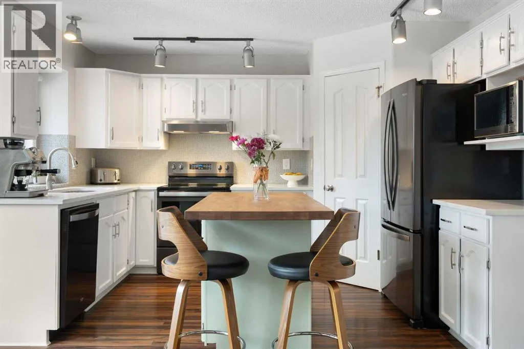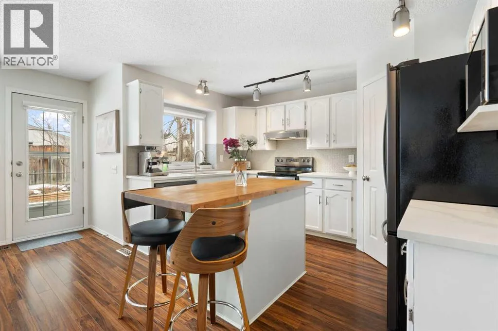 Welcome to West Terrace, one of Cochraneâs most sought-after neighbourhoods, where mature trees, quiet streets, and a strong sense of community create the kind of lifestyle people move here for and rarely leave. Just steps from the river pathway system, morning walks, bike rides, and evening strolls become part of your everyday rhythm. With schools and local restaurants within walking distance, this is truly family living at its best.From the moment you arrive, the home welcomes you with an oversized front entry, offering the space every busy family needs for coats, boots, backpacks, and everything in between. As you move into the main living area, you are greeted by a bright, open-concept layout filled with natural light. The living room, dining space, and kitchen flow seamlessly together, creating the perfect environment for both everyday living and entertaining.The kitchen has been beautifully updated with timeless white cabinetry, a modern quartz countertop, and a stunning sage-green island finished with butcher block that adds warmth and character. New appliances have been thoughtfully selected to complement the space, creating a cohesive and elevated feel throughout. Just off the kitchen, a generously sized mudroom with laundry adds everyday convenience and function.Upstairs, you will find three spacious bedrooms, ideal for growing families. The primary suite offers a private retreat with a walk-in closet and a well-appointed four-piece ensuite, while the additional bedrooms are bright, comfortable, and perfectly sized.The fully finished lower level extends your living space with a large family room anchored by a cozy fireplace, making it the perfect place for movie nights or quiet evenings in. A fourth bedroom and additional space for guests, a home office, or gym complete this level. Homes in West Terrace rarely come available, especially ones that offer this level of updates, space, and location. This is a unique opportunity to get into a truly es tablished, family-oriented community. (id:27476)
