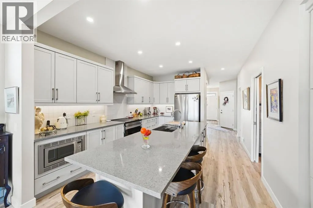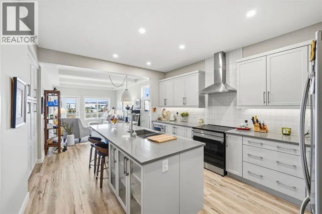 Welcome to 31 Riviera Court, a walkout home backing directly onto the Bow River with unobstructed upstream views, mountain backdrops, and unforgettable sunsets.Perfectly positioned on a quiet court in Riviera, this property delivers the kind of lifestyle buyers are searching for but rarely find. Step out your back door to the river pathways, take in the views from your balcony, and experience a level of privacy and natural beauty that sets this home apart from anything else in the area.Inside, the pride of ownership is immediately clear. This home has been meticulously maintained with no pets and high-end detailing throughout, creating a clean, elevated feel from the moment you walk in. The painted front door and custom built-ins in the front entry set the tone, blending style with thoughtful functionality.The main floor is bright, open, and designed to bring the outdoors in, with seamless flow between the kitchen, dining, and living areas, all positioned to capture natural light and those incredible views.Upstairs offers comfortable, well-sized bedrooms including a primary retreat designed for unwinding at the end of the day.Step outside and youâll understand what makes this home truly special. The fully landscaped backyard is intentionally designed with no grass for low-maintenance living, allowing you to spend more time enjoying the setting rather than maintaining it. The main level balcony is equipped with an electric awning, creating the perfect space to relax and take in the river, mountains, and sunsets in comfort.The walkout basement provides additional living space and future flexibility. For added convenience, there is also an additional laundry hookup on the main level, giving you the option to relocate the washer and dryer to suit your preference when you move in.The garage has been elevated with professionally upgraded flooring and custom built-in cabinetry, making it as functional as it is impressive.Located in one of Cochraneâs most de sirable communities, Riviera offers a unique blend of nature, pathways, and quick access to Calgary while maintaining that small-town feel.This is more than a home, itâs a rare opportunity to own one of the best-located properties in Riviera. (id:27476)
