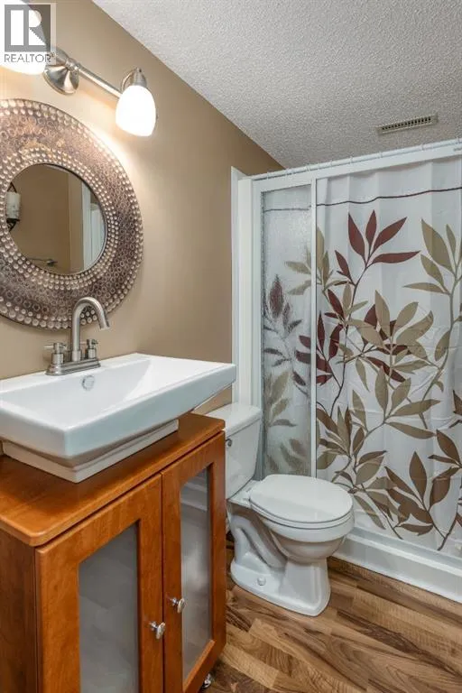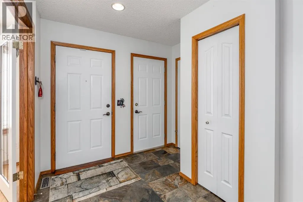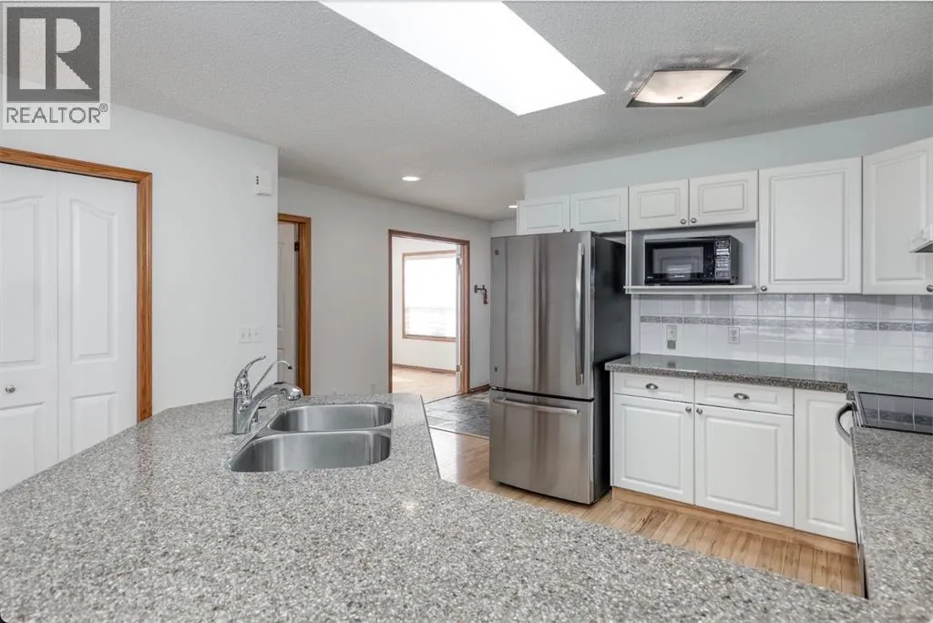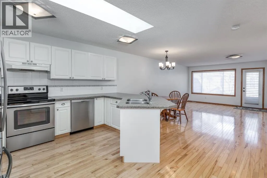 **OPEN HOUSE SATURDAY APRIL 4, 2026 ** 1:00 - 3:00pm** Welcome to this well-maintained bungalow duplex tucked away on a quiet cul-de-sac in desirable West Terrace. Offering 1,024 sq. ft. above grade and a fully developed interior, this home features hardwood, laminate, and slate flooring, a bright kitchen with skylight, granite countertops in the kitchen and main level bathrooms, and stainless steel appliances. The flexible layout includes 3 bedrooms plus a den (easily used as a fourth bedroom). Upgrades include a newer roof, furnace, hot water tank, central air conditioning, reverse osmosis system, and Hunter Douglas window coverings. All Poly-B plumbing has been replaced with PEX. Accessibility features include reinforced grab bars, an electric wheelchair lift at the front entrance, and the option to move laundry to the main level, with additional accessible equipment available. Enjoy the private, treed backyard in this quiet, established Cochrane neighbourhood close to parks, schools and pathways. (id:27476)