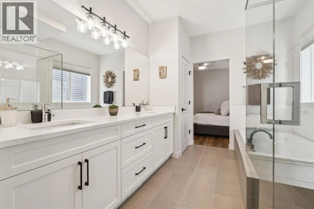 FULLY FINISHED BUNGALOW I IMMACULATE & BEAUTIFULLY MAINTAINEDBUILT IN 2024 I WHITE KITCHEN WITH FULL-HEIGHT CABINETRY I QUARTZ COUNTERTOPS I GAS FIREPLACE WITH MANTLE I LUXURY VINYL PLANK FLOORINGPRIMARY RETREAT WITH 5-PIECE ENSUITE I IN-FLOOR HEATING IN ENSUITEWALK-IN CLOSET WITH LAUNDRY (WASHER & DRYER) I FULLY DEVELOPED BASEMENT I HIGH CEILINGS IN BASEMENT I TWO ADDITIONAL BEDROOMS 200-AMP ELECTRICAL PANEL I HOT WATER ON DEMAND I FULL-WIDTH DECK WITH PRIVACY WALLS I HOT TUB & GAZEBO ON CONCRETE PAD I LOW-MAINTENANCE BACKYARD I LOCATED IN THE COMMUNITY OF FIRESIDEWelcome to this stunning, FULLY FINISHED BUNGALOW built in 2024, offering QUALITY UPGRADES and a modern, functional layout designed for effortless living.The main floor features LUXURY VINYL PLANK FLOORING, a spacious foyer, and a generous PRIMARY RETREAT with a 5-PIECE ENSUITE. This spa-inspired space includes IN-FLOOR HEATING, QUARTZ COUNTERTOPS, DOUBLE UNDER-MOUNT SINKS, a TILED WALK-IN SHOWER with bench and glass surround, and a relaxing SOAKER TUB. The WALK-IN CLOSET is thoughtfully designed with MDF shelving and includes a WASHER & DRYER for added everyday convenience.The OPEN-CONCEPT living area is perfect for entertaining, highlighted by a GAS FIREPLACE WITH MANTLE and a bright WHITE KITCHEN featuring QUARTZ COUNTERTOPS, FULL-HEIGHT CABINETRY, SOFT-CLOSE DOORS & DRAWERS, and PULL-OUT GARBAGE & RECYCLING.The FULLY DEVELOPED BASEMENT offers HIGH CEILINGS, plush carpet, TWO ADDITIONAL BEDROOMS, a LARGE STORAGE AREA, and a beautifully finished bathroom complete with QUARTZ COUNTERTOP, UNDER-MOUNT SINK, TILE FLOORING, and a TUB/SHOWER COMBINATION.Additional upgrades include a 200-AMP ELECTRICAL PANEL and HOT WATER ON DEMAND.Step outside to enjoy the UPGRADED BACKYARD, featuring a FULL-WIDTH DECK with PRIVACY WALLS, plus a PRIVATE HOT TUB and GAZEBO set on a CONCRETE PAD with PATIO STONESâperfect for relaxing or entertaining.Located in the desirable community of FIRESIDE, this home offers a PEACEFUL, LOW-MAINTENANCE LIFESTYLE ideal for COUPLES, DOWNSIZERS, and those seeking a more RELAXED PACE. With WALKABLE PATHWAYS, PARKS, nearby SHOPS & AMENITIES, and EASY ACCESS to major routes, Fireside blends comfort, convenience, and community. (id:27476)