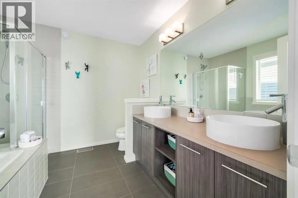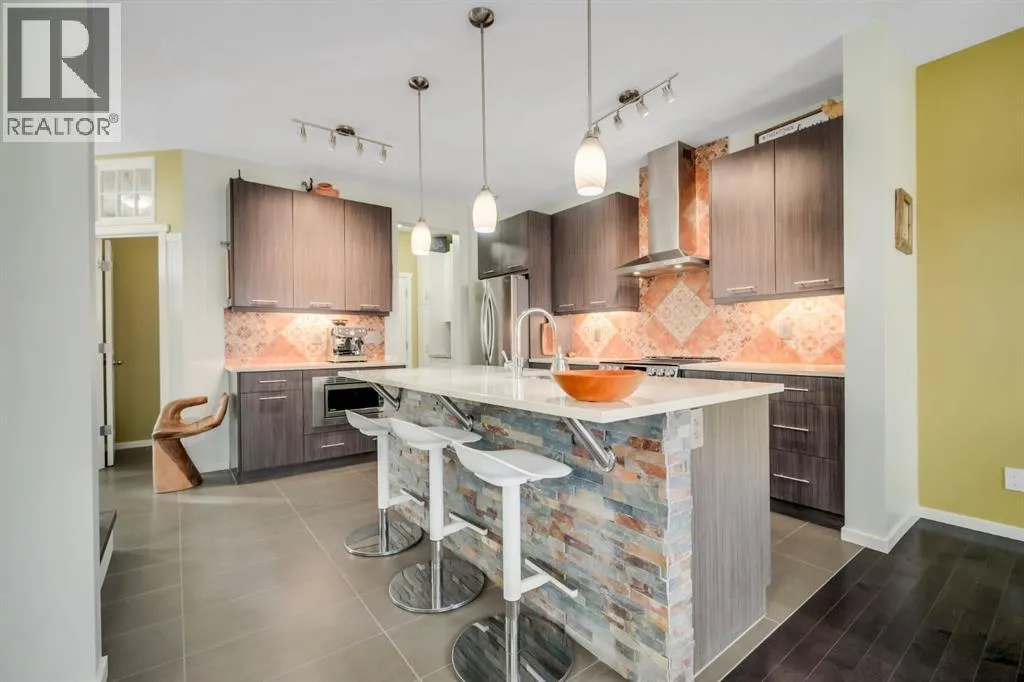 12 Sunrise View | Sunset Ridge, Cochrane Former show home. Corner lot. Wrap-around porch and perennial gardens. This isnât just a house â itâs a whole vibe. Welcome to the happiest home in Sunset Ridge. Set on a quiet street just two minutes from the subdivision exit, this cozy oasis is nestled amongst 12 mature trees with a view of the boulevard on three sides. Walkability to the THREE nearby parks, a pond, two schools, and amenities/professional services is highly desirable. Leave the car at home. Now letâs talk curb appealâ¦The southeast-facing wrap-around porch w/ slip-free composite surface is made for morning coffee in the sun. The rear courtyard hosts an extensive 30â x 20â patio that soaks up afternoon and evening light, while offering shade trees to a host of songbirds. The yard is fully fenced with steel fencing, gated arbours, a garden shed, and no grass to mow. Passive sub-irrigation to front and rear gardens using downspouts and weeping tile is smart & efficient. Low-maintenance, high-enjoyment living at its finest. Inside, this home is anything but cookie-cutter. Itâs colourful, joyful, and full of personality â thoughtfully upgraded with texture, custom lighting, custom blinds, forever floors, and built-in details that balance warmth with smart efficiency. The main floor welcomes you with tile and hardwood floors, and a spacious foyer that captures the spirit of the west, with a place for everything. The kitchen pops with Portuguese tile backsplash, quartz counters, stone-faced island, under-cabinet lighting, upgraded SS appliances, and clever pull-outs for garbage, recycling, and more, with easy access to meals on the patio. The living room features a stone-faced gas fireplace, custom live-edge floating shelves, and a retractable TV support. Upstairs, floors are engineered hardwood and tile. The primary bedroom offers mountain and boulevard views, built-in mirrored closets (no dressers), and a 4-piece ensuite with soaker tub, separate shower, twin ves sel sinks, and waterfall faucets. There are two more bright bedrooms off of a hallway alcove with custom closet built-ins. The second-floor also features a full bath, convenient laundry room, and a bonus room/office space overlooking the patio. The finished basement features a fourth bedroom (or rec rm/hobby rm), a 3-piece bath, a rec/yoga space, and your own Cupboard Under-the-Stairs storage nook with a little Harry Potter charm. The fully finished attached double garage (17â x 21â) was the original showhome office and is polished to match â plus you have a custom paver walkway, central vac, A/C, HRV system, 92% high-efficiency furnace, 75-gallon Marathon hot water tank, and a full Eufy security camera system already installed. This home was designed to stand out â and it still does. If youâre looking for something with personality, outdoor living that actually feels usable, and a location that makes everyday life easy⦠12 Sunrise View might just be your perfect match. Come experience the energy. (id:27476)