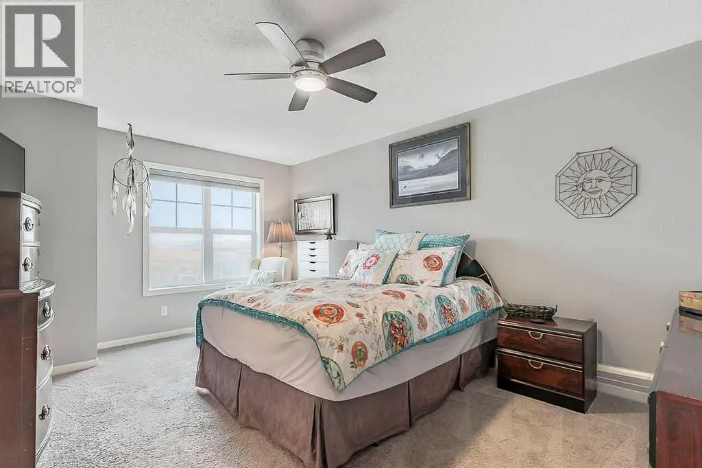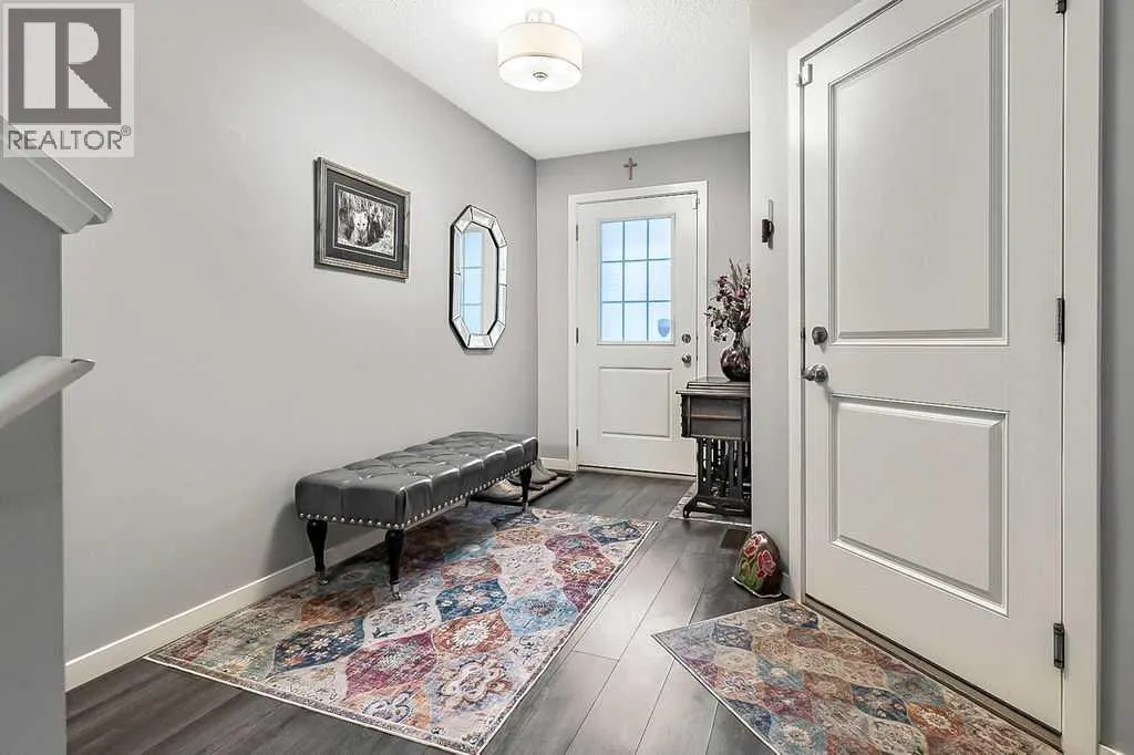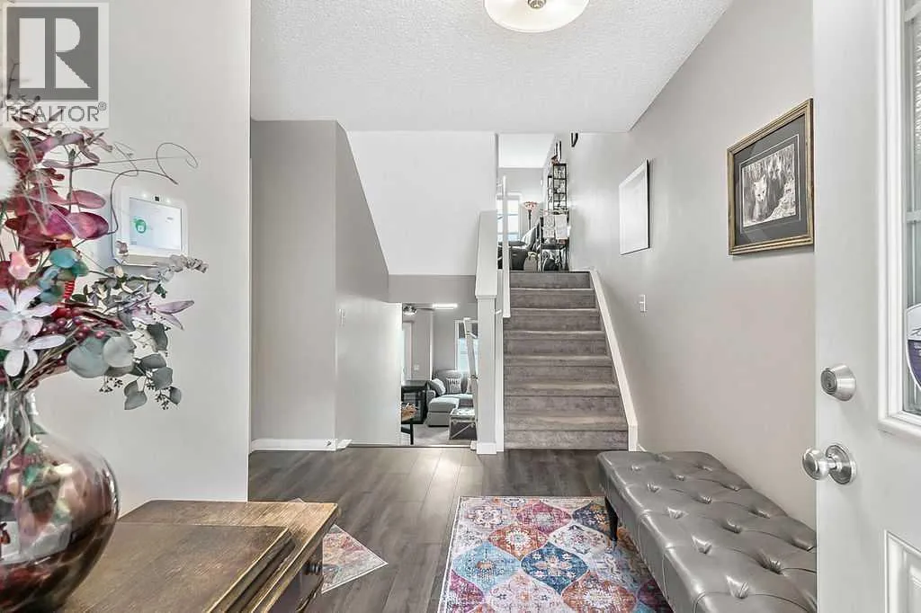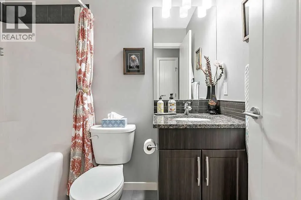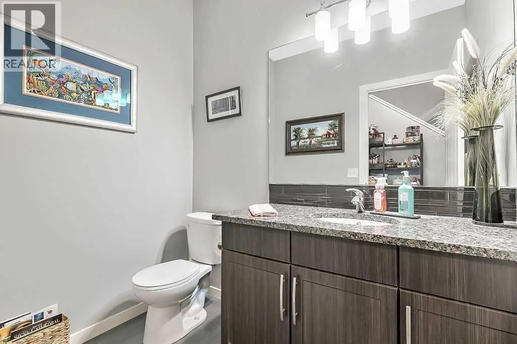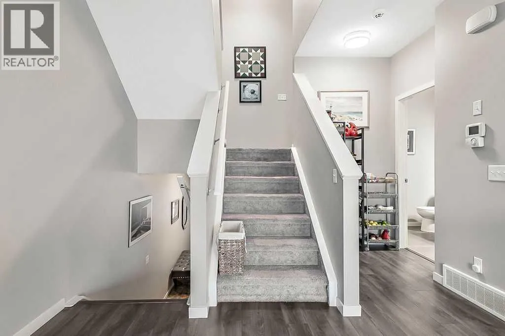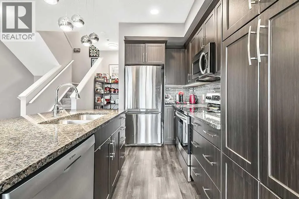 Welcome to this meticulously maintained 3-bedroom, 4-bathroom three-level split townhome; offering over 1,800sqft of beautifully developed living space in the desirable community of Sunset Ridge. Step inside to an open-concept main floor featuring 9â ceilings and rich plank flooring throughout. The gourmet kitchen is sure to impress with stainless steel appliances, granite countertops, tiled backsplash, custom cabinetry and a large central island that seamlessly overlooks the spacious living room â perfect for both everyday living and entertaining. A separate dining area provides access to the west-facing balcony, where you can unwind while taking in stunning mountain views. A convenient 2-piece powder room completes this level. The second level offers two generously sized bedrooms and a well-appointed 4-piece bathroom; ideal for family or guests. Retreat to the entire third level dedicated to the oversized primary suite, featuring breathtaking west-facing mountain views, a large walk-in closet, additional storage and a private 3-piece ensuite with an oversized walk-in shower. The conveniently located laundry area with custom cabinetry adds to the functionality of this upper level. The fully finished walk-out basement expands your living space with a large family room, 2-piece bathroom, and ample storageâperfect for a media room, home office, or guest space. Additional features include a single attached garage with epoxy flooring and custom storage, alarm system, blackout blinds and updated lighting throughout. Ideally located close to schools, parks, shopping, and with easy access to main roadways, this home offers the perfect blend of comfort, style, convenience and lifestyle. (id:27476)