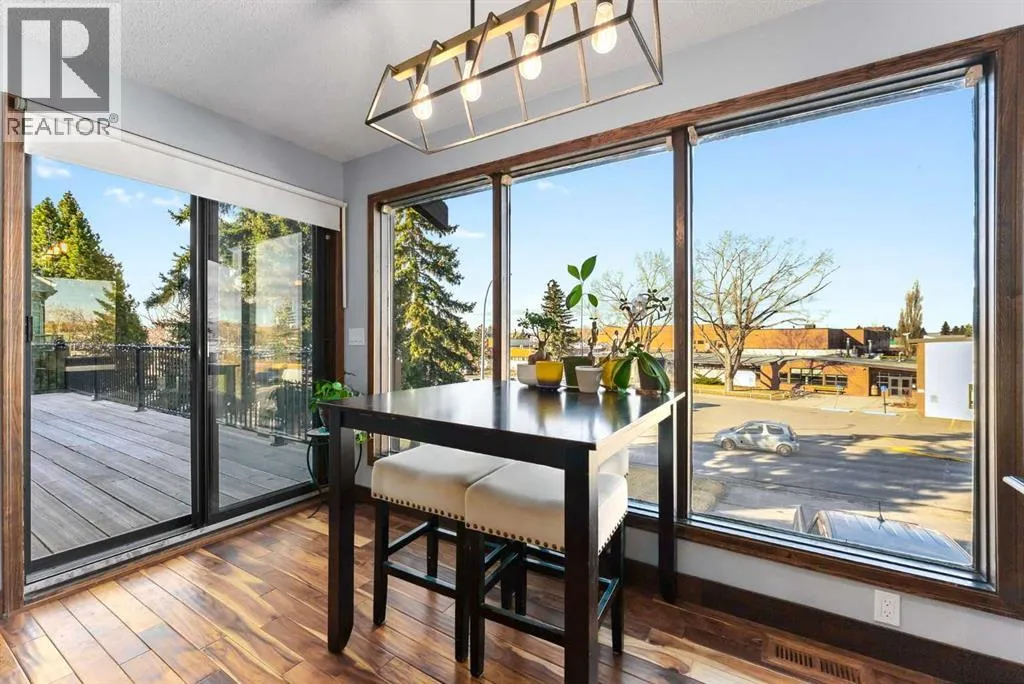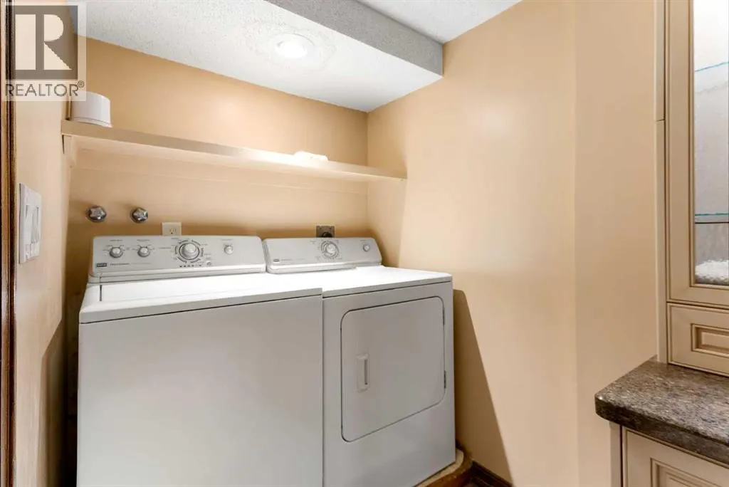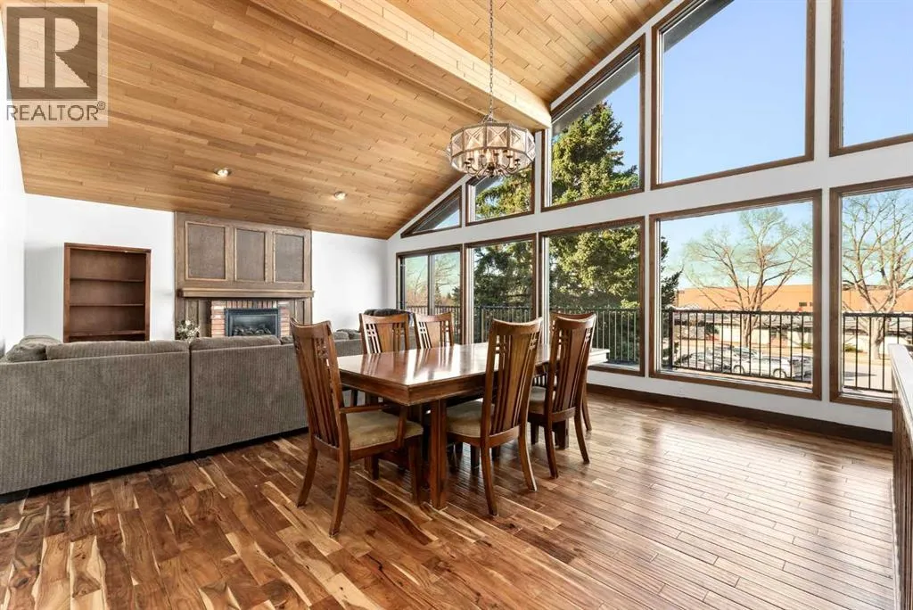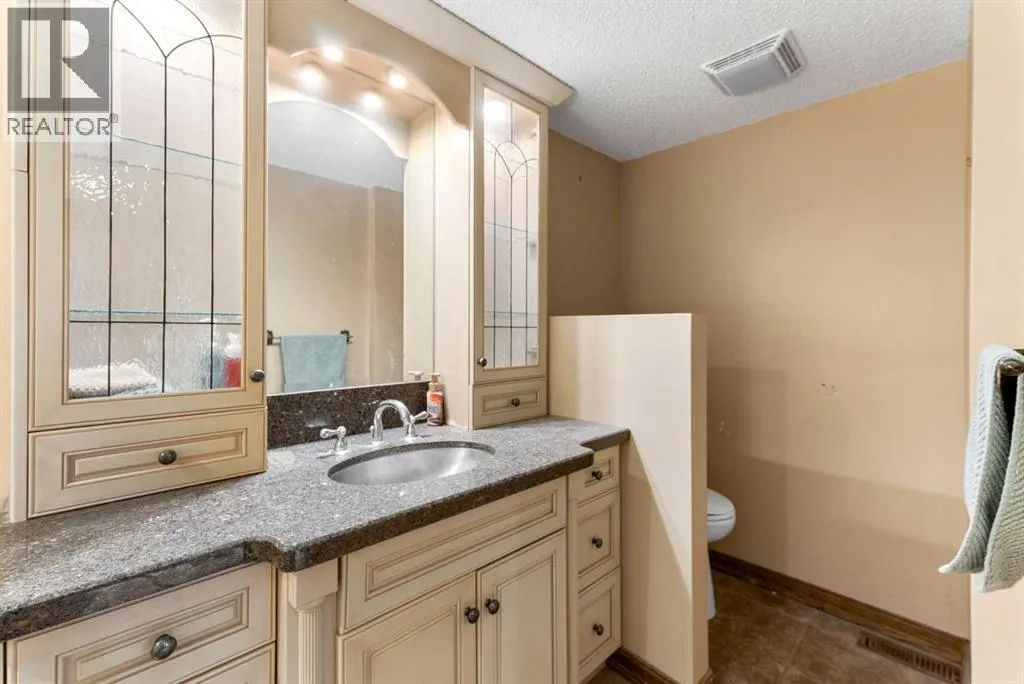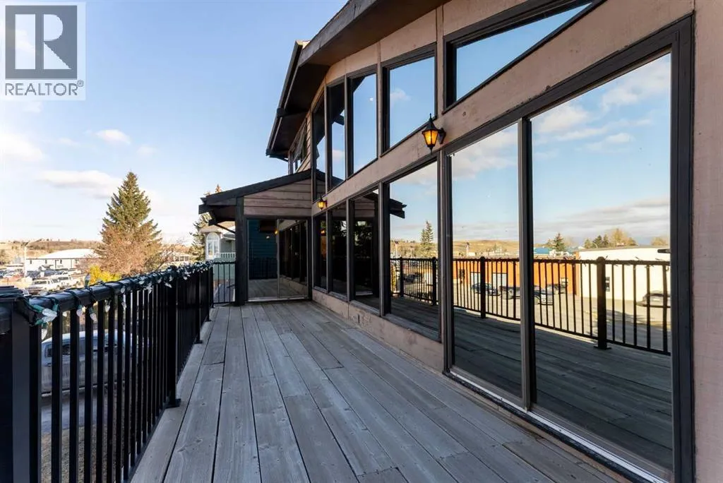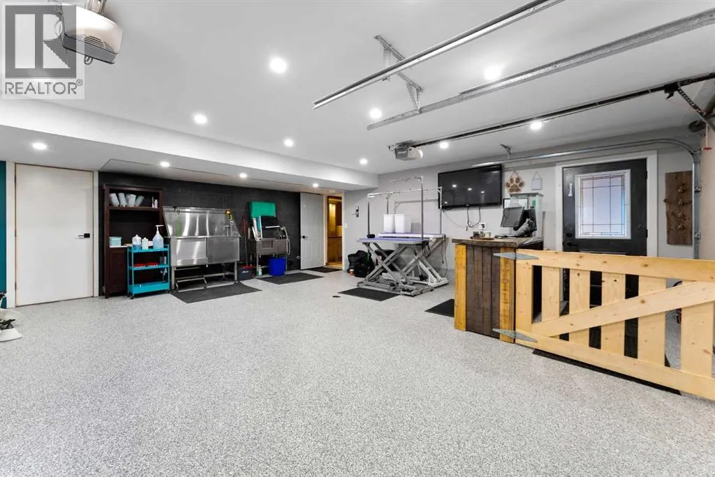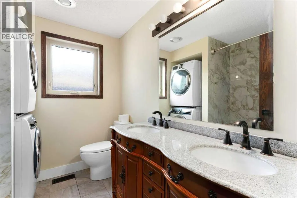 Set on a spacious 0.40-acre lot directly across from Cochraneâs tri-school site and indoor arena. This home is perfectly positioned for families; kids can walk to everything. Unique 1.5-storey reverse walkout offers 3 bedrooms and 2.5 bathrooms, combining comfort with a distinctive layout. The main entry welcomes you with a large, bright family room showcasing new luxury vinyl plank flooring and a cozy gas insert brick fireplace. Additional features include rough-in plumbing for a future wet bar, a convenient half bath with laundry, and direct access to the oversized 23' x 23' double attached heated garage, complete with durable epoxy floors. Upstairs, the main level showcases a spacious living and dining area with vaulted wood ceilings, a second gas fireplace, and a wall of tinted front windows plus sliding doors leading to the newly refurbished, wrap-around deck. Perfect for relaxing, entertaining, and taking in the surrounding mountain views. The kitchen is well-appointed with stainless steel appliances, granite countertops, under-mount lighting, an island, and a cozy breakfast nook with access to the deck, complete with gas line for BBQ. This level also includes two generously sized bedrooms, one featuring a Murphy bed, and a 5-piece bathroom with washer and dryer. A rear exit leads to a beautifully landscaped yard complete with patio, gazebo, and two storage sheds. The upper loft overlooks the main living space and is ideal for a home office, gym, or reading area. Adjacent is the primary suite, offering a walk-in closet, 4-piece ensuite, and lovely front and rear views of the property. Additional highlights include fresh paint and carpet, paved driveway with space for four vehicles, mature trees, and well-maintained landscaping. If you're looking for a home with character, space, and an unbeatable location, this is it. Quick possession available. (id:27476)