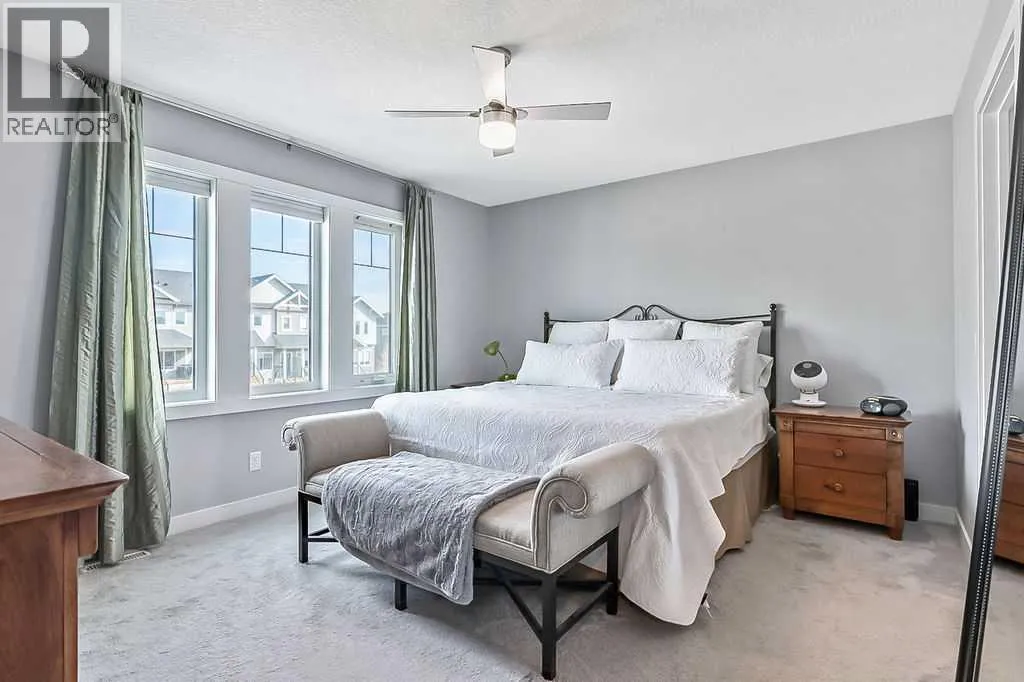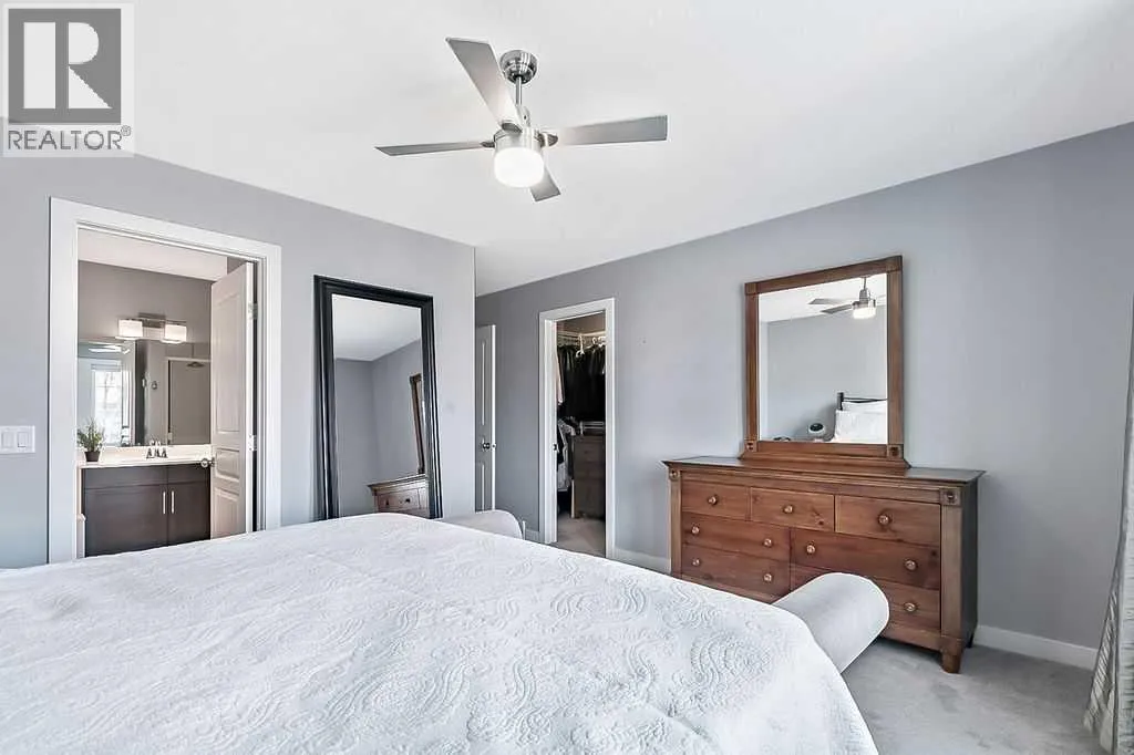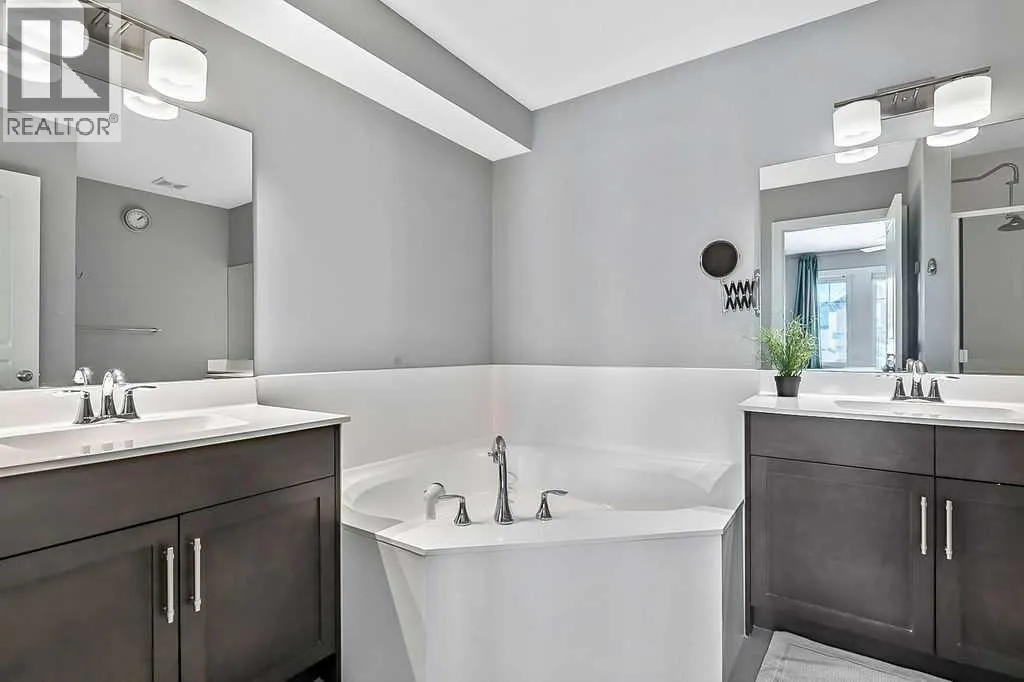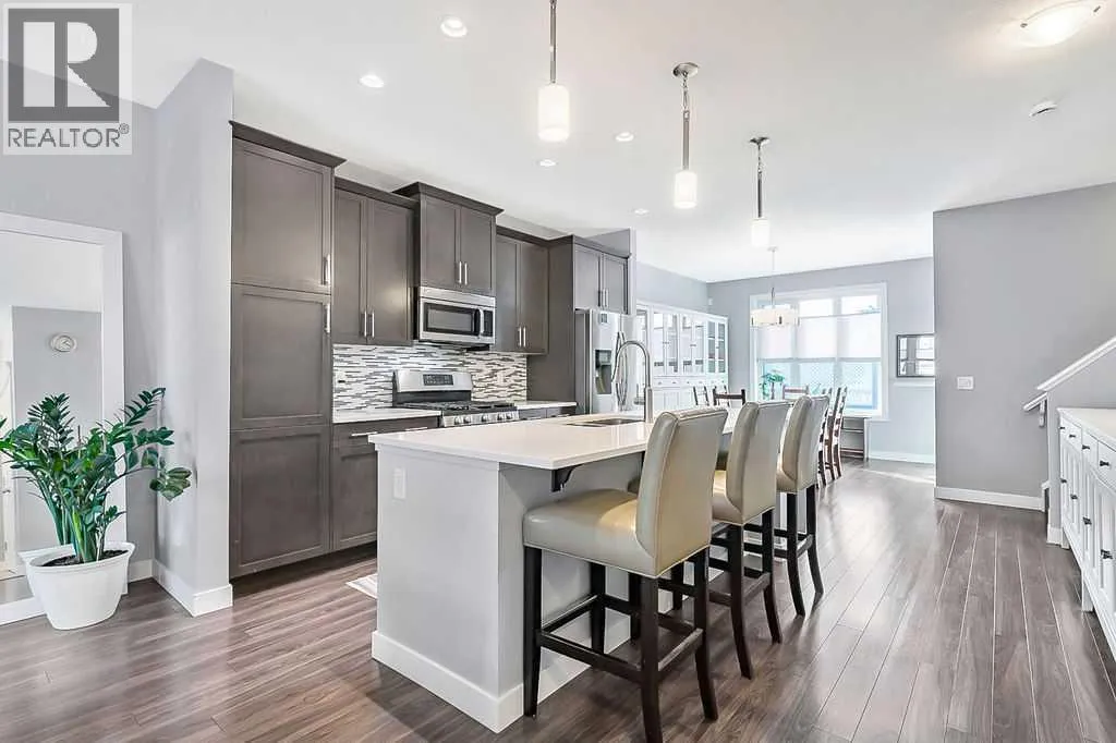 Welcome to this gorgeous semi-detached two storey home in the highly desirable, FAMILY FRIENDLY RIVER HEIGHTS neighbourhood of Cochrane. Thoughtfully designed with a stunning wide open floor plan, this home is filled with natural light and modern finishes throughout. The central kitchen, featuring an extra long island, quartz countertops, quality appliances including a gas stove, ample cabinetry and a spacious dining area - perfect for both everyday living and entertaining. The inviting living room showcases a stylish freestanding electric fireplace and large windows that enhance the open feel of the main floor. Upstairs has a generous king sized primary retreat with an oversized walk-in closet and a luxurious ensuite with dual vanities and a corner soaker tub. Two additional well sized bedrooms and convenient upper floor laundry complete the upper level. Additional highlights include luxury vinyl plank flooring, ceramic tile, central air conditioning and a spacious back deck overlooking a SUN FILLED SOUTH FACING FULLY FENCED YARD⦠ideal for families, pets and outdoor enjoyment. This is the perfect blend of comfort, style and location with quick easy access to downtown Cochrane, schools, shopping, dining and recreational activities. (id:27476)