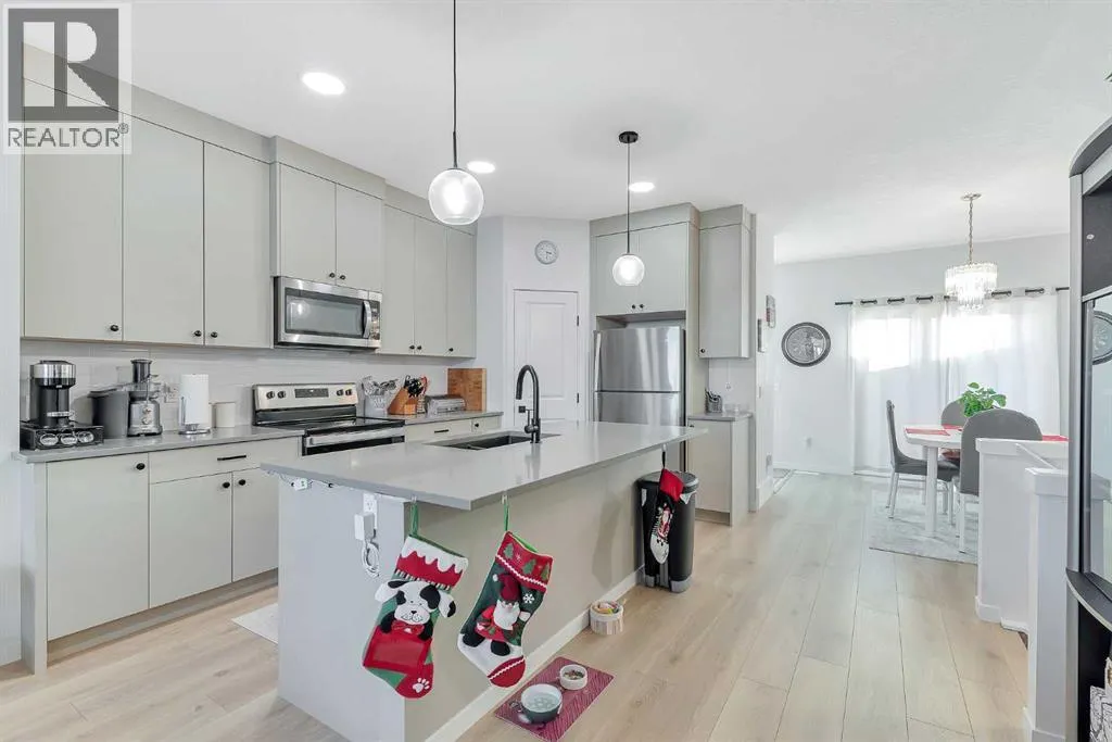 Welcome to the community of Fireside, where luxury and comfort meet in this stunning semi-detached home. Step inside this beautiful property boasting over 1700 sq ft of professionally developed living space, featuring 4 bedrooms, 3.5 bathrooms, and an oversized double detached garage. As you enter, the main floor welcomes you with beautiful vinyl flooring and an abundance of natural light streaming in through the large windows, illuminating the spacious living room, kitchen, and dining area. The contemporary kitchen is equipped with stainless steel appliances, quartz countertops, modern cabinetry, a kitchen island, and a separate pantry. Ascend upstairs to find three well-proportioned bedrooms, including the primary bedroom, which is complete with a 4-piece ensuite and a large walk-in closet. Completing the upper level is a 4-piece bath and laundry unit, providing convenience for all occupants. The basement is fully finished with an additional bedroom, recreational/family room, and a 4-pc bath. Outside, the private backyard is perfect for entertaining with a spacious deck ideal for barbecuing and soaking up the summer sun. Located in an exceptional location, this property offers easy access to schools, parks, playgrounds, restaurants, and shopping, providing the perfect balance between work and play. This exceptional family home is waiting for you! Don't miss out on the chance to make this beautiful property your own and book your private viewing today! (id:27476)