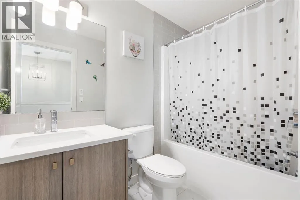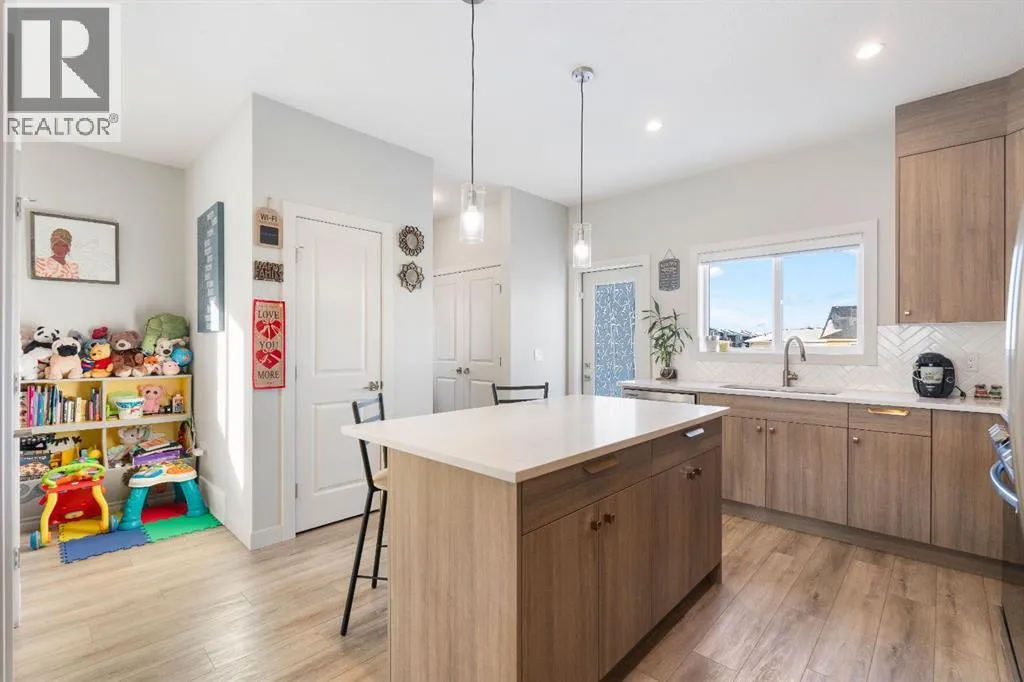Welcome to this stunning, sun-filled, and thoughtfully designed fully finished semi-detached home, complete with a walkout illegal basement suite currently rented for $1,300/month plus 40% utilities, located in one of Cochraneâs most sought-after communitiesâRivercrest. Framed by breathtaking mountain views and just steps from Bow Valley School, this home offers an exceptional setting for families and investors alike.Boasting over 2,100 sq. ft. of well-planned living space, this home delivers a complete package featuring 4 bedrooms, 3.5 bathrooms, a main-floor den, an open-concept layout, an upgraded kitchen, a walkout basement, and an oversized double garage (22'3" x 24').As you step inside, you are immediately welcomed by a bright and inviting living area, enhanced by large windows and automated blinds for added comfort and convenience. The dining space flows effortlessly into the impressive chef-inspired kitchen, showcasing quartz countertops, premium appliances, full-height cabinetry, elegant gold hardware, and a matching gold faucet. A spacious centre island doubles as the perfect breakfast bar. Tucked away on the main floor is a private denâideal for a home office or study.Step outside onto the upper deck, the perfect place to enjoy your morning coffee while taking in the scenic surroundings. A side staircase leads down to the backyard, offering additional outdoor space for entertaining or relaxation.Upstairs, youâll find a charming tech or kidsâ play nook, followed by three generously sized bedrooms, many with beautiful valley views. The primary suite features a well-appointed ensuite with dual vanities, a walk-in closet, and a glass-enclosed standing shower. A full shared bathroom and stacked laundry complete this level.The fully finished walkout basement is a standout feature, offering a bright and spacious living area with large windows, a complete kitchen with quartz countertops and stainless steel appliances, a modern upgraded bathroom, and a sunny, well-sized bedroom. A separate laundry set adds further functionality and appeal.Ideally located with quick access to Calgary (20 minutes), Downtown Calgary (30 minutes), and Canmore (1 hour), this home offers the perfect balance of scenic living and everyday convenience.With strong rental potential estimated at $3,800â$4,200 per month, this property presents an outstanding opportunity for homeowners and investors alike. Donât miss your chance to make Cochrane home. (id:27476)