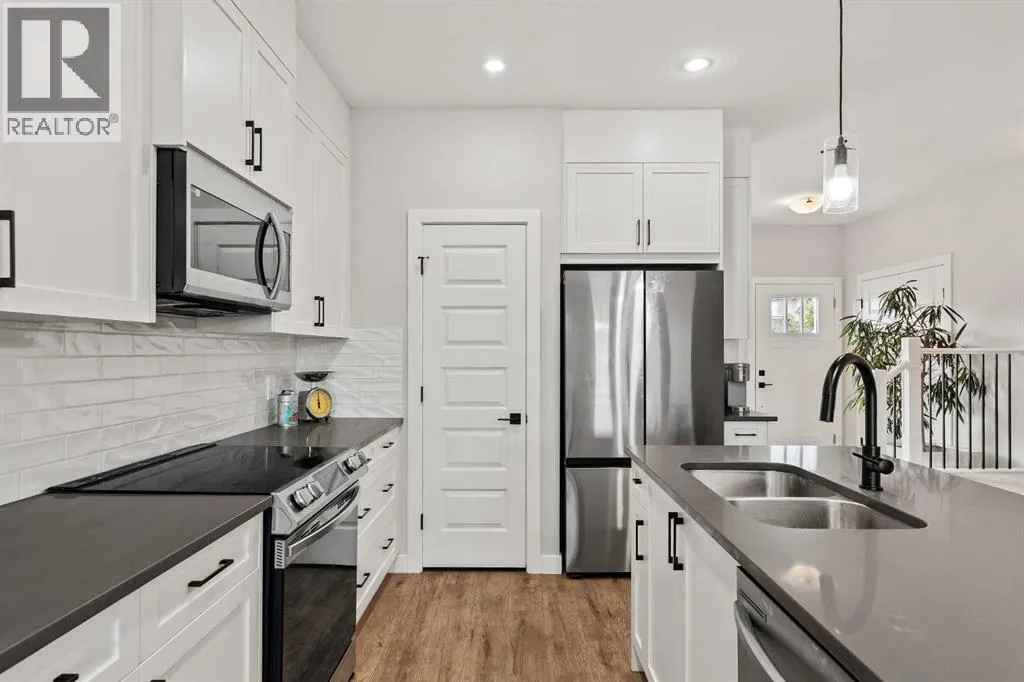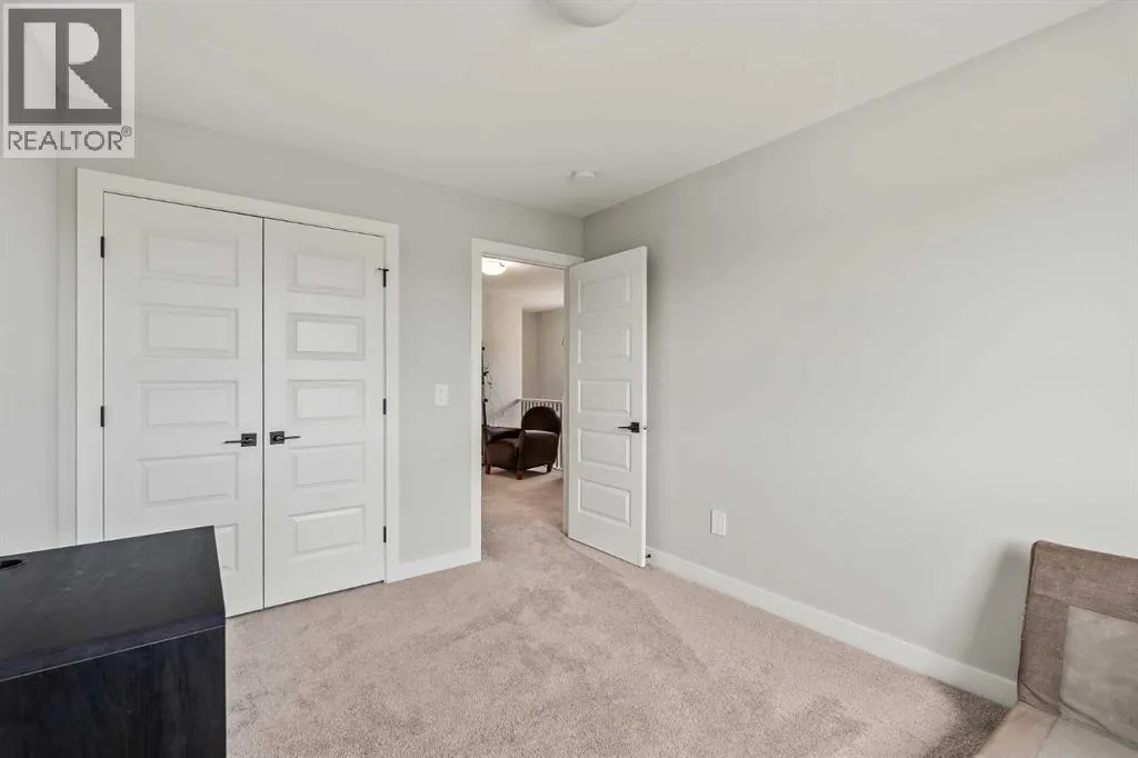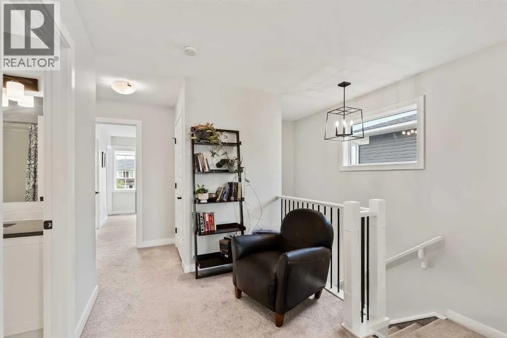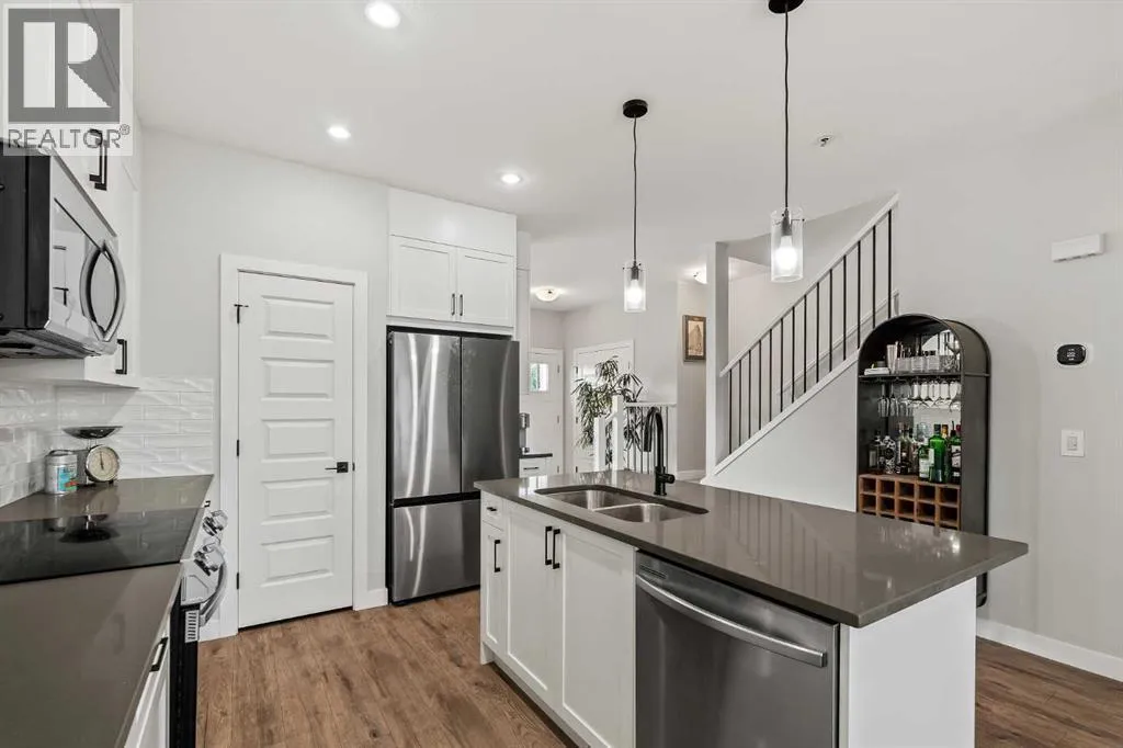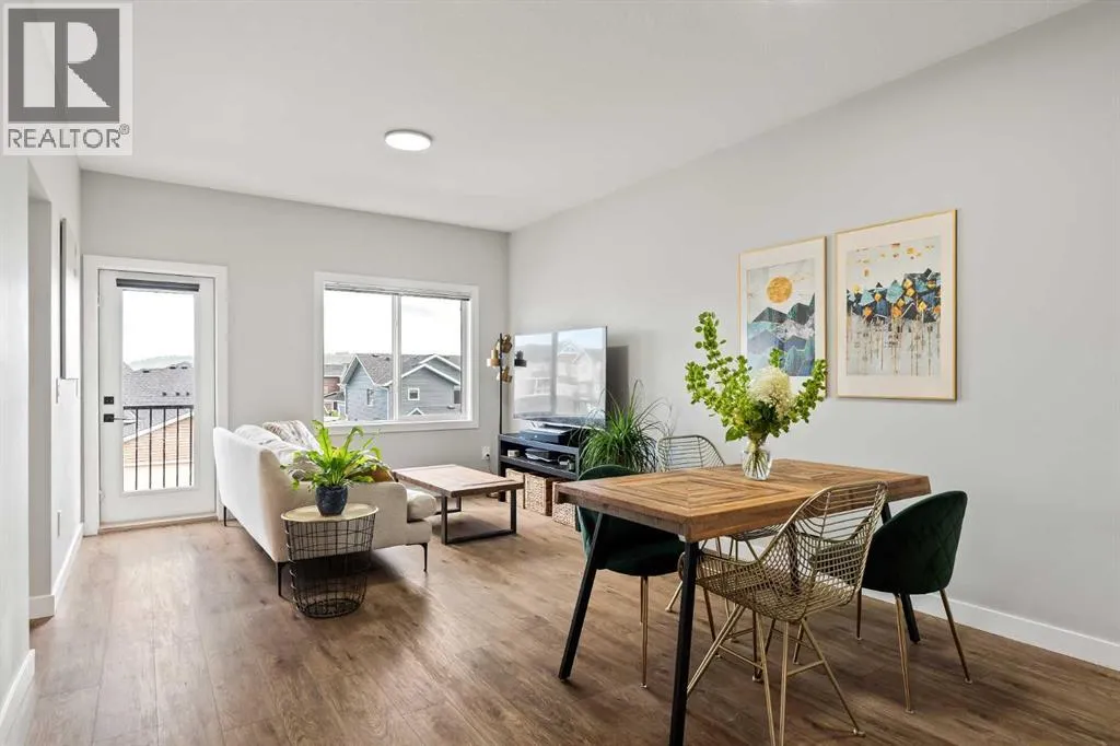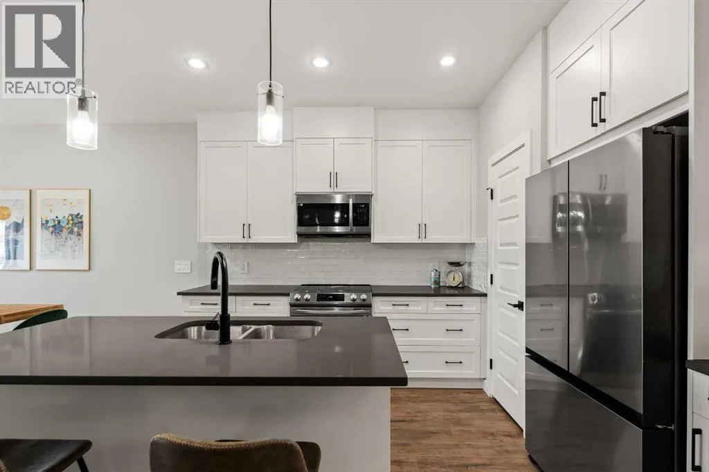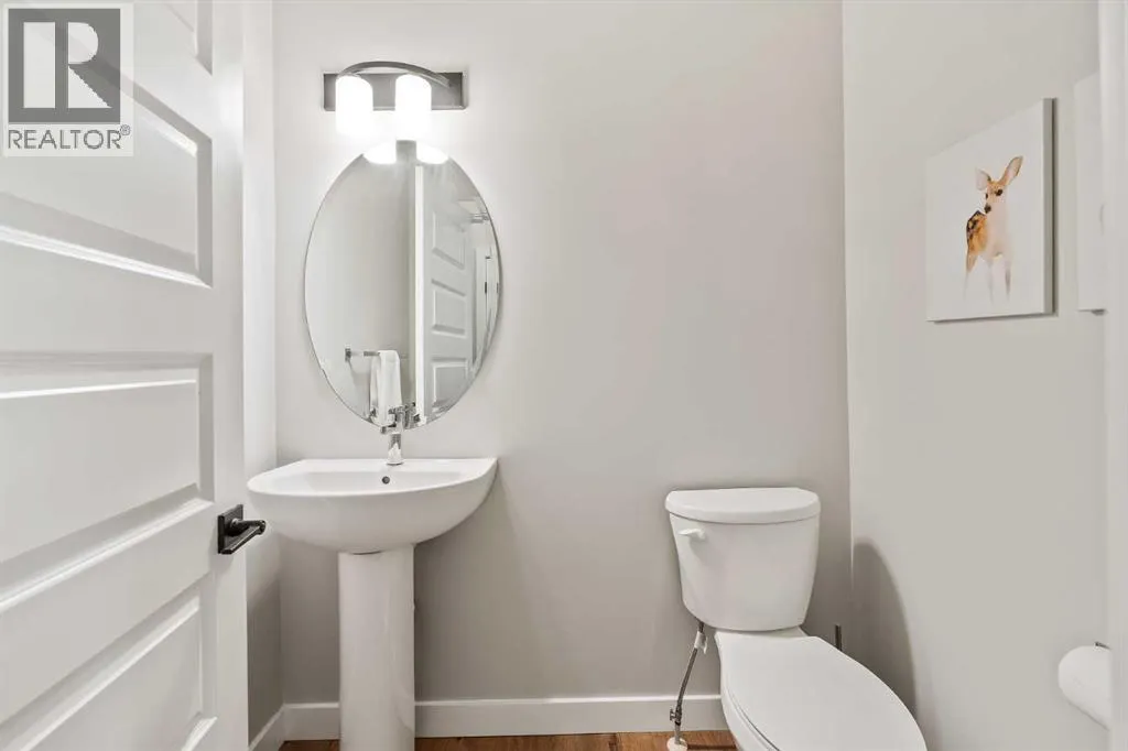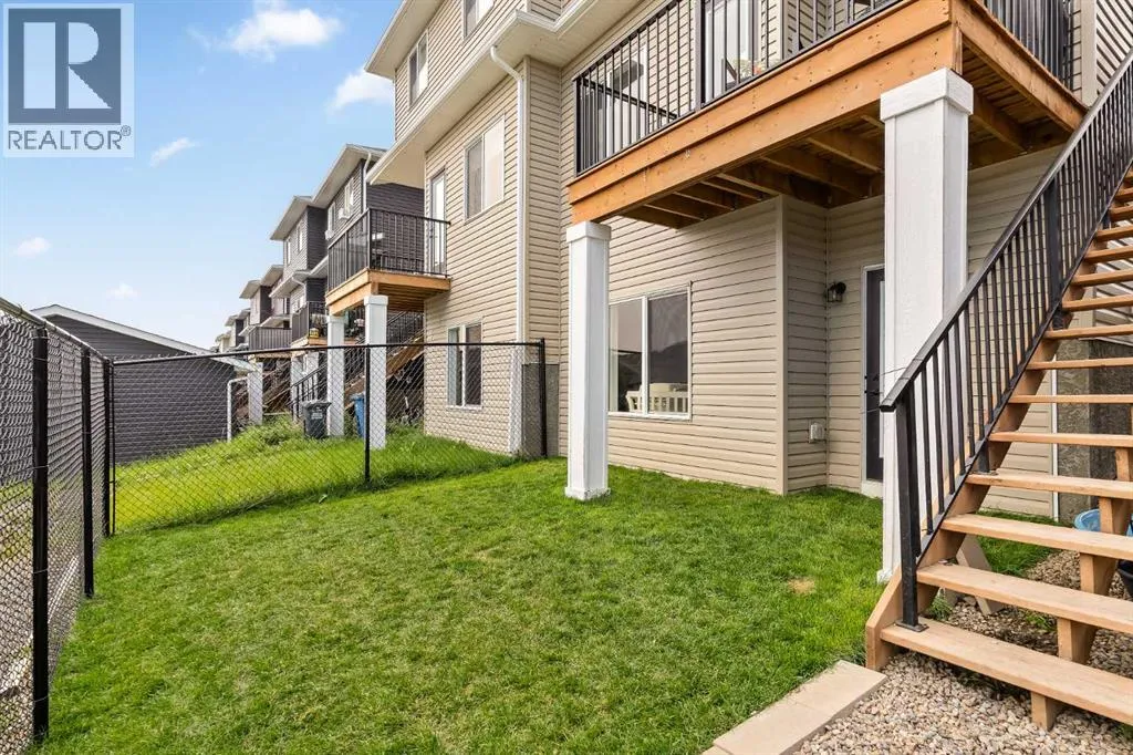 Built in 2022, this contemporary like-new home in River Heights combines stylish design with family-friendly functionality. A sunny south-facing front patio welcomes you with space to enjoy morning coffee or keep an eye on the kids while they play. Inside, 9â ceilings create an airy atmosphere while durable finishes stand up to everyday life. A bright flex room at the front of the home provides a comfortable space for work, study or a playroom. Flowing through the main level, the open plan layout balances togetherness with defined spaces. The inviting living room offers a relaxed setting that extends easily to the rear deck, ideal for summer barbecues or unwinding outdoors. Anchoring the design, the dining area keeps family meals and gatherings connected, while the modern kitchen blends function and style with quartz countertops, stainless steel appliances, timeless subway backsplash and a central island with seating for casual bites. A pantry ensures everything is within easy reach and a powder room enhances convenience. Upstairs, the hallway landing is generous enough for a cozy reading nook or homework station. The spacious primary retreat features a walk-in closet and a sleek ensuite with dual sinks and an oversized shower for a touch of everyday luxury. Two additional bedrooms share a well-appointed four-piece bathroom and the upper laundry room saves time and steps on busy family mornings. The walkout basement is ready for future development, already offering direct access to the fenced backyard where kids and pets can play safely on the grassy lawn. A rear deck with stairs down provides a seamless indoor-outdoor connection and a parking pad accommodates two vehicles. Living in River Heights means being minutes from schools, playgrounds and shopping, while Cochraneâs trail network and outdoor spaces are always close at hand. This home delivers the style you want with the practicality your family needs. (id:27476)
