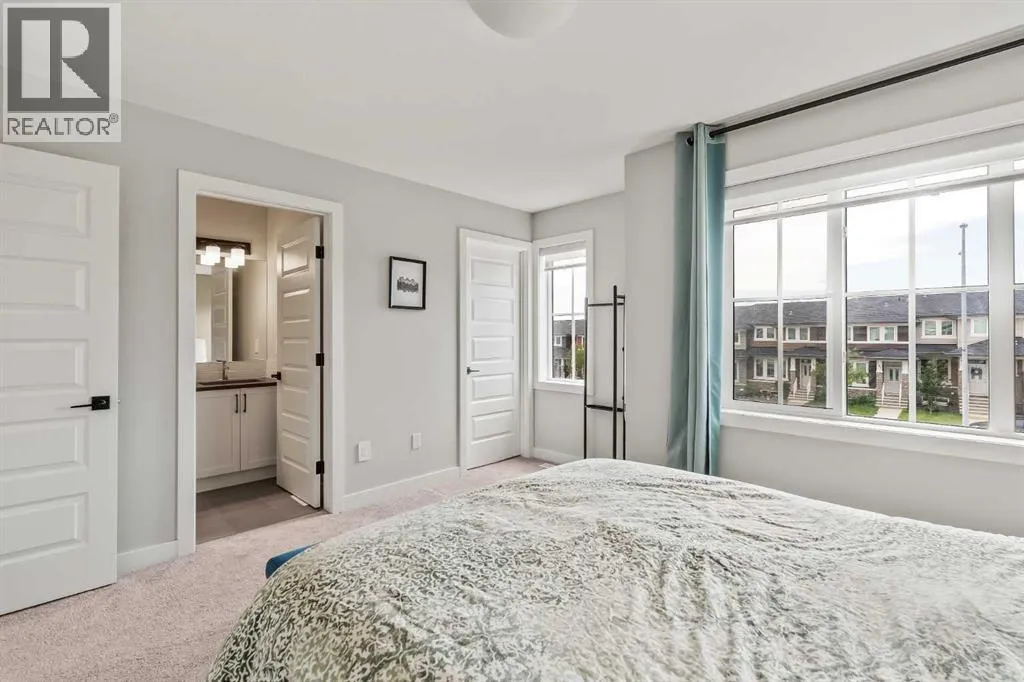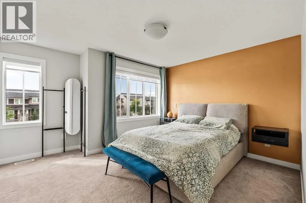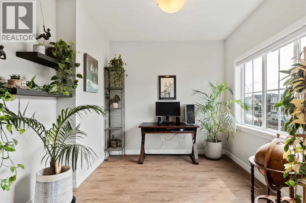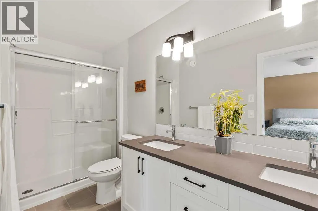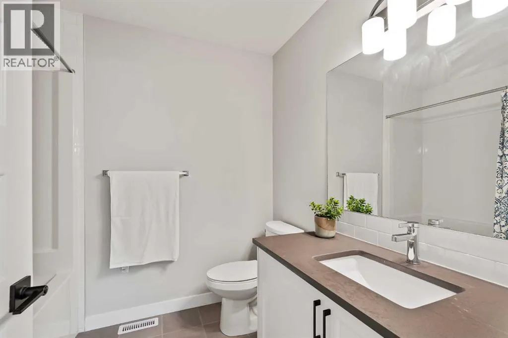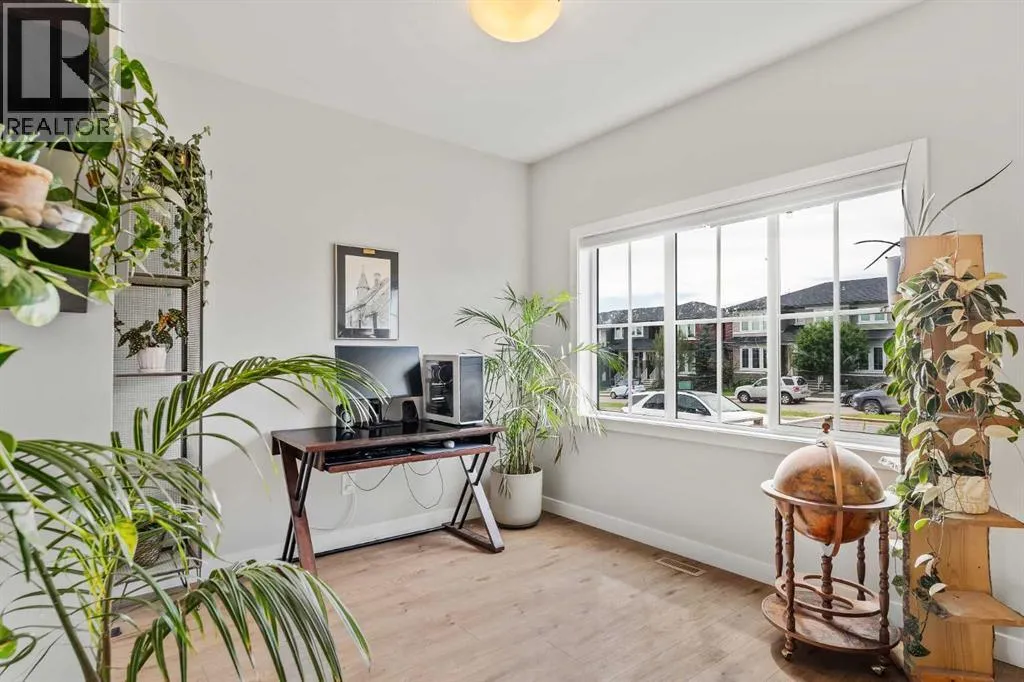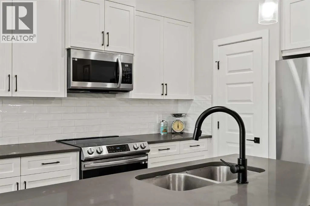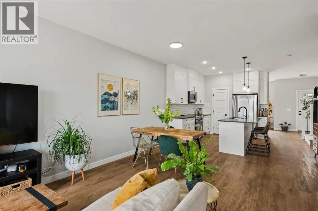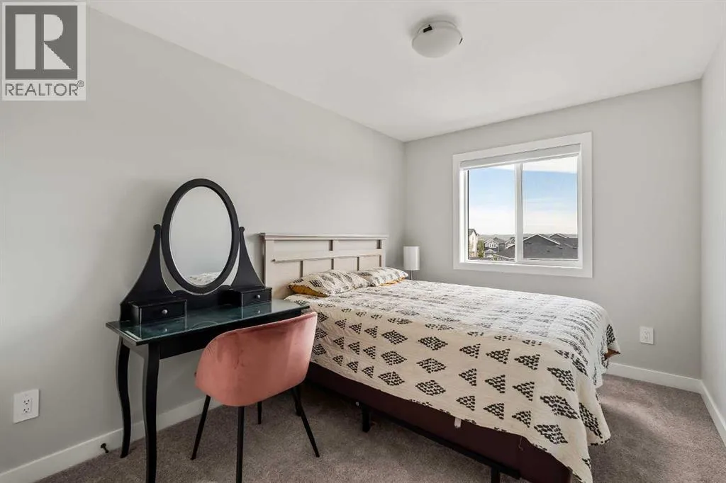 Built in 2022, this contemporary like-new home in River Heights combines stylish design with family-friendly functionality. A sunny south-facing front patio welcomes you with space to enjoy morning coffee or keep an eye on the kids while they play. Inside, 9â ceilings create an airy atmosphere while durable finishes stand up to everyday life. A bright flex room at the front of the home provides a comfortable space for work, study or a playroom. Flowing through the main level, the open plan layout balances togetherness with defined spaces. The inviting living room offers a relaxed setting that extends easily to the rear deck, ideal for summer barbecues or unwinding outdoors. Anchoring the design, the dining area keeps family meals and gatherings connected, while the modern kitchen blends function and style with quartz countertops, stainless steel appliances, timeless subway backsplash and a central island with seating for casual bites. A pantry ensures everything is within easy reach and a powder room enhances convenience. Upstairs, the hallway landing is generous enough for a cozy reading nook or homework station. The spacious primary retreat features a walk-in closet and a sleek ensuite with dual sinks and an oversized shower for a touch of everyday luxury. Two additional bedrooms share a well-appointed four-piece bathroom and the upper laundry room saves time and steps on busy family mornings. The walkout basement is ready for future development, already offering direct access to the fenced backyard where kids and pets can play safely on the grassy lawn. A rear deck with stairs down provides a seamless indoor-outdoor connection and a parking pad accommodates two vehicles. Living in River Heights means being minutes from schools, playgrounds and shopping, while Cochraneâs trail network and outdoor spaces are always close at hand. This home delivers the style you want with the practicality your family needs. (id:27476)