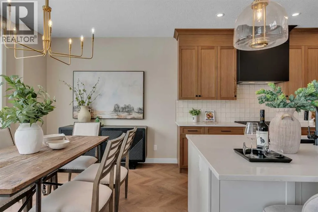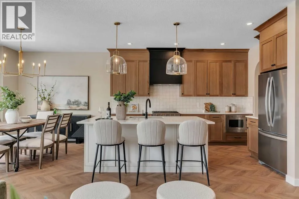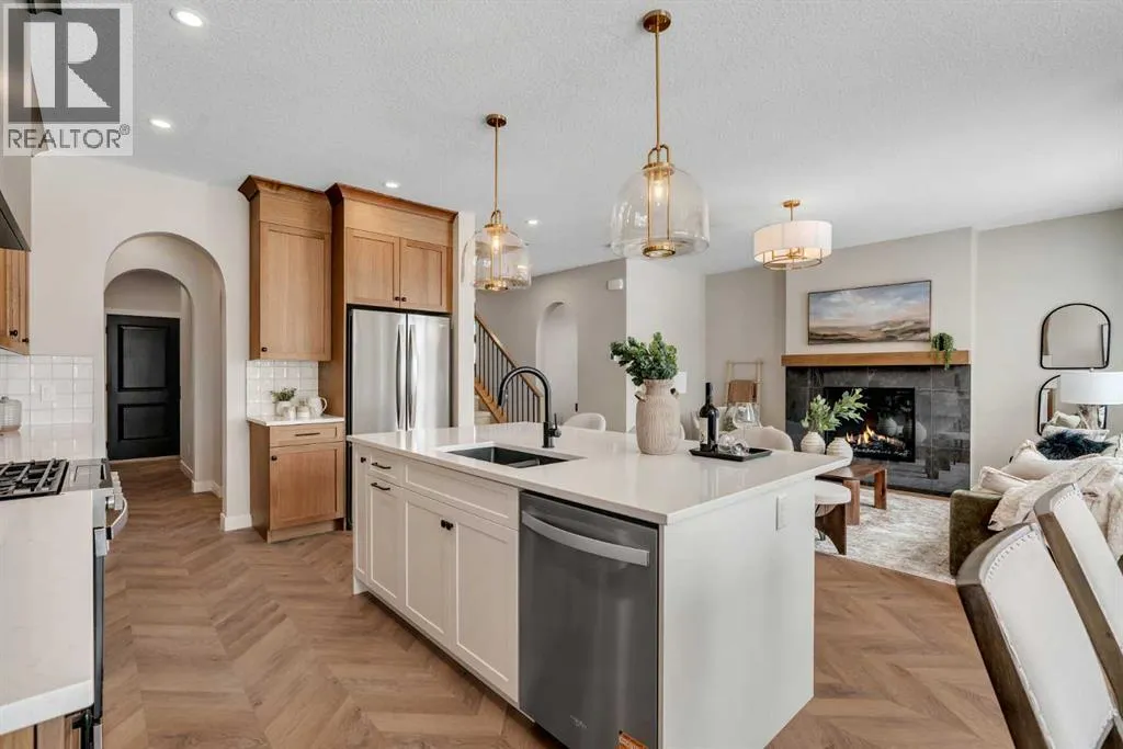 *Watch the video* Open House April 4-5 (Sat & Sun) 12-2PM** Dreams of elevated family living come true in Sunset Ridge, Cochrane. Welcome to 47 Sundown Crescent, located in one of Cochraneâs most family-oriented communities. Built by Aspen Creek Designer Homes, Cochraneâs Builder of the Year 3 years in a row, this stunning Shelby model is set on a premium walkout lot backing onto a scenic walking path and showcases high-end finishings, superior craftsmanship, luxury upgrades, and exceptional attention to detail that truly sets it apart from typical new construction. Finished with timeless Hardie Board siding and an engineered structure, this home is built to last.Offering over 2,300 SQ FT of beautifully designed and highly functional living space, this home impresses from the moment you arrive. Premium Quality Finishings | Upgraded Sherwood Chevron Laminate Flooring | Gorgeous Chef's Dream Kitchen | Sleek Upgraded Lights | Butler's Pantry | Custom Curved Arch's | 9FT Ceilings Throughout | Vaulted Ceilings in Bonus Room | 8ft Doors | Vinyl Deck |West Backyard Walkout Lot | Green Pathway | Minutes to School.Step inside to an inviting open foyer with upgraded flooring throughout and a main floor den that works perfectly as a home office. At the heart of the home is the dreamy kitchen, where Aspen Creek truly shines. Youâll find rift-cut oak cabinetry, ceiling-height cabinets, quartz countertops, a beautifully upgraded backsplash, upgraded appliances, a gas stove, and a custom cabinet-covered range hood. The dual-tone cabinetry adds depth and elegance, while the well-designed butlerâs pantry and adjacent walk-in pantry provide exceptional storage and prep space. Even the fixtures have been elevated, including a premium Delta Trinsic black faucet and upgraded sink.The spacious west-facing living room is perfect for entertaining and everyday living, highlighted by an upgraded tile fireplace with custom mantle and a clean, modern finish. Just off the living area, the ra ised vinyl deck overlooks the backyard and scenic walking path, perfect for morning coffee or summer gatherings.Upstairs, the spacious bonus room is a true showstopper with vaulted ceilings, pot lights, and a statement chandelier, making it the ideal space for movie nights. With 9-foot ceilings continuing throughout the upper level, the entire floor feels bright and open. All bedrooms are generously sized, while the primary suite stands out as a true private retreat with a feature wall, upgraded finishes, and custom MDF shelving in the walk-in closet. The ensuite is beautifully appointed with a freestanding tub, full-height tiled shower, dual vanities, and premium fixtures throughout. Large windows fill the space with natural light. Located just 20 minutes to Calgary, 30 minutes to downtown, and only an hour from the mountains.This is your opportunity to own stunning home with a spacious layout on a premium lot. This is more than with upgrades, this is where design, quality, and detail come together. (id:27476)