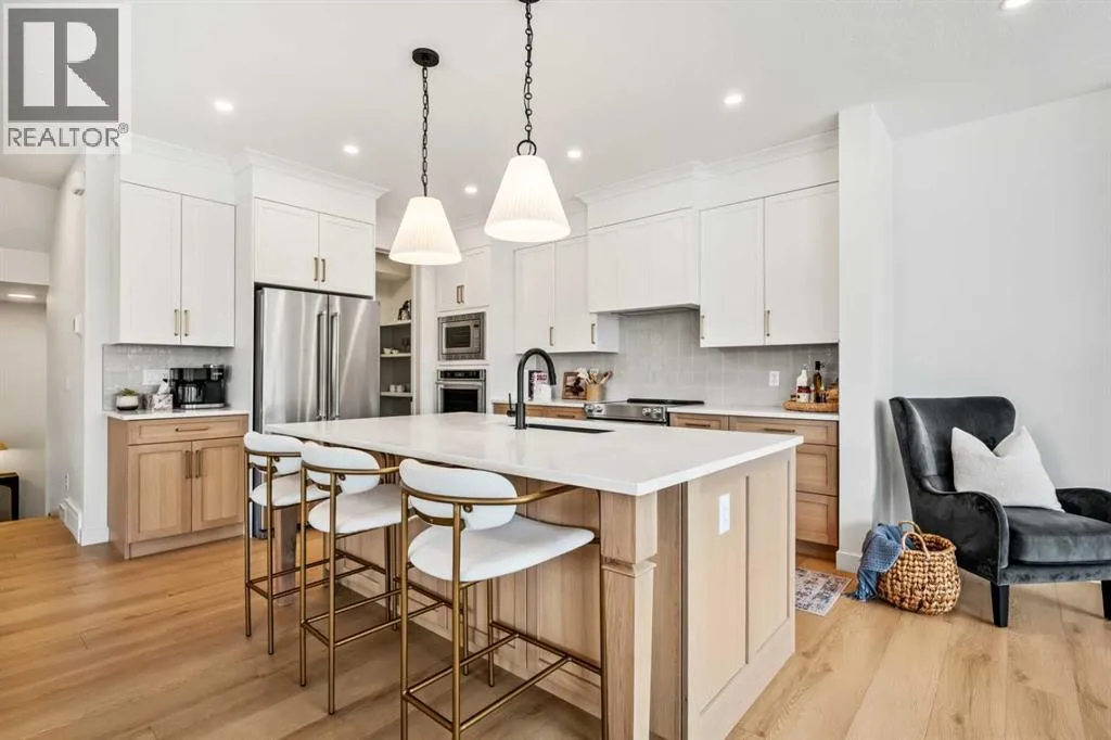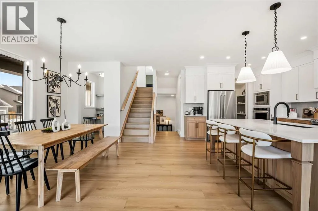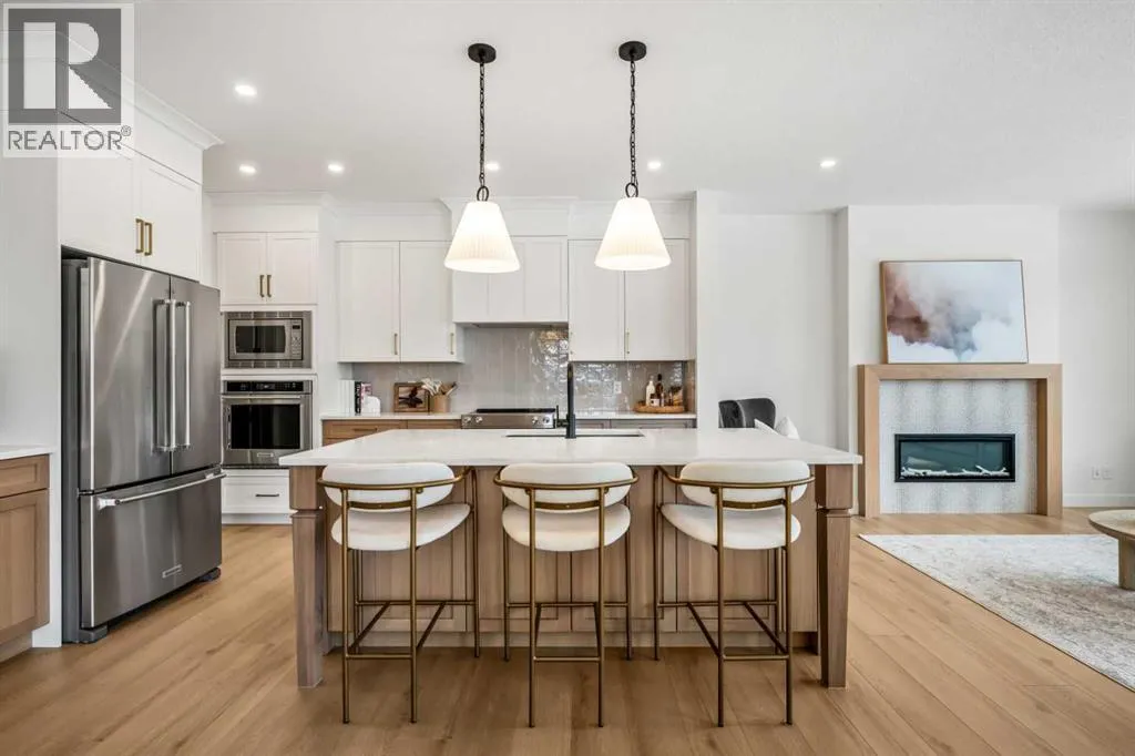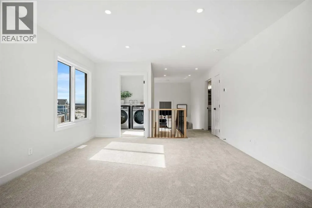 *OPEN HOUSE - Saturday and Sunday from 12-5PM* Welcome to 28 Sunset View, an exceptional luxury residence by Aspen Creek Designer Homes, thoughtfully designed to offer 2,350 sq. ft. of beautifully developed living space across four refined levels. This sophisticated home blends architectural elegance with everyday comfort, featuring 4 bedrooms, a fully finished lower level, and 3.5 bathrooms, all set within one of Cochraneâs most desirable communities.The staggered split design creates distinct yet connected living zones, enhancing both privacy and flow. The main living level presents an open-concept kitchen, dining area, and great room filled with natural light from expansive Energy Star rated Low-E windows. Quartz countertops, custom painted MDF cabinetry with soft-close doors and drawers, a full-height tile backsplash, and a Blanco Horizon sink paired with a Delta Trinsic faucet create a kitchen that is both functional and visually refined. Luxury vinyl plank flooring, 11 LED pot lights, and a contemporary Napoleon Element fireplace add warmth and modern character throughout the main living spaces.A dedicated entry level enhances everyday organization with a welcoming foyer, convenient powder room, and thoughtfully designed mudroom with direct access to the attached garage. Engineered framing systems and reinforced concrete foundation walls provide structural confidence, while 9â ceilings on the main level and 8â interior doors contribute to the homeâs sense of openness and architectural presence.The upper levels are designed for comfort and flexibility, anchored by a spacious primary suite featuring a walk-in closet and a beautifully finished ensuite complete with a freestanding Maax Delsia soaker tub and full-height tile shower. Additional bedrooms, a full bathroom, upper laundry area, and a versatile central bonus room provide adaptable space for family living, work, or relaxation. Soft carpeting with quality underlay enhances comfort and quiet throughou t the private living quarters.The fully finished lower level expands the homeâs functionality with a generous rumpus room, additional bedroom, and full bathroom, creating an ideal setting for guests, teenagers, or a private office. 96% high-efficiency two-stage furnace, smart Wi-Fi thermostats, and HRV ventilation contribute to year-round comfort and energy efficiency.Exterior finishes include James Hardie fibre cement siding or acrylic stucco with SmartTrim accents, architectural shingles, aluminum soffits, and a CUSTOM COVERED DECK AND VERANDA.Sunset Ridge offers a lifestyle defined by scenic beauty, community connection, and everyday convenience. Residents enjoy expansive Rocky Mountain views, over five kilometres of walking and cycling pathways, nearby parks, playgrounds, and access to schools and amenities, all while remaining within easy reach of Calgary. Experience the balance of nature and modern living in one (id:27476)