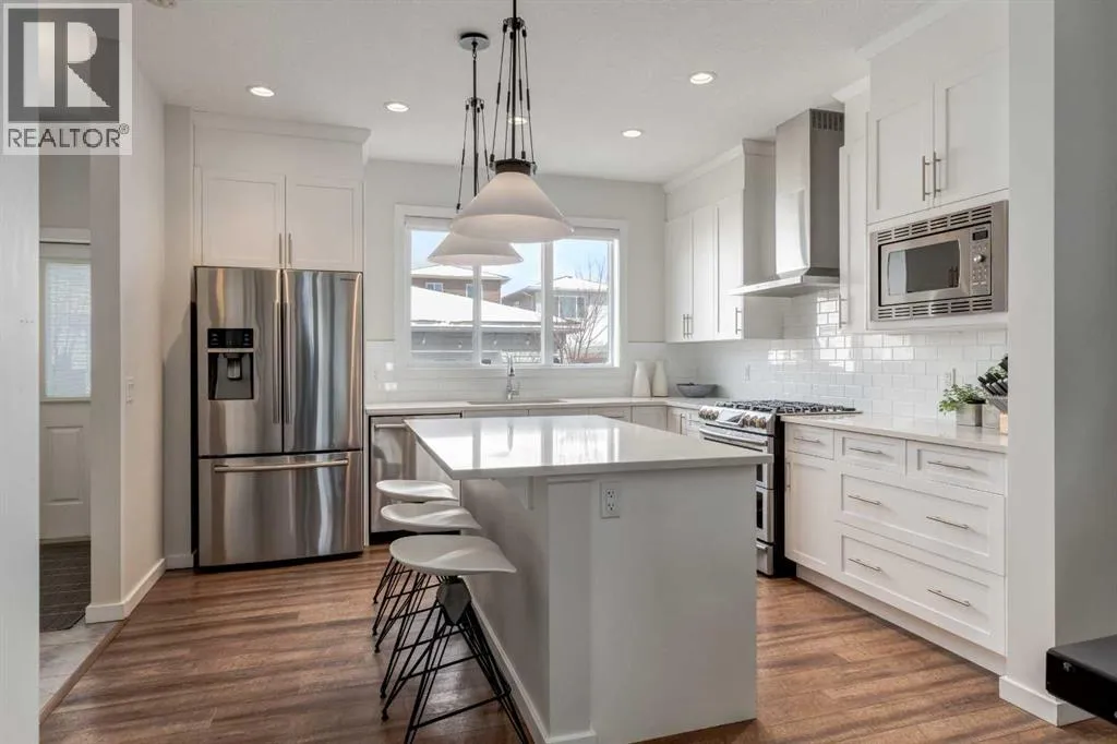 A jewel-box residence in Heritage Hills, where timeless charm meets elevated everyday living.Tucked into the sought-after west Cochrane community of Heritage Hills, this impeccably maintained three-bedroom, two-and-a-half-bath home offers a refined balance of comfort, design, and natural beauty. From its inviting front veranda to its thoughtfully curated interiors, the home unfolds with an effortless sense of warmth and sophistication. Bathed in natural light, the open-concept main level is designed for both quiet moments and gracious entertaining. The living space flows seamlessly into a well-appointed dining area and a contemporary kitchen featuring stainless steel appliances, a gas range, and generous cabinetry, an elegant yet functional backdrop for daily living. Upstairs, a serene primary retreat offers a walk-in closet and private ensuite, complemented by two additional bedrooms and a full bath. A conveniently located laundry room enhances the homeâs thoughtful design.The lower level presents an opportunity to tailor the space to your lifestyle, whether as a private fitness studio, media lounge, or additional living quarters. Outdoors, a beautifully landscaped, low-maintenance yard and private patio invite relaxed summer evenings, while the oversized 24x24 detached garage, complete with a third overhead door that leads into the backyard, adds both function and flexibility.Positioned just moments from parks, pathways, and everyday amenities, and with seamless access to the Rocky Mountains, this residence captures the essence of elevated Cochrane living, where community, nature, and design come together in perfect harmony. (id:27476)