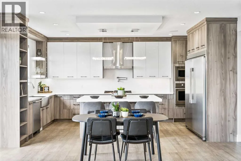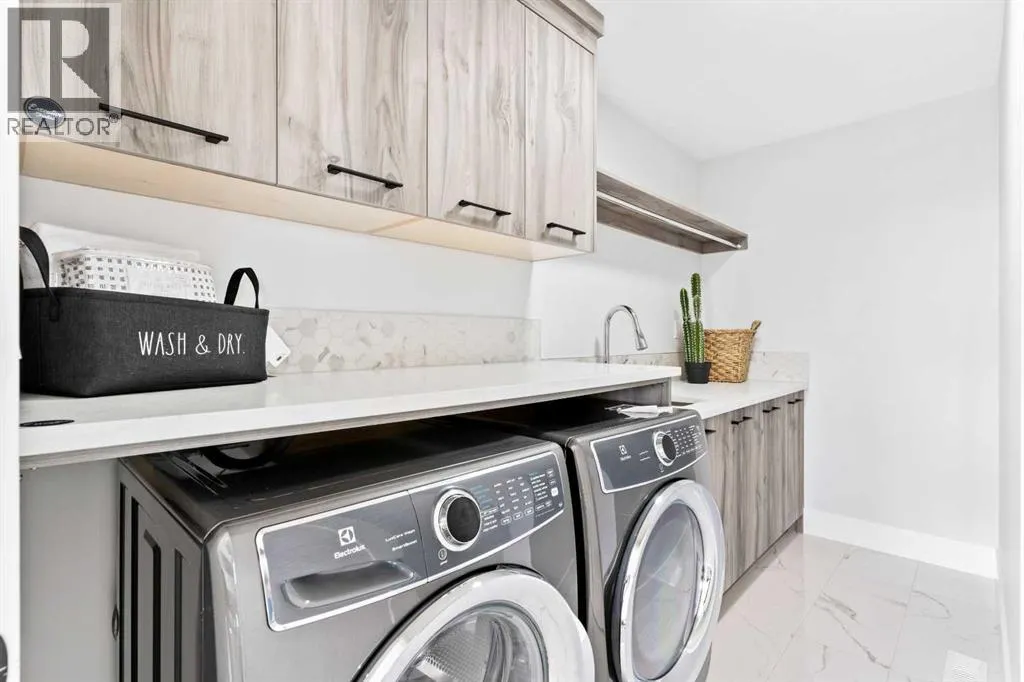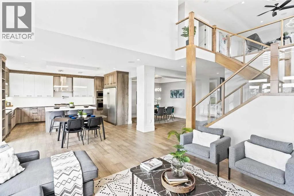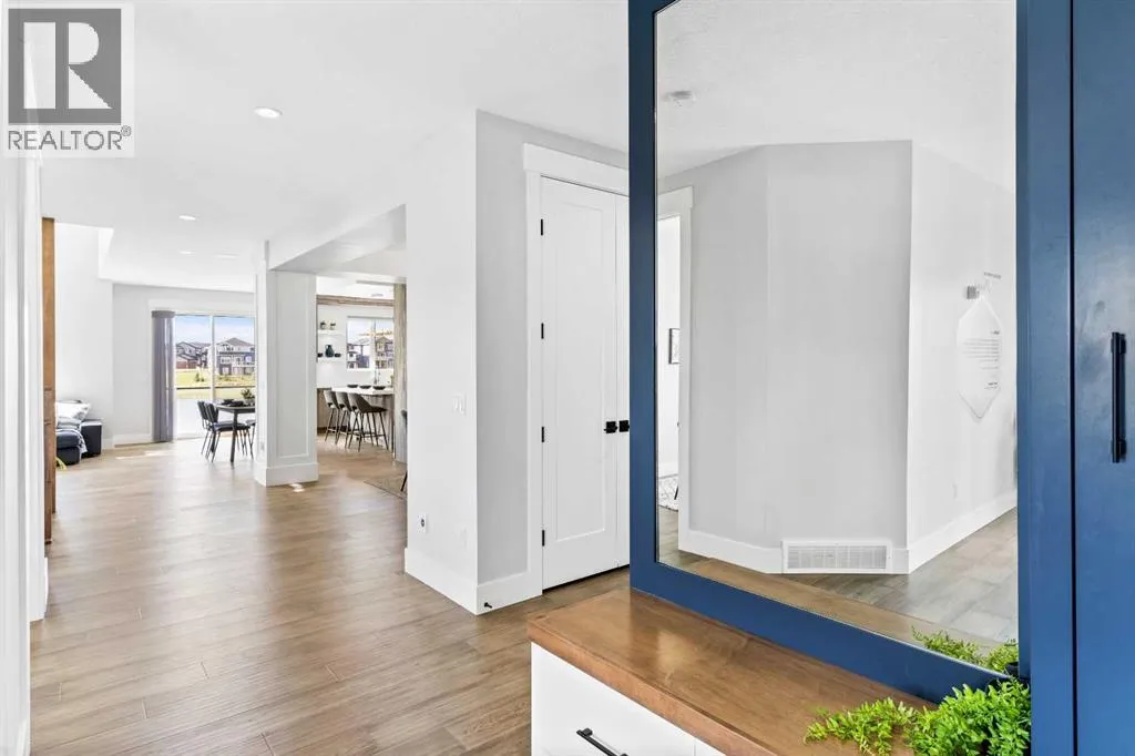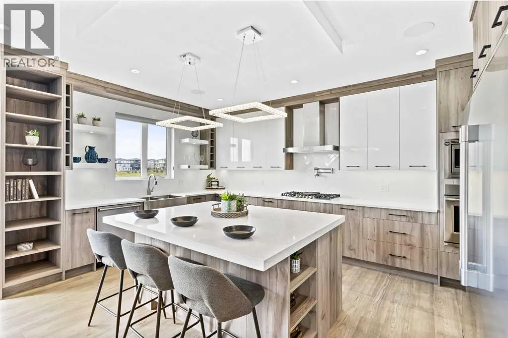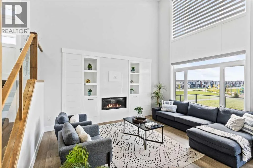 This home is currently under construction. Photos are for representation purposes only and are not of the actual property. Finishes, features, and specifications may vary.Welcome to a beautifully designed home that blends architectural drama with modern sophistication, featuring a triple car garage and a thoughtfully curated interior loaded with premium upgrades.The main and upper floors offer four bedrooms and three-and-a-half bathrooms, ideal for families seeking both space and functionality. The home impresses immediately with an open-to-below living room and an open-to-above bonus room, creating a striking sense of volume, light, and connection between levels. A cedar and oak upgrade package, paired with black and chrome hardware throughout, adds warmth and contemporary contrast, while an enhanced lighting package ensures the home feels bright and inviting at every turn.The main floor is finished with hardwood flooring and hardwood vents, complemented by 9-foot ceilings and 8-foot doors for a clean, upscale feel. The dream kitchen is a standout, featuring custom cabinetry, quartz countertops, a built-in wall oven and microwave, gas cooktop, oversized fridge/freezer, and dishwasher. A large island with eating bar is highlighted by a dramatic ceiling detail, while the walk-through pantry with MDF shelving and butlerâs pantry add exceptional storage and functionality. The family room is anchored by a gas fireplace, creating a warm and welcoming gathering space. A mudroom with built-in bench and hooks completes the main level with everyday convenience.Upstairs, the layout is thoughtfully designed with four bedrooms, three bathrooms, a dedicated laundry room, and a spacious bonus room with tray ceiling. The primary suite offers a private retreat, featuring a tray ceiling, walk-in closet with MDF shelving, and a well-appointed ensuite with double vanity, soaker tub, and a fully tiled shower with bench and glass enclosure. Secondary bedrooms are generously size d, with convenient access to full bathrooms. Plush carpet throughout the bedrooms and upper-level living areas enhances comfort, while the laundry room with sink and base cabinetry adds practicality.The undeveloped basement provides a blank canvas for future customizationâideal for a recreation space, home gym, or additional living area tailored to your needs.Outside, the home is finished with a modern mix of fiber cement siding and smooth panel detailing, along with a rear deck perfect for enjoying the outdoors.Architecturally striking, thoughtfully upgraded, and designed for modern livingâthis home offers comfort, style, and long-term value in every detail. (id:27476)