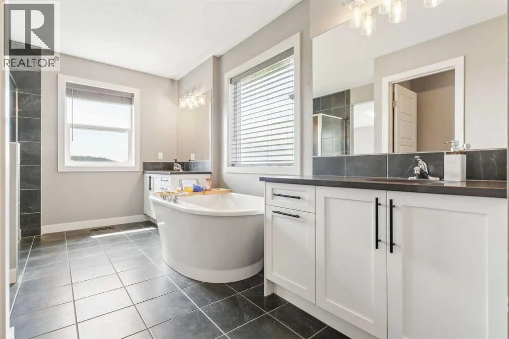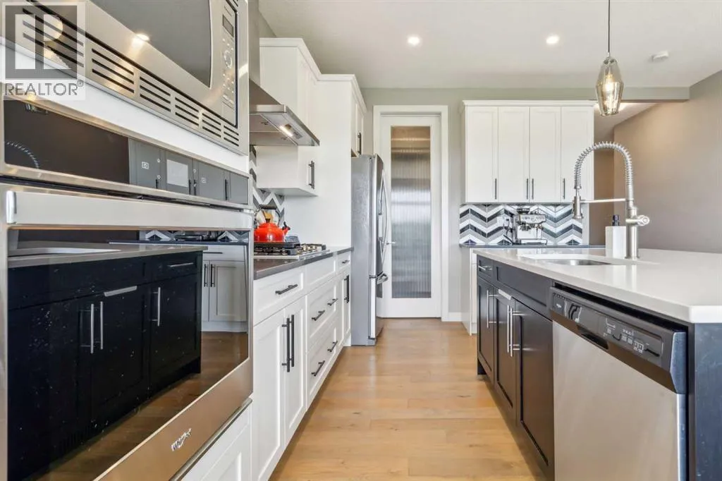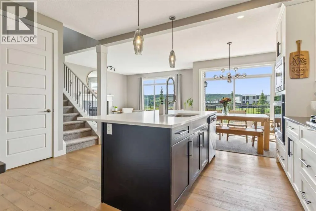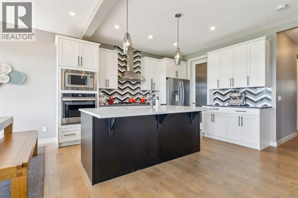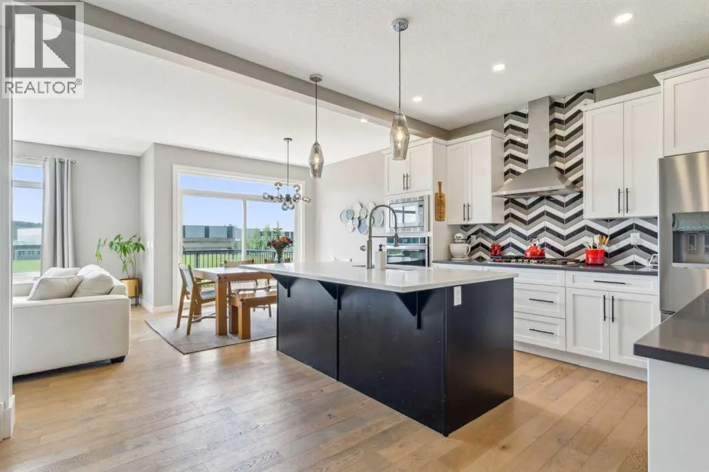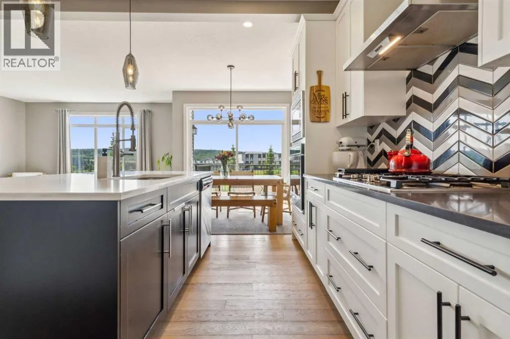 Sunset Ridge voted Cochrane's Best Neighbourhood 2025!!!! Welcome to this stunning, two-storey walkout home, perfectly situated, backing onto expansive green space and Ranche View School (elementary and junior high) school yard, offering stunning mountain views to the west and to the east a beautiful forest hillside with cows occasionally grazing in the pasture. The backyard gate opens up to the vast school playground, allowing students to lunch at home and - running out the back door minutes before the bell rings! With a bright open-concept main floor, soaring ceilings, and large south-facing windows, this home is filled with an abundance of natural sunlight throughout the day. The main level features a spacious office with elegant French doors - ideal for working from home. The large functional kitchen with entertainment island, white cabinetry, quartz countertops, a convenient walk-through pantry and stainless appliances, make this THE spot for hosting events! The spacious living room with gorgeous fireplace wall flows into the lovely dining area with sliding glass doors which lead out to a large elevated deck, perfect for entertaining or simply enjoying the peaceful surroundings. Upstairs, you'll find three generously sized bedrooms; including a luxurious primary suite with a 5-piece spa-ish ensuite featuring double vanities, a large soaker tub, a stand-alone shower and a spacious walk-in closet. An additional 4-piece bathroom is shared by two spacious bedrooms and a large bonus room provides plenty of space for family living and relaxation, games night and late night TV. The fully developed walkout basement offers incredible versatility, featuring a theatre room or optional fourth bedroom, and an additional 4-piece bath. Currently used as a gym, the walk-out offers large windows with a beautiful view to enjoy while on the treadmill. Step out to a gorgeous patio and landscaped back yard. Enjoy breathtaking views in every direction and "the peace" . A stunning home delivering the charm of country living with all the conveniences of Cochrane - AND - less than an hour to the mountains!!!! This exceptional home truly offers the best of both worlds; tranquility, space and modern comfort in a highly desirable location. Shows 10/10! Book your viewing today! (id:27476)