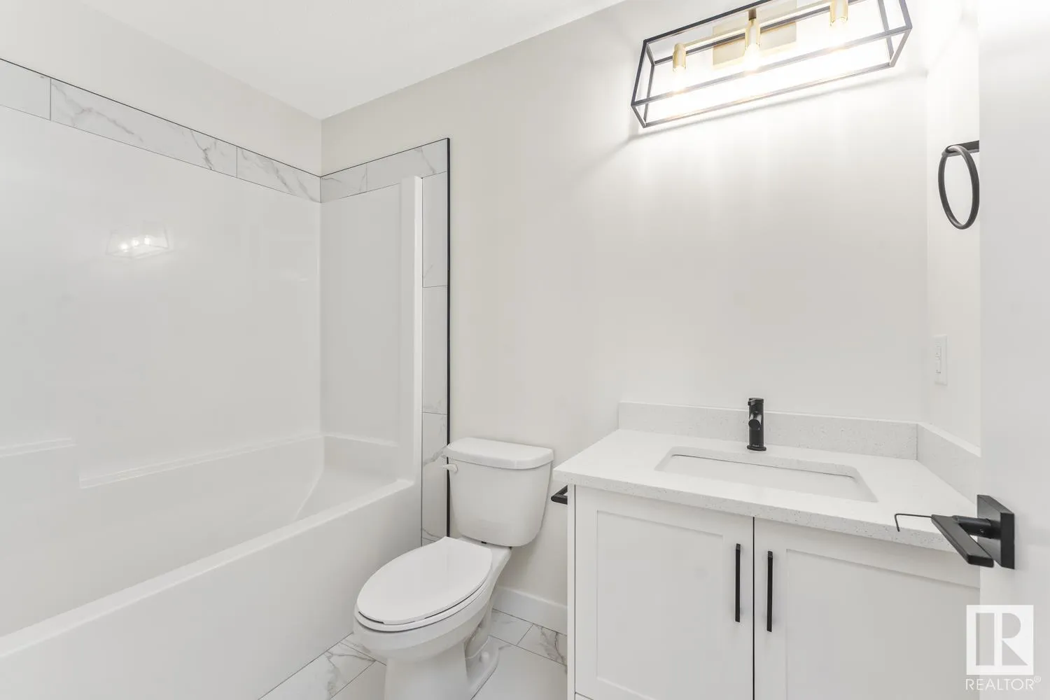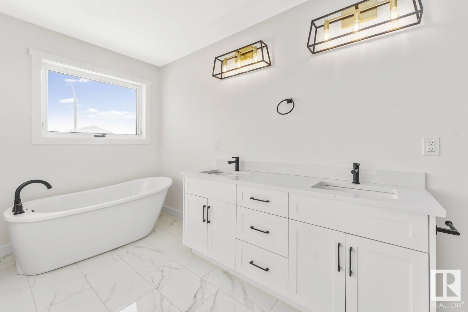 Modern Hailey style home built by Kelly's Signature Homes Ltd, with a double heated garage, located in Cold Lake North - close to Kinosoo Beach, the hospital, and a future playground! The yard will be fully landscaped and fenced and will include a concrete driveway and side walk. As you open the front door you are greeted with a good size entry with access to the garage and then a few steps up to the great room with 10ft ceilings and consisting of a living/dining/kitchen. The kitchen will have modern custom cabinets with quartz countertops, and a good size island with a $3700 appliance credit. Also on this floor are two bedrooms and the main bathroom. Up a few steps and you are in the large primary bedroom with 2 walk in closets, and FULL ensuite with tiled shower & separate tub. Main level flooring is a combination of tile & vinyl, and the fully finished basement will have in-slab heat and consist of a big family room, 2 more bedrooms and a full bathroom. (id:27476)