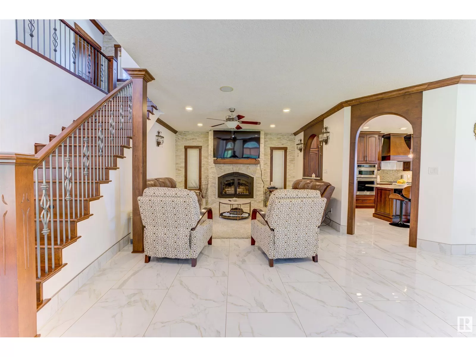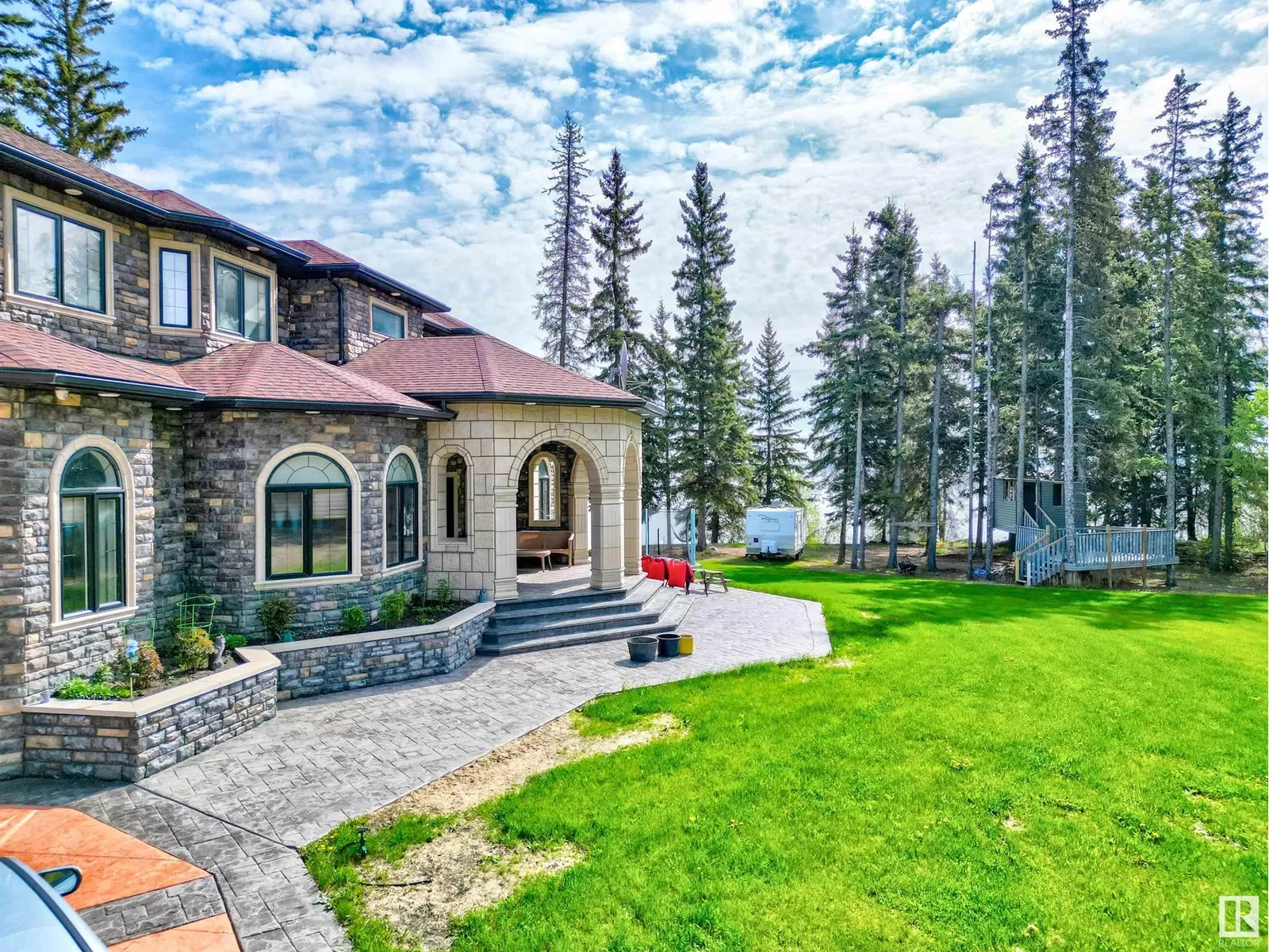 Sacrificial Sale! Build cost over $2 million & another $1 million for the land, plus plus plus!! This property has 2 homes with over 190' of lakefront! The main home on the lake is a mansion, with 6 bedrooms, 6 bathrooms steam showers or tubs, 3 sets of laundry, a massive 17'x23' master bedroom with 12'x13'.6'' deck & a 20' x 8' deck off the dining room, both overlooking the lake! High-end finishing throughout: granite countertops; high-end tile; stamped concrete parking pad; multilevel in-floor heat; two full kitchens; stove top, fridge, & sink in the master bedroom, a corner gas fireplace, Air Conditioning, & 5 piece ensuite. The main floor has a wood fireplace, there is , a separate sitting area, a meeting room, a chef's kitchen, a majestic dining area, surround sound in the home, theatre room, & a thermostat on each floor. The home has a 30'x40' triple car garage, & the original home, with attached shop, is 80' x 40'. There is also a detached 12'x24' single car garage! Over 5000 sqft of living space! (id:27476)