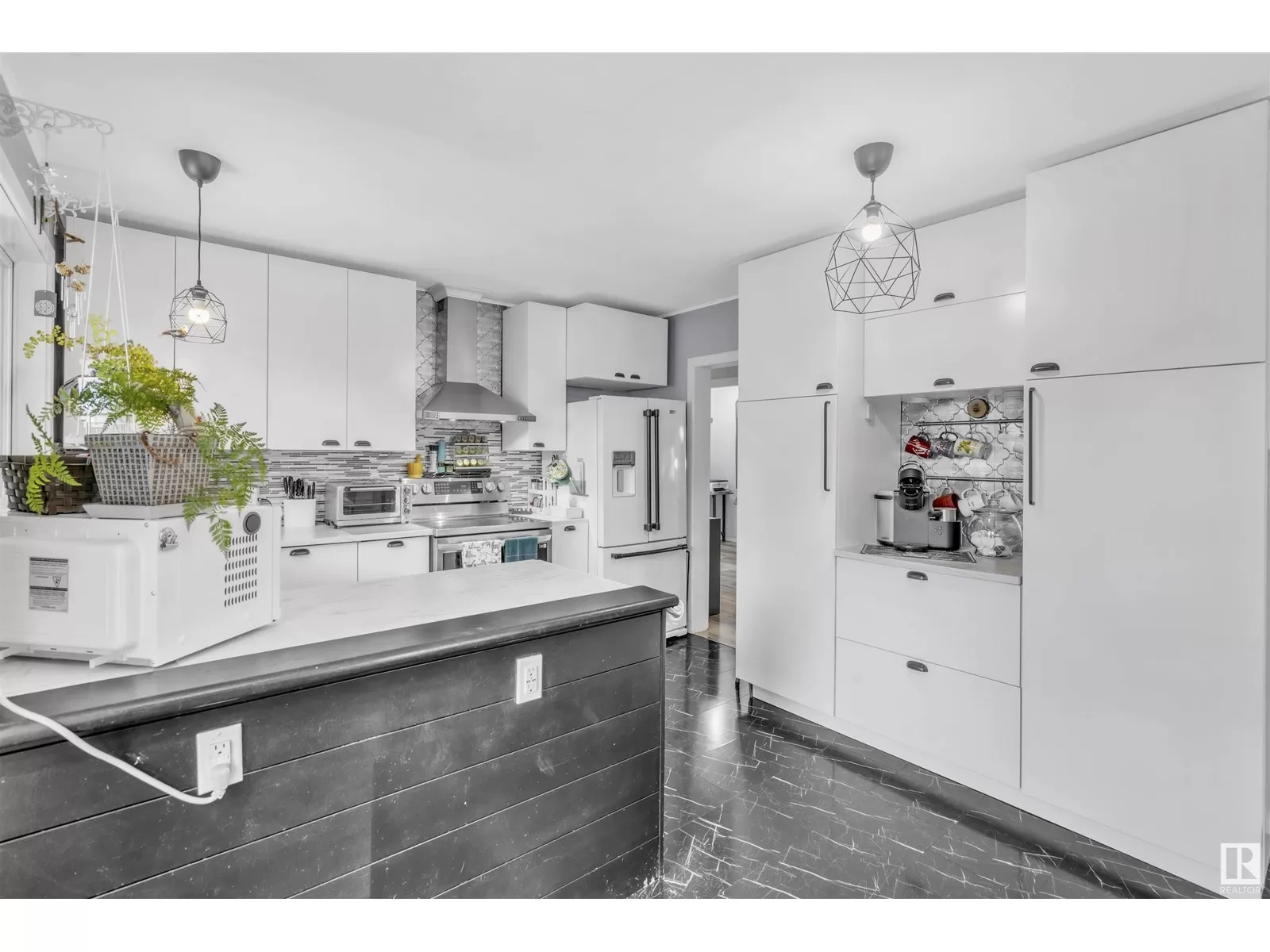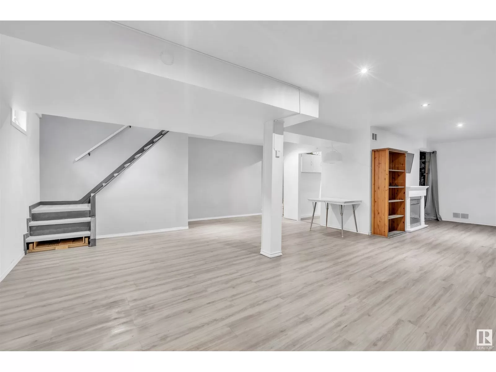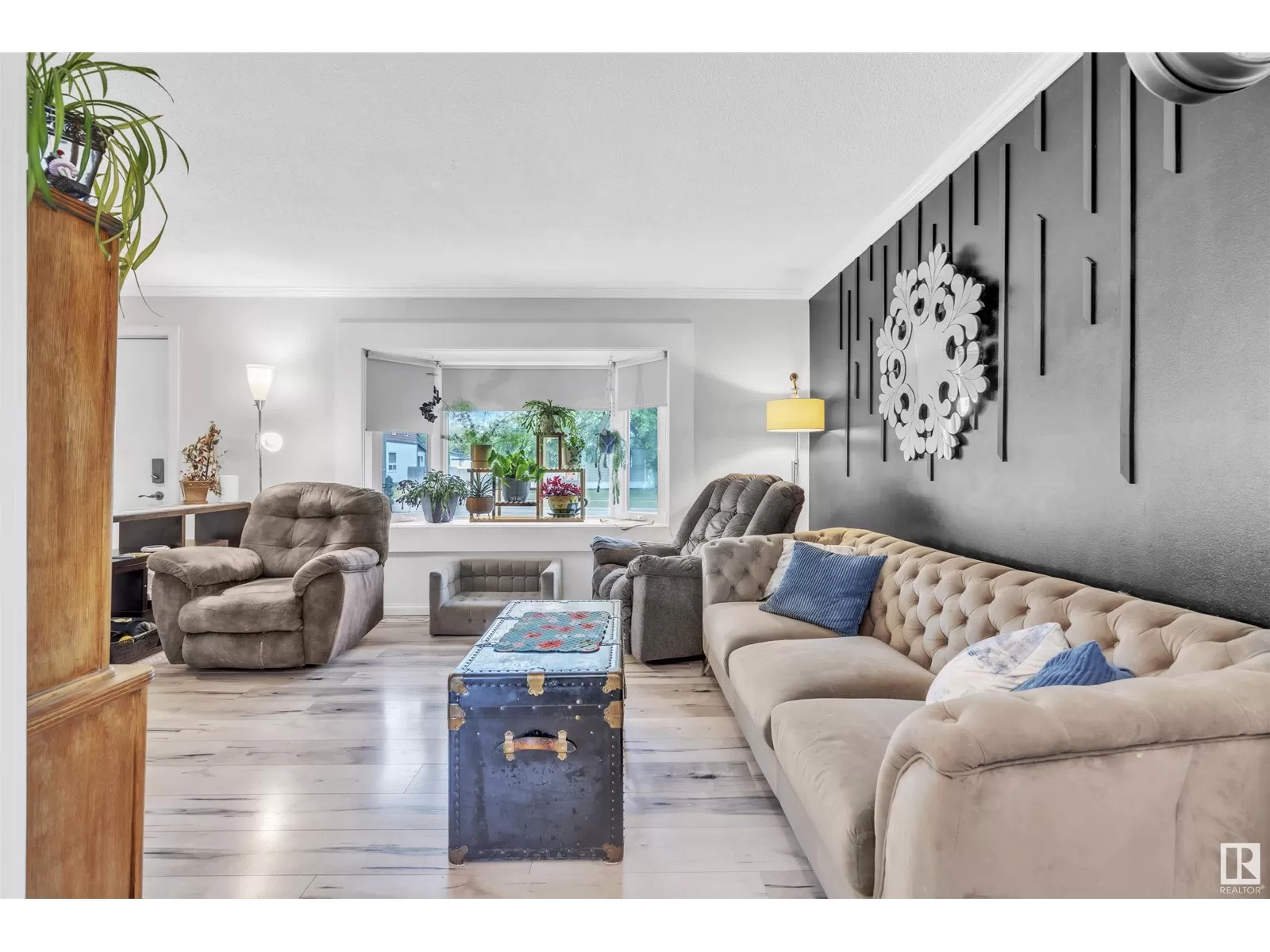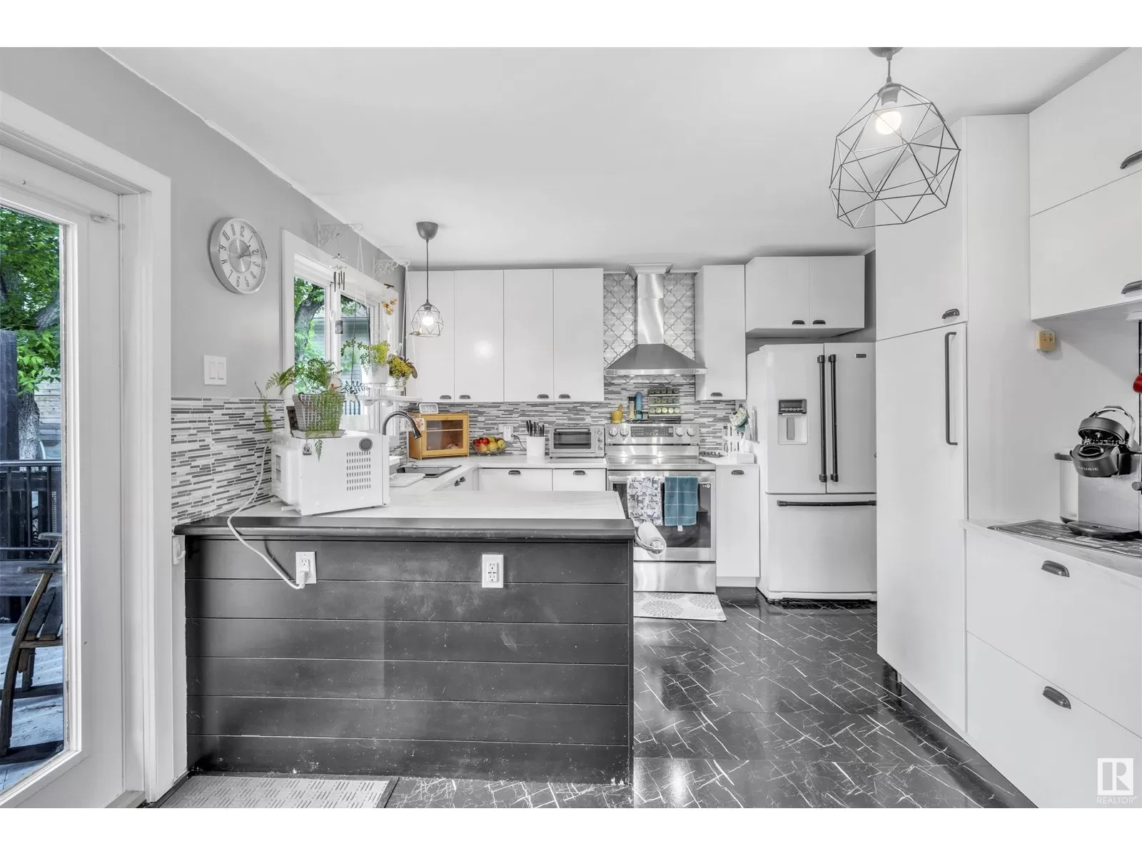 Beautifully refreshed and full of thoughtful updates! Newer roof, vinyl windows, hot water tank, flooring, appliances, paintâplus new doors, updated insulation, a reconfigured kitchen, and a brand new front deck! Move-in ready with peace of mind. The large backyard offers endless options: space for kids, pets, or even RV parking. Step inside to an inviting open-concept living and dining area that flows into the redesigned kitchenâfeaturing new layout, painted cabinets, backsplash, appliances, and a big window over the sink with a view of the lush yard. Main floor has 3 bedrooms and a full 4pc bath. Downstairs offers a generous rec room, hobby space, storage, and 3pc bath. A truly upgraded bungalow close to schools, shopping, and transit! (id:27476)