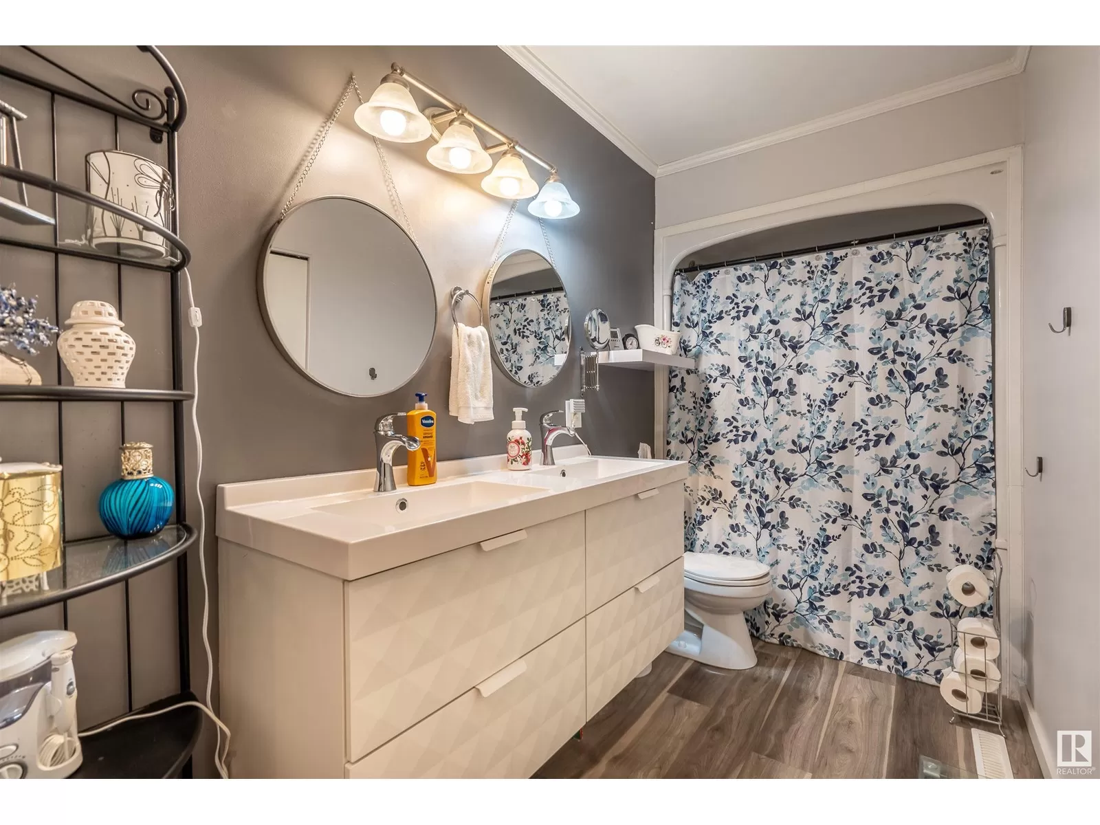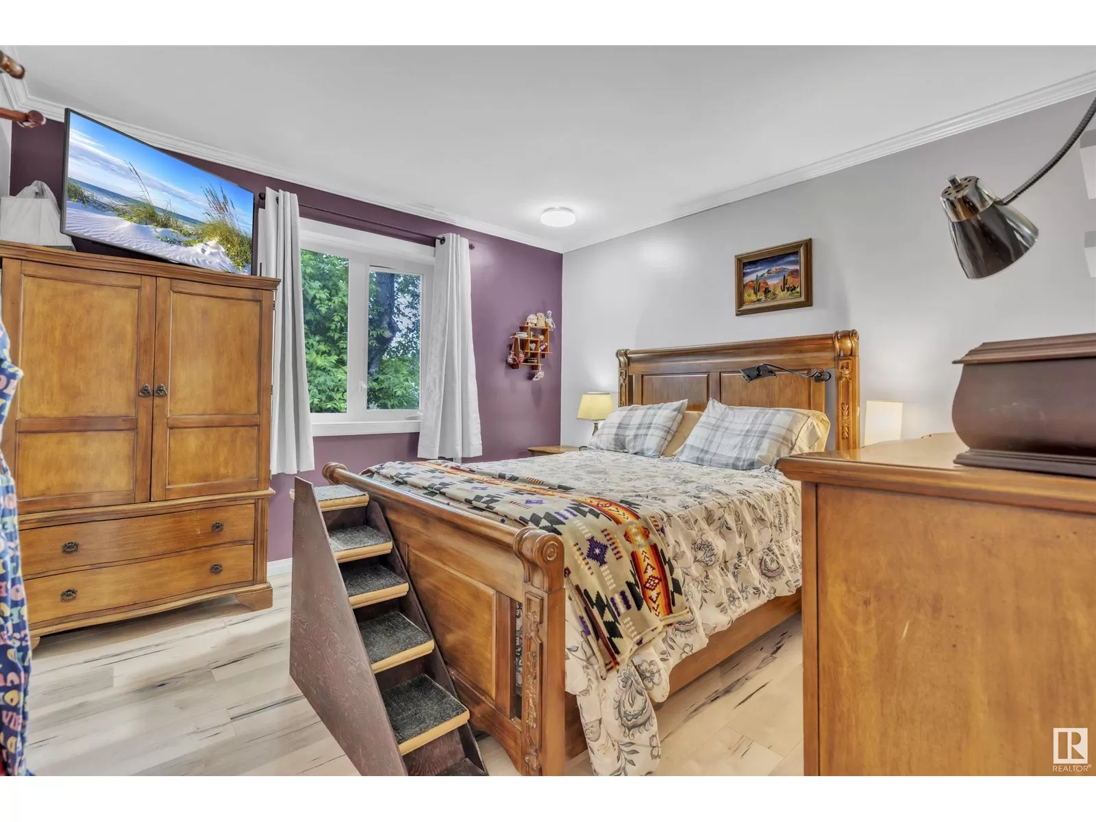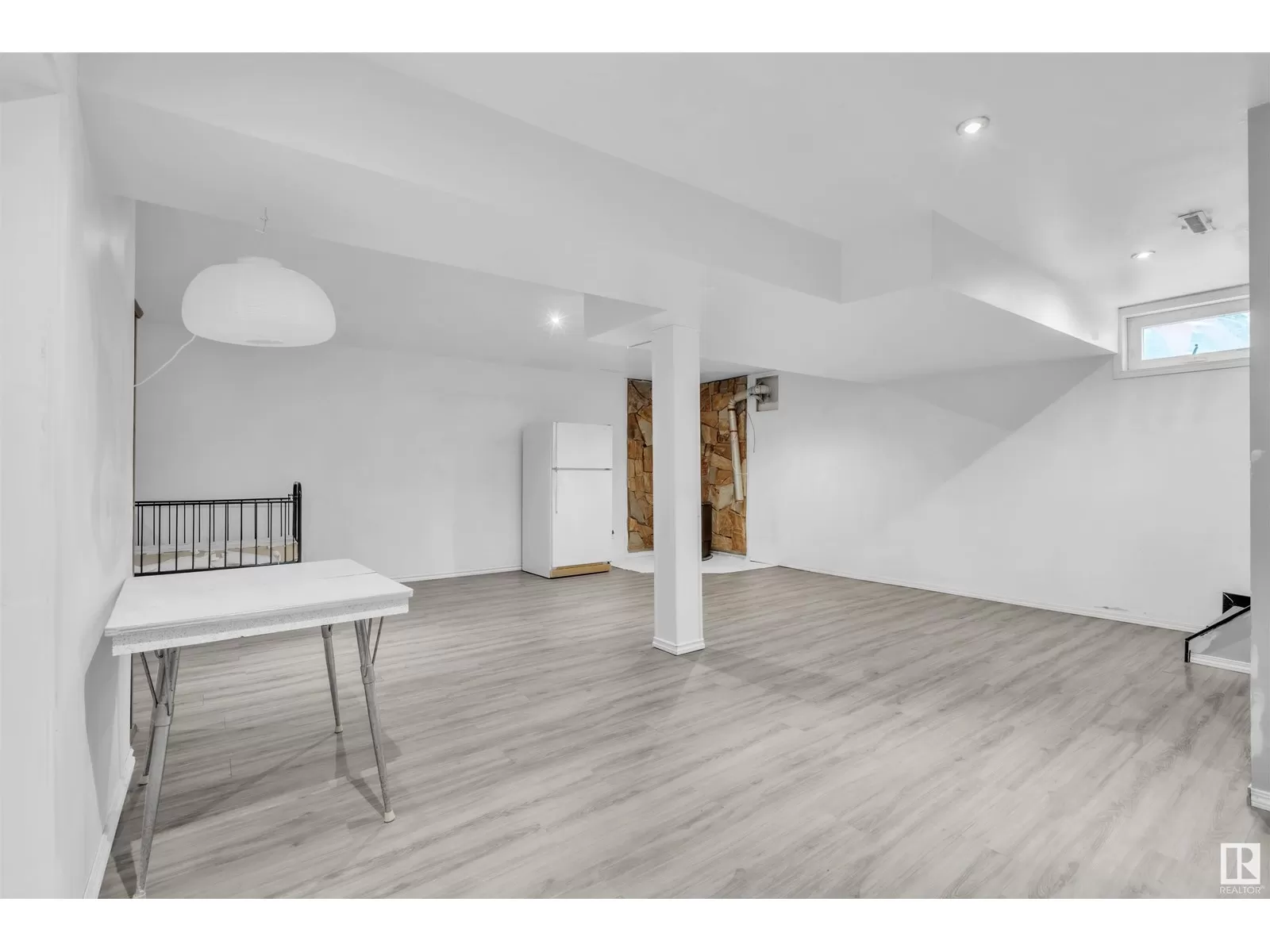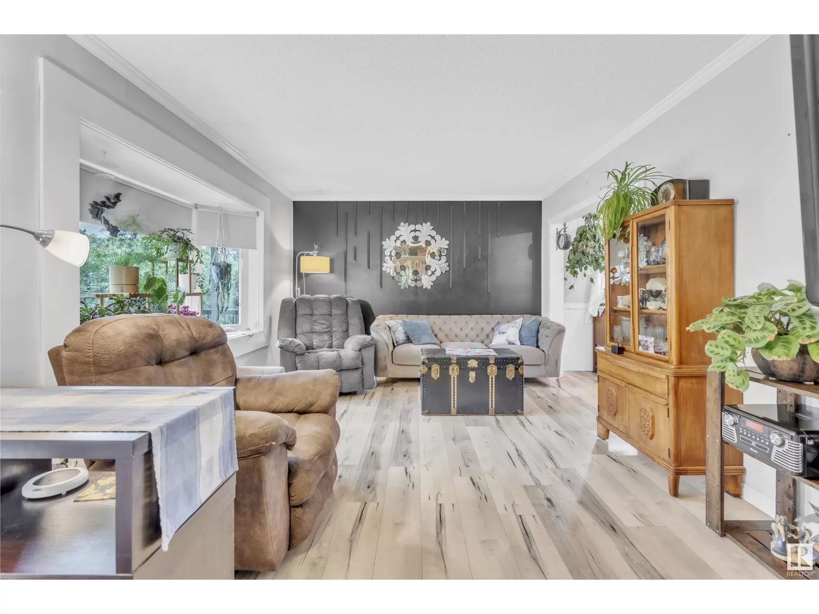 Beautifully refreshed and full of thoughtful updates! Newer roof, vinyl windows, hot water tank, flooring, appliances, paintâplus new doors, updated insulation, a reconfigured kitchen, and a brand new front deck! Move-in ready with peace of mind. The large backyard offers endless options: space for kids, pets, or even RV parking. Step inside to an inviting open-concept living and dining area that flows into the redesigned kitchenâfeaturing new layout, painted cabinets, backsplash, appliances, and a big window over the sink with a view of the lush yard. Main floor has 3 bedrooms and a full 4pc bath. Downstairs offers a generous rec room, hobby space, storage, and 3pc bath. A truly upgraded bungalow close to schools, shopping, and transit! (id:27476)