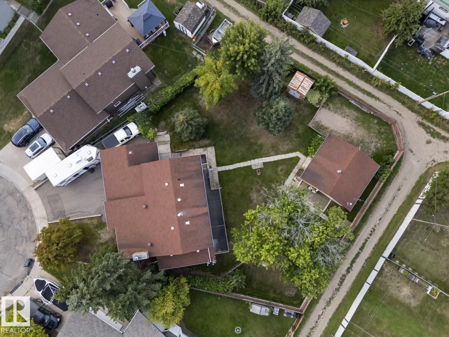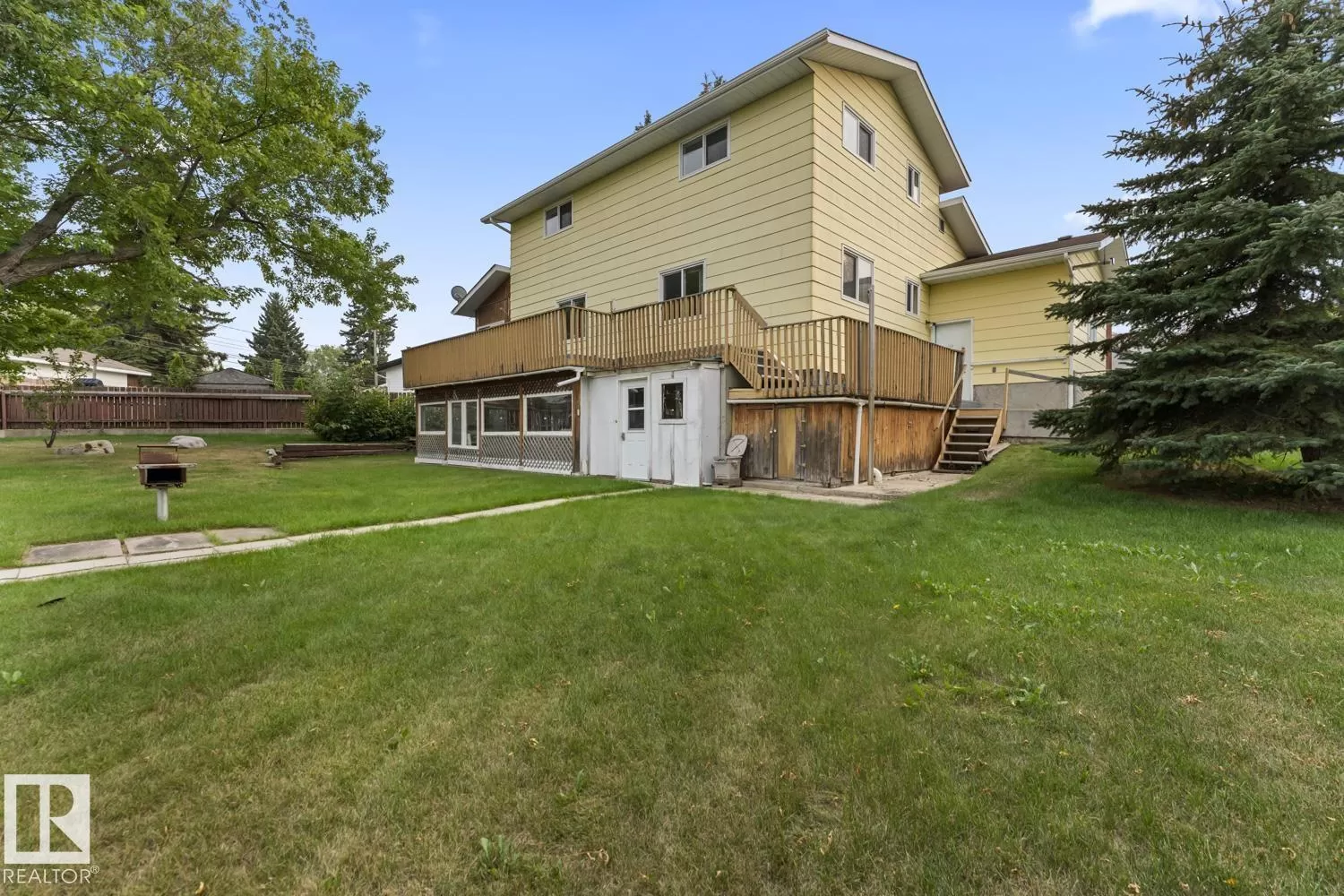 Loads of potential and endless possibilities with this 2087 SF family home, located in Cold Lake North, with double attached garage plus double detached shop! Main floor features living room with stunning 2 storey ceilings and exposed beam accents, flowing directly into formal dining room which opens to 3 season sunroom. Well appointed kitchen with loads of cabinet and counter space plus pantry area, open to flexible space that could be used as family room or eating area with access to sunroom. 2 massive bedrooms upstairs plus large 4pc bathroom and loft area open to living room below (could be framed in for 3rd bedroom). Fully finished, walkout basement, features large family room with access to lower level sunroom, small kitchenette, 3rd bedroom plus full bath and another set of laundry hook ups. Located on a massive 10,764 sq.ft park-like lot with mature trees, alley access on two sides and RV parking available. (id:27476)