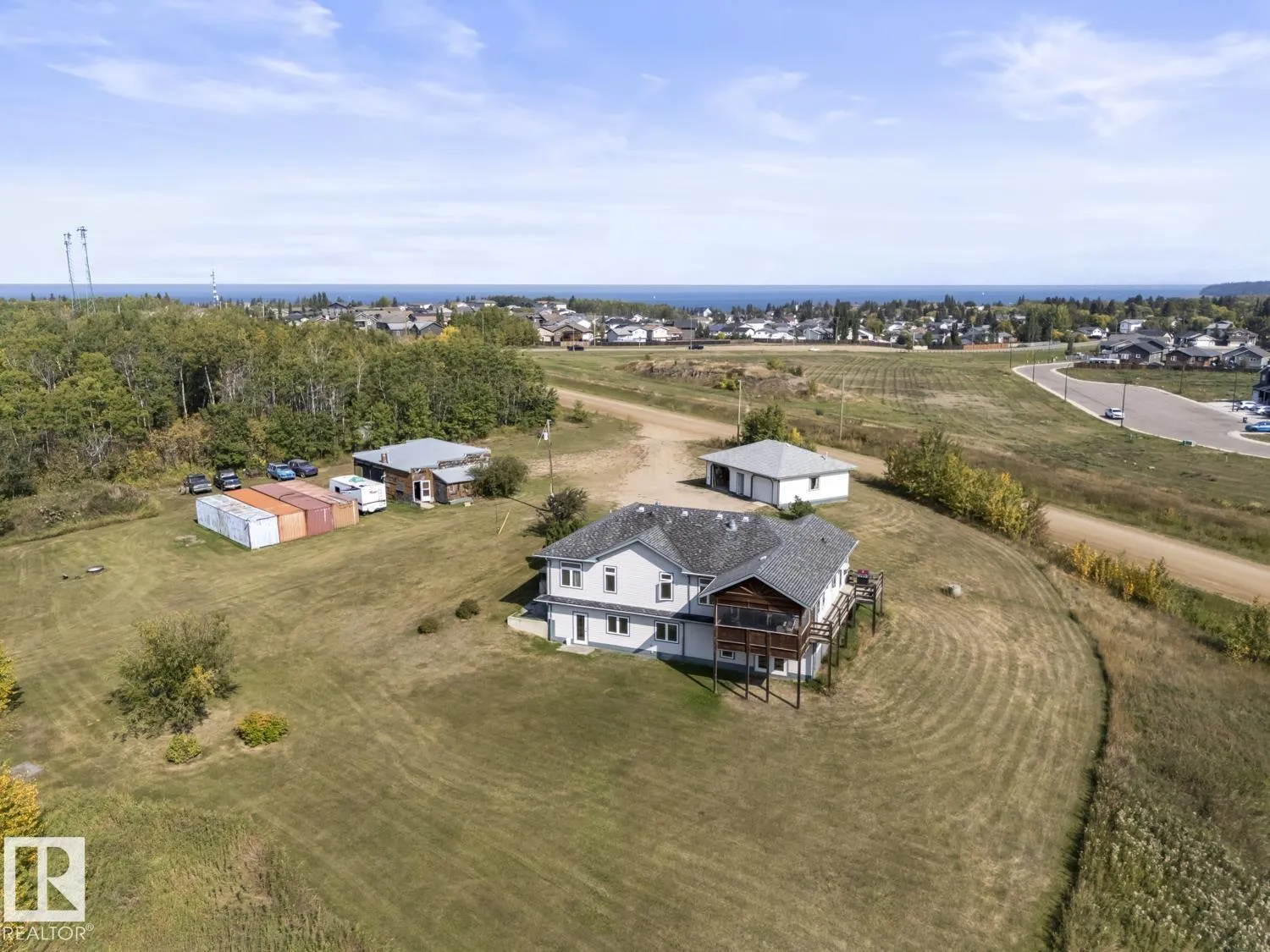 Welcome to this once in a lifetime opportunity to own a custom-built home on 7.35 acres in Cold Lake North! Whether you are looking to invest or enjoy acreage living within town, this is a must see! This home features over 1,700 sq. ft. per level, fully developed for more than 3, 400 sq. ft of living space, with 5 bedrooms and 3 bathrooms. The master suite includes a walk-in closet and ensuite with an air tub. The walk-out basement comes with under slab heating and a cozy gas fireplace. Upstairs you'll find 9' ceilings with a vaulted design, an oak kitchen with solid surface counters, and triple-glazed low-E argon windows throughout. Heating and efficiency were at the top of mind in the build. The home also comes with a metal exterior trim package for durability. Enjoy the multiple bonuses of this property, like the double car garage, shop, and the sunroom. This property is on the market for the very first time, so come out and take a look! (id:27476)