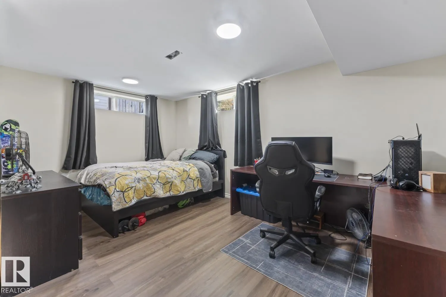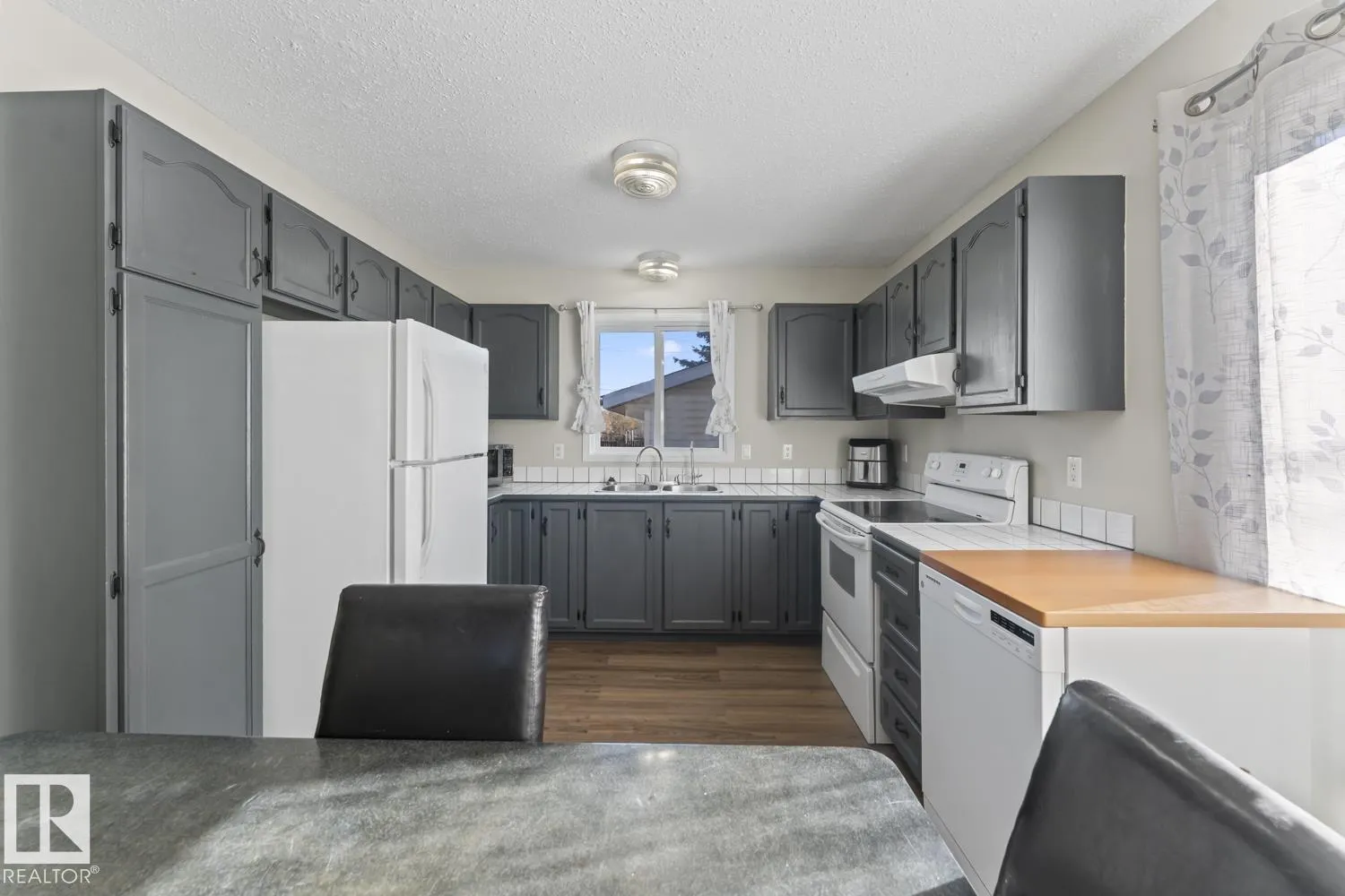 Welcome to this charming, beautifully maintained bungalow, freshly painted with new flooring throughout offering 5 bedrooms and 2 bathrooms. The kitchen features stylish dark cabinets, and plenty of windows that fill the space with natural light. The main floor includes 3 bedrooms and a bright, welcoming living area. The fully finished basement offers 2 additional bedrooms, a comfortable family room, a full bathroom, and a convenient storage room â perfect for a growing family or guests. Outside, enjoy a fenced and landscaped yard that backs onto green space and a beautiful park with large double gate and access for RV Parking. Finishing off this property is a double detached heated garage with 220V power. This home combines charm, functionality, and is close to 4 Wing, schools, and in the heart of Cold Lake â truly a must-see! (id:27476)