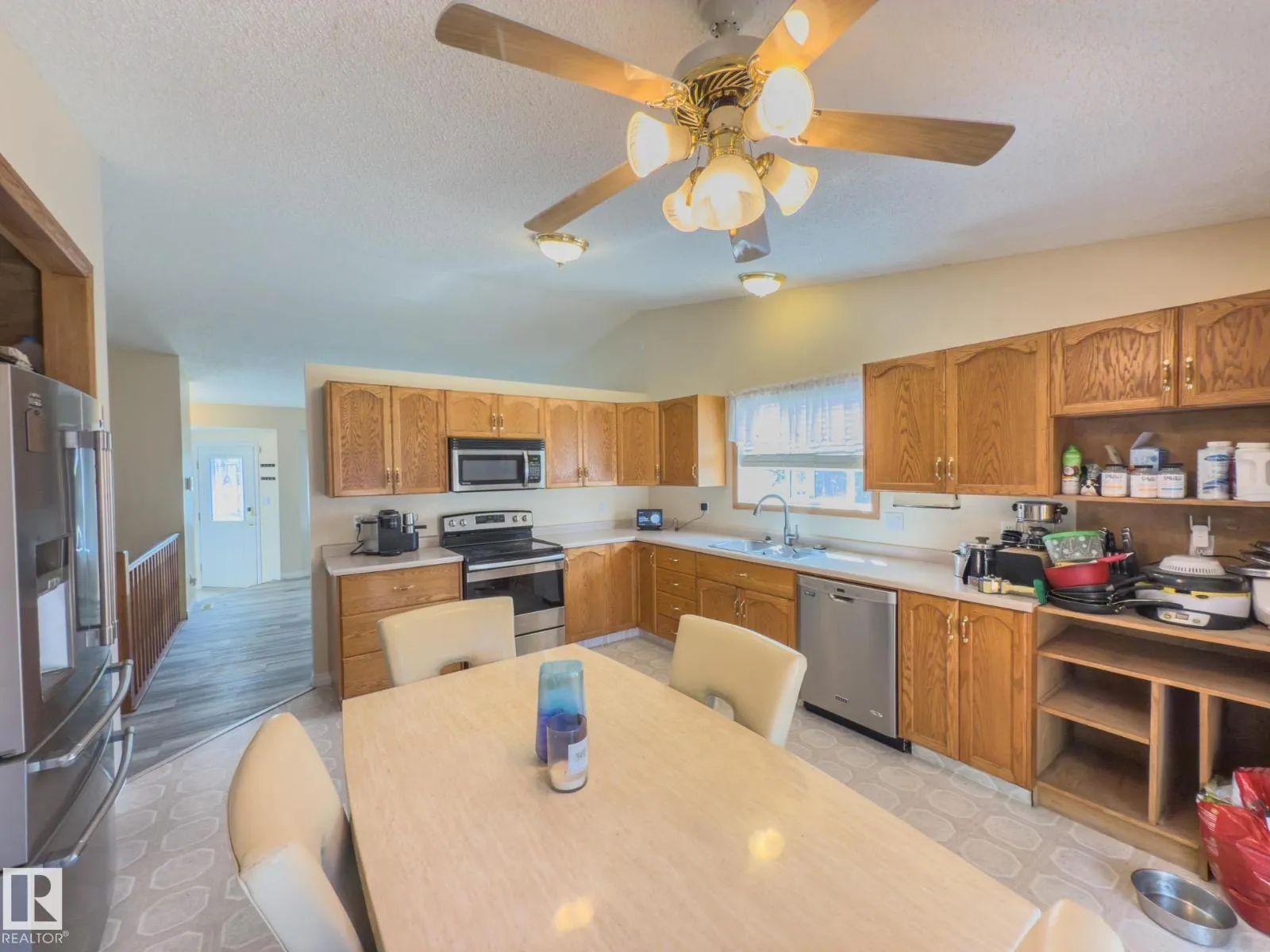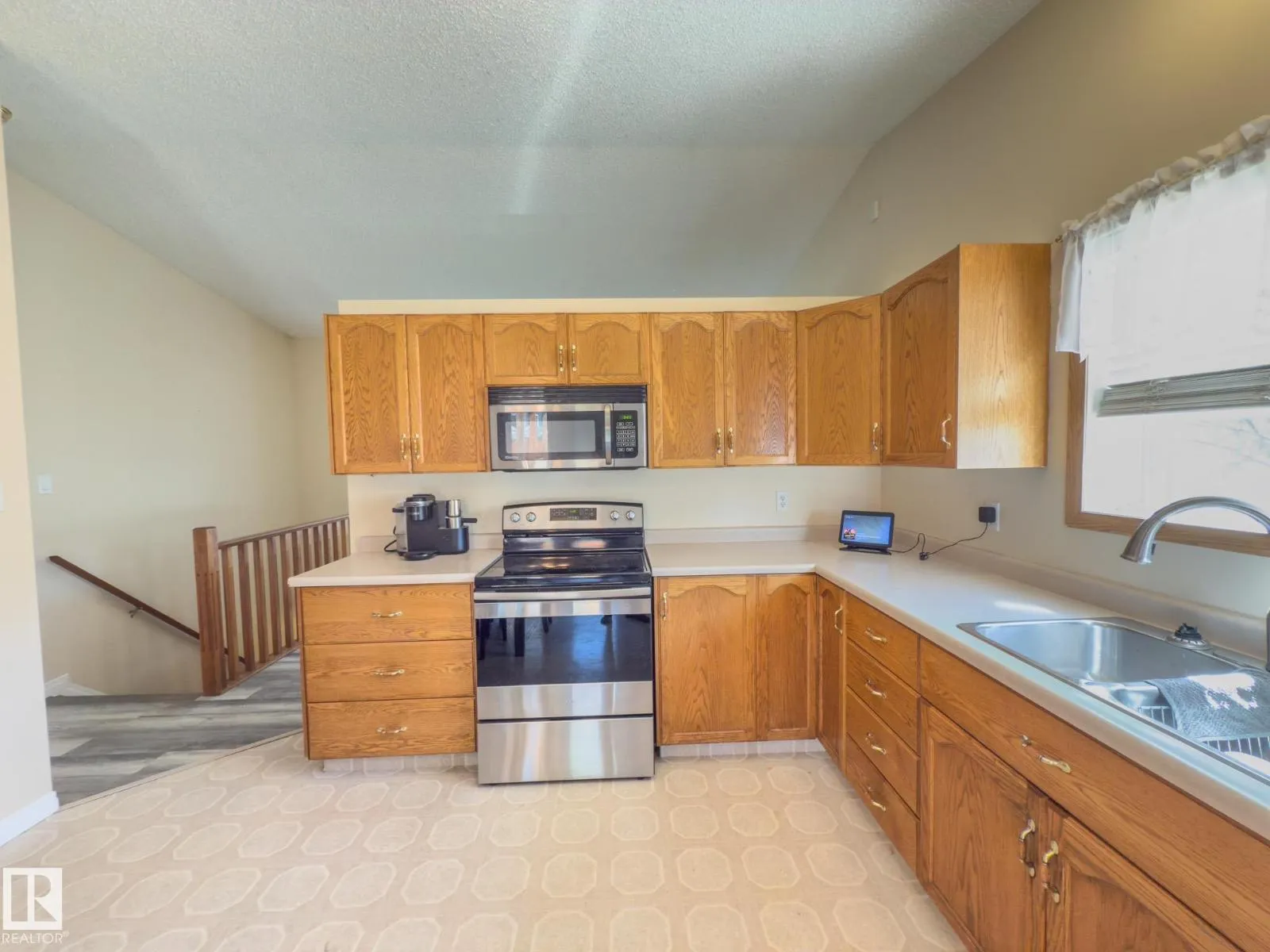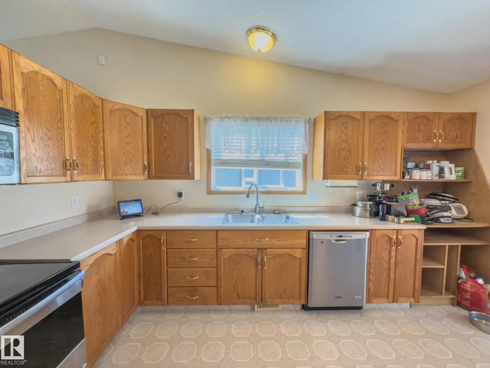 Situated on a peaceful and family-friendly cul-de-sac in the desirable area of Cold Lake South, this charming home offers both comfort and functionality. The main level features three well-sized bedrooms, providing ample space for a growing family or guests. The heart of the home is the spacious, family-sized kitchenâperfect for cooking, dining, and entertaining. vaulted ceilings enhance the sense of openness, while a skylight in the main bathroom fills the space with natural light.The cozy living room is ideal for relaxing evenings, complete with a warm gas fireplace that adds both charm and comfort. Additional features include central vacuum for added convenience and easy maintenance. Step out from the kitchen onto a generous deck that overlooks a beautifully landscaped and fully fenced backyardâperfect for outdoor dining, entertaining, or letting children and pets play safely. The yard also offers the bonus of alley access, adding flexibility for RV parking. (id:27476)