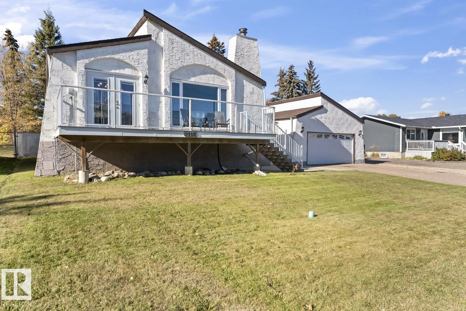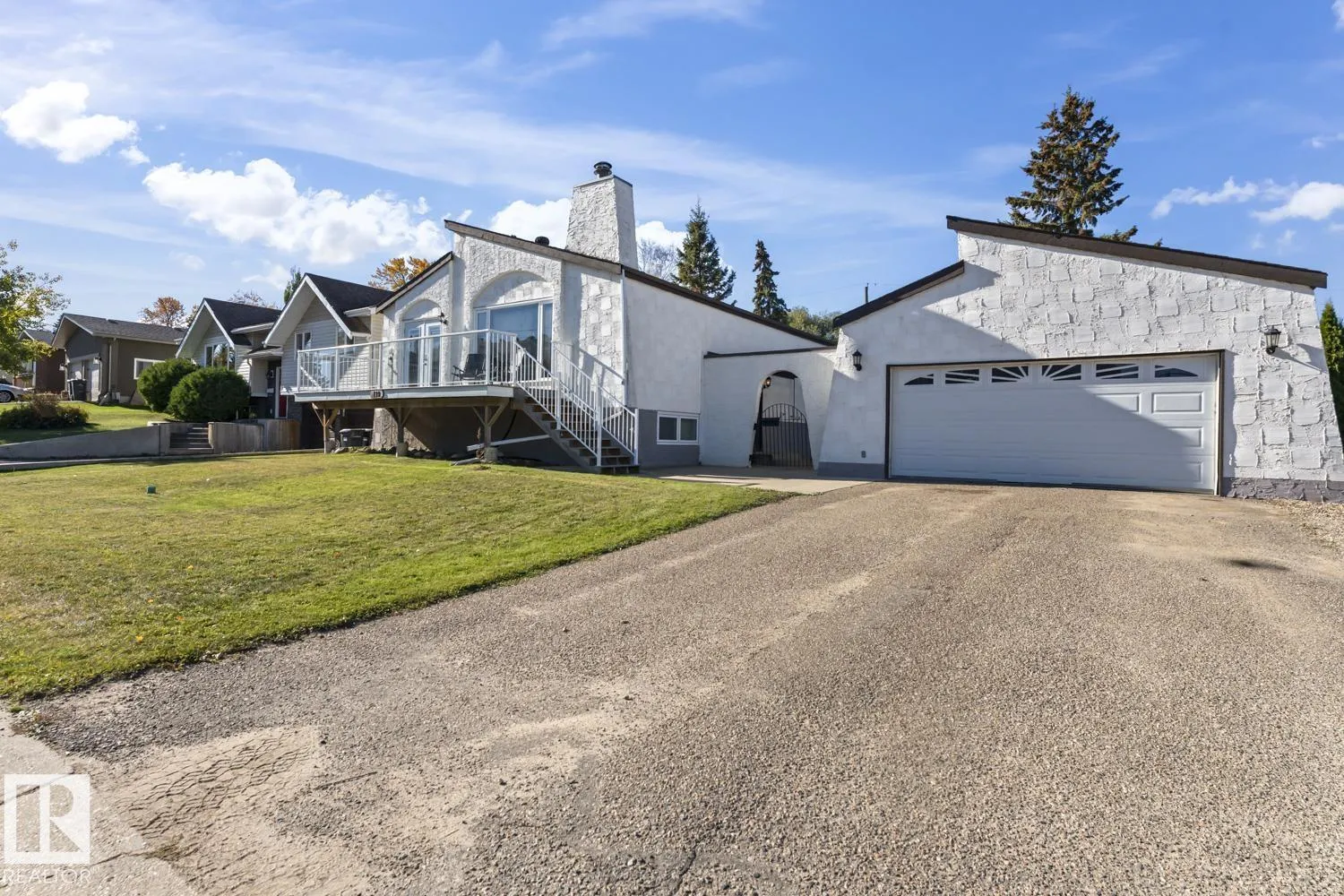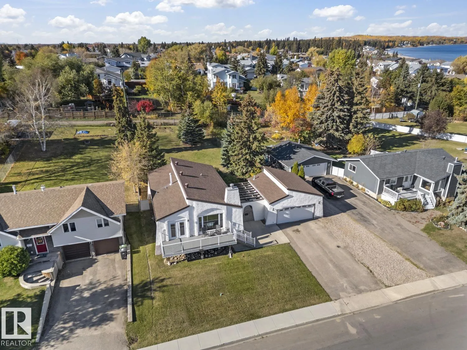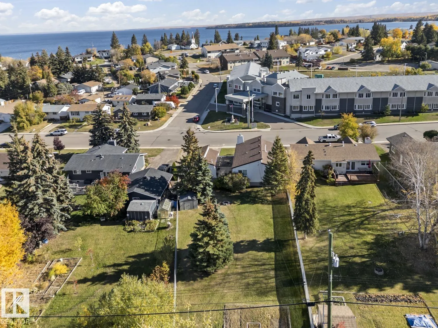You've always wondered what this stucco spanish-style bilevel looks like and now you can know! Very well built and situated 1/2 block from the beach on a massive lot with back alley access. This home has had various upgrades over the years from a new kitchen, shingles, windows, duradeck, main bath, sprinkler system and more!A n exceptional sized living room with a real wood fireplace, separate dining room and custom kitchen with Cambria counters. 3 bedrooms up and 2 down with a secondary family room. Recently the garage has been insulated and new gas heater has been installed. Quaint courtyard area attached to the breezeway between home and garage for you to entertain at with Natural Gas BBQ hook-up. One of Cold Lake's unique and exceptional properties! (id:27476)