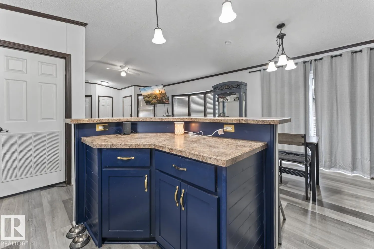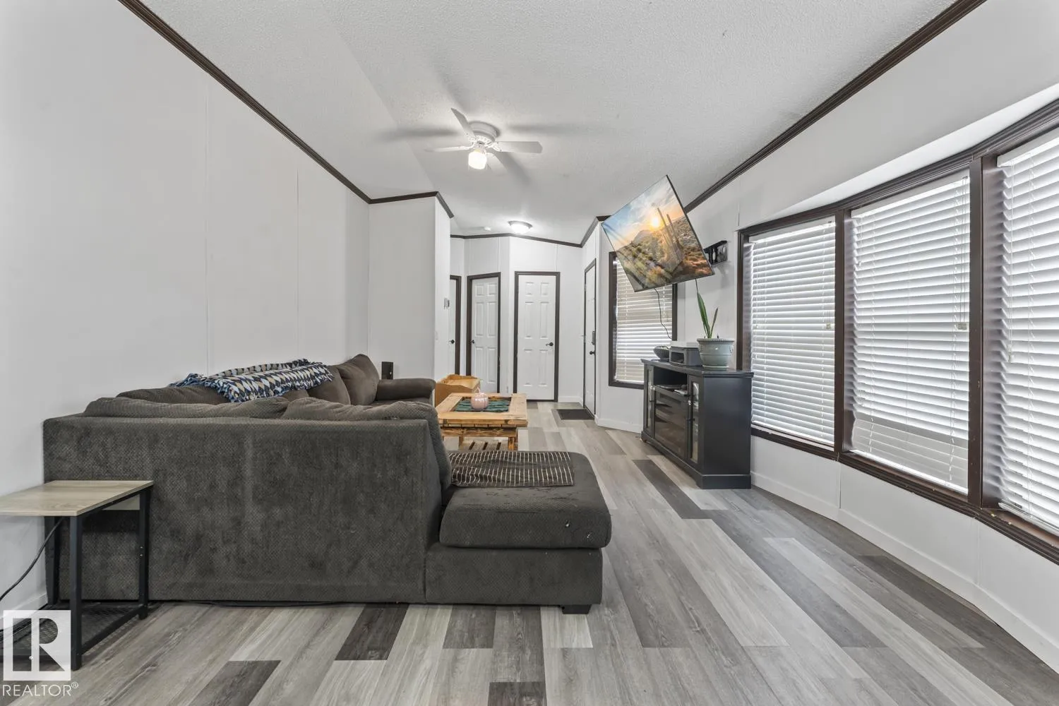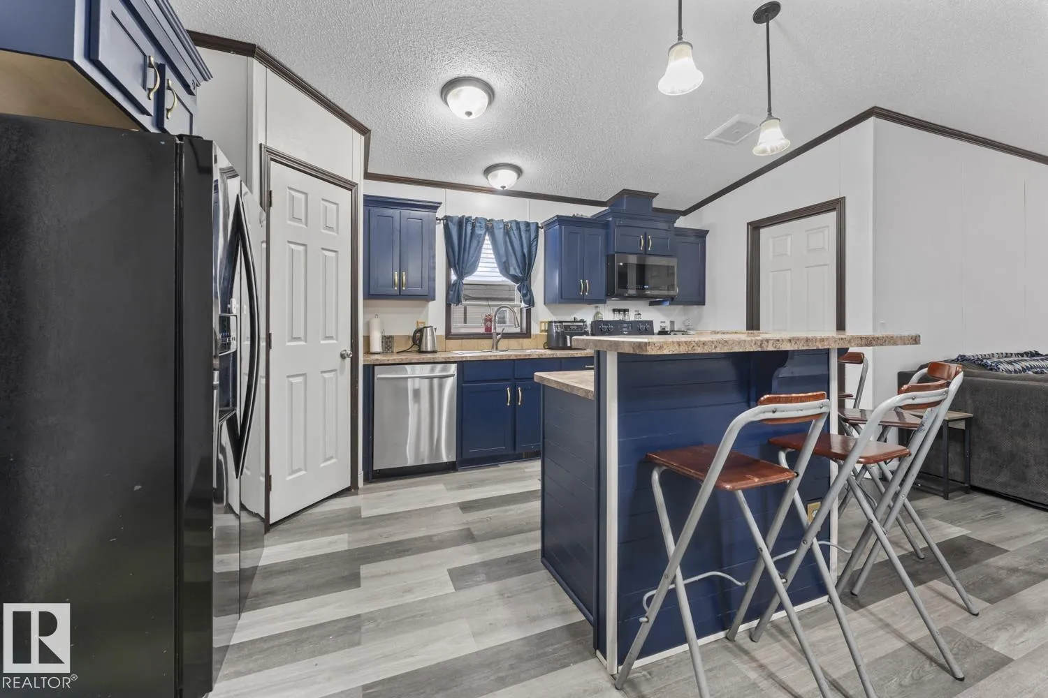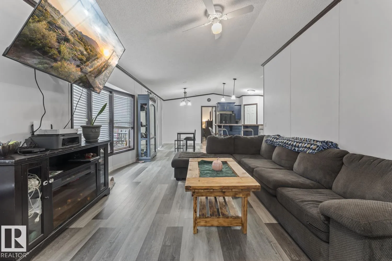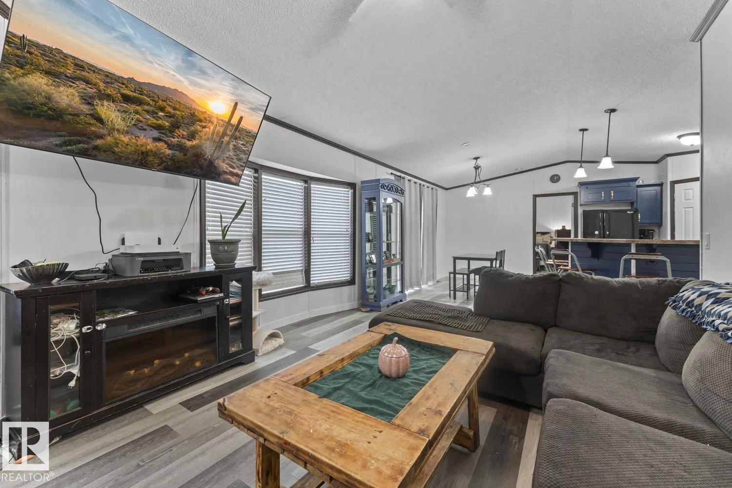 Affordable Home Ownership Starts Here! Step inside this beautifully renovated 3-bedroom, 2-bath mobile home, where comfort meets style in an open concept design. Home features a spacious kitchen, with freshly painted cupboards, a corner pantry, and a raised two-tier islandâperfect for entertainingâplus the convenience of the laundry room just off the kitchen. The primary bedroom is truly a retreat, offering a massive layout, walk-in closet, and luxurious 5-piece ensuite complete with a corner soaker tub, separate shower, and double vanities. Fresh touches throughout the home include some new vinyl plank flooring, paint, patio door, giving the space a clean and modern feel. Whether youâre a first-time buyer or looking to downsize, this move-in-ready home offers incredible value. Stop renting and take the first step toward affordable home ownership! (id:27476)