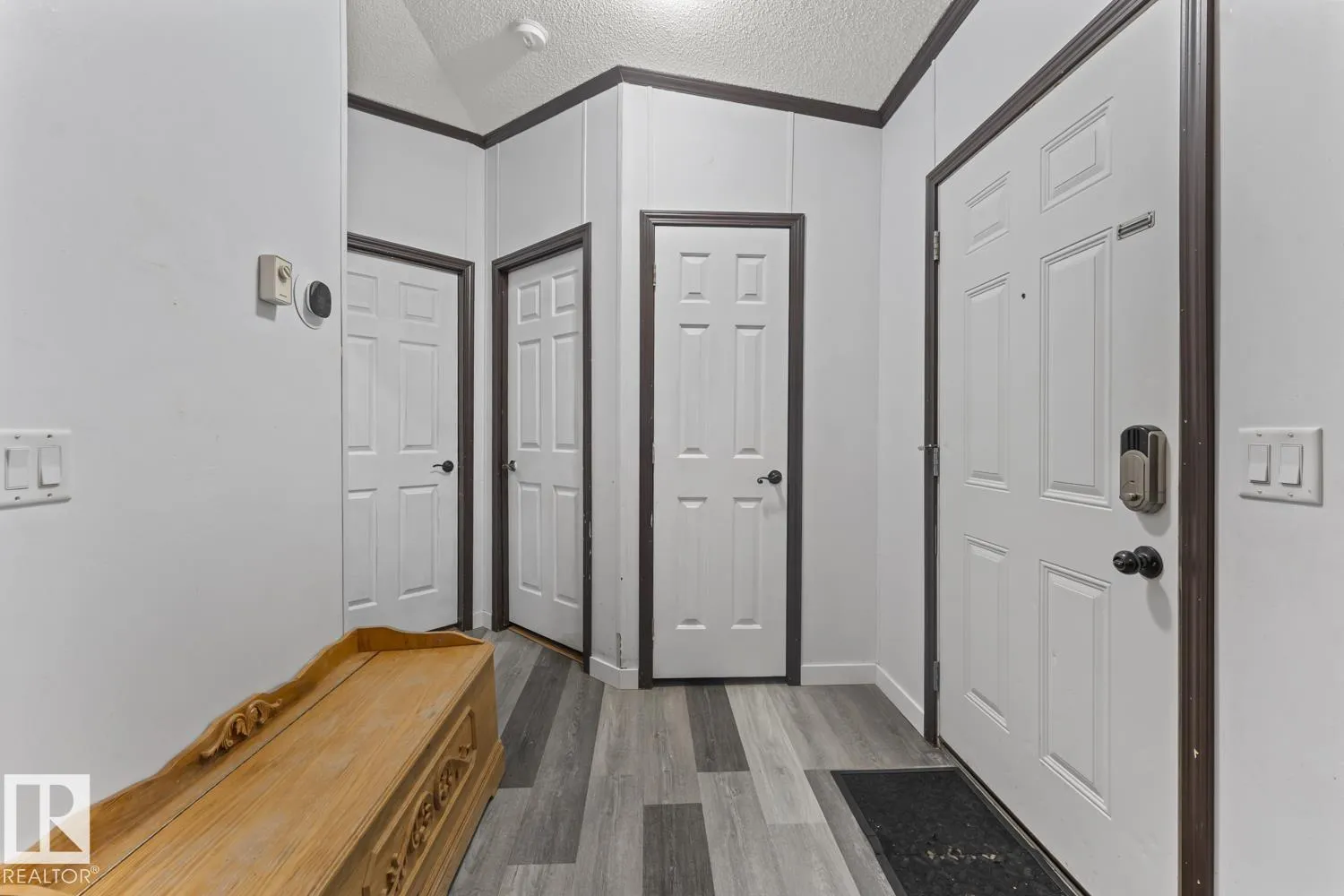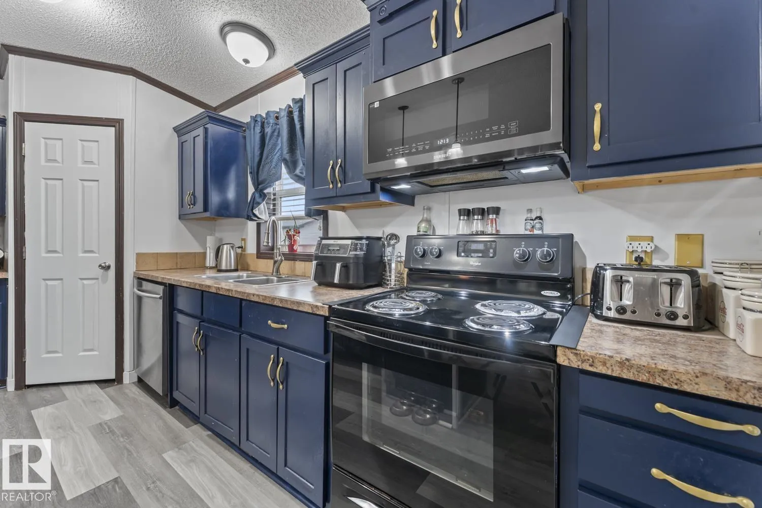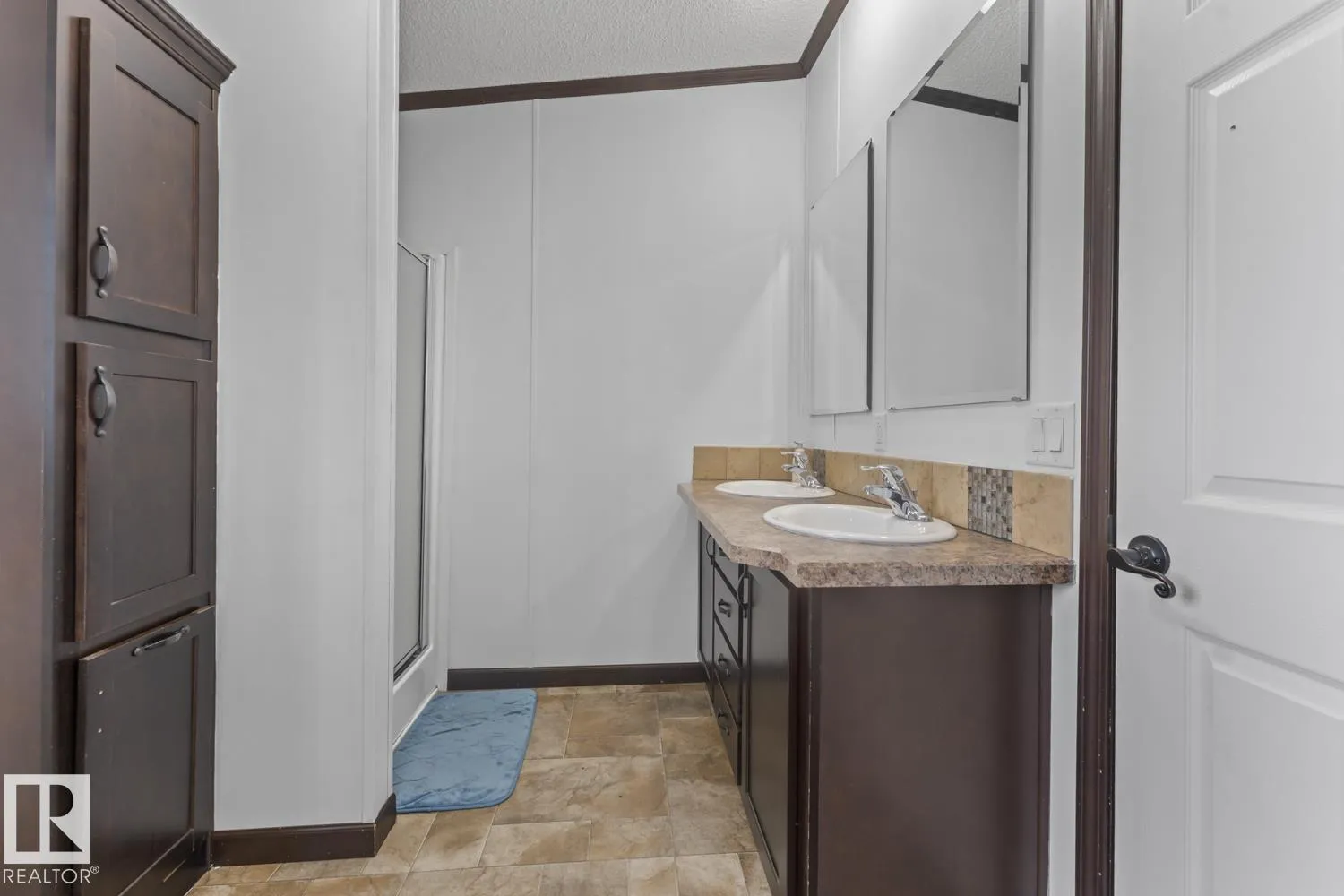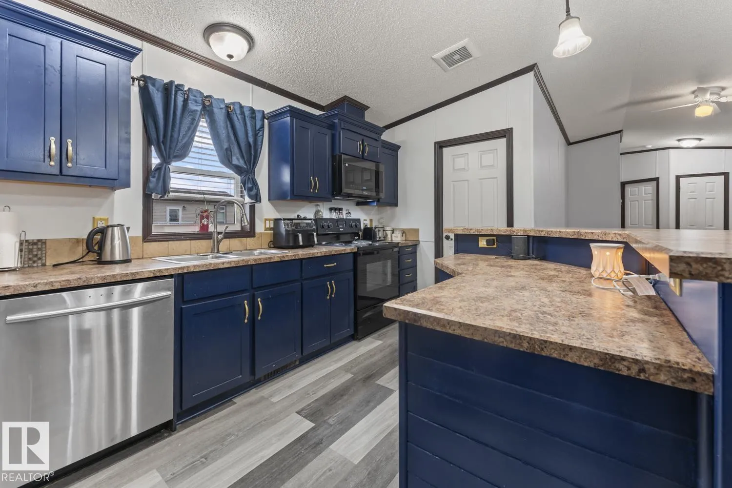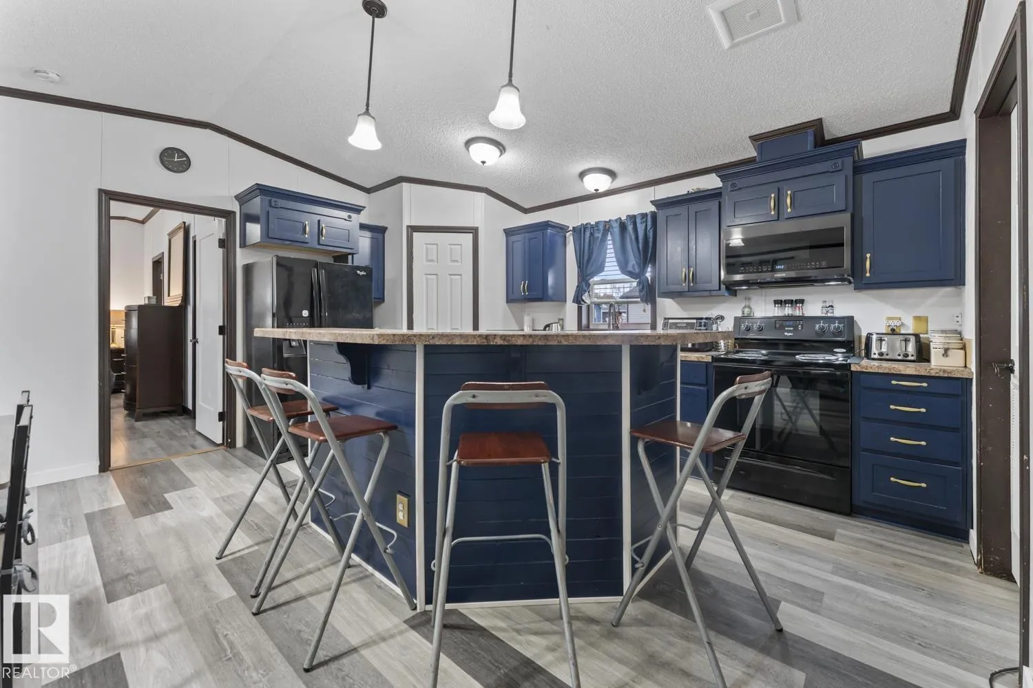Affordable Home Ownership Starts Here! Step inside this beautifully renovated 3-bedroom, 2-bath mobile home, where comfort meets style in an open concept design. Home features a spacious kitchen, with freshly painted cupboards, a corner pantry, and a raised two-tier islandâperfect for entertainingâplus the convenience of the laundry room just off the kitchen. The primary bedroom is truly a retreat, offering a massive layout, walk-in closet, and luxurious 5-piece ensuite complete with a corner soaker tub, separate shower, and double vanities. Fresh touches throughout the home include some new vinyl plank flooring, paint, patio door, giving the space a clean and modern feel. Whether youâre a first-time buyer or looking to downsize, this move-in-ready home offers incredible value. Stop renting and take the first step toward affordable home ownership! (id:27476)